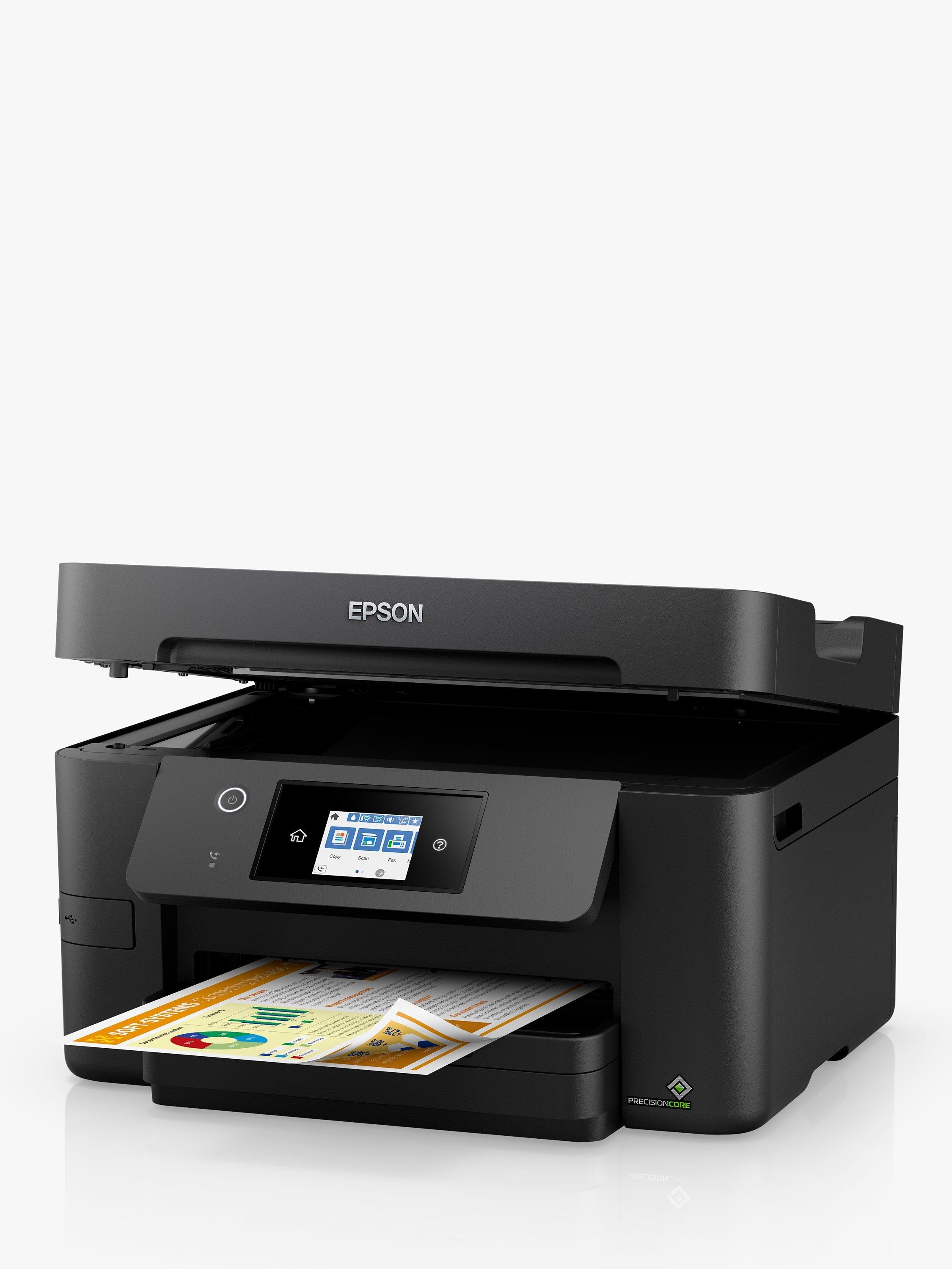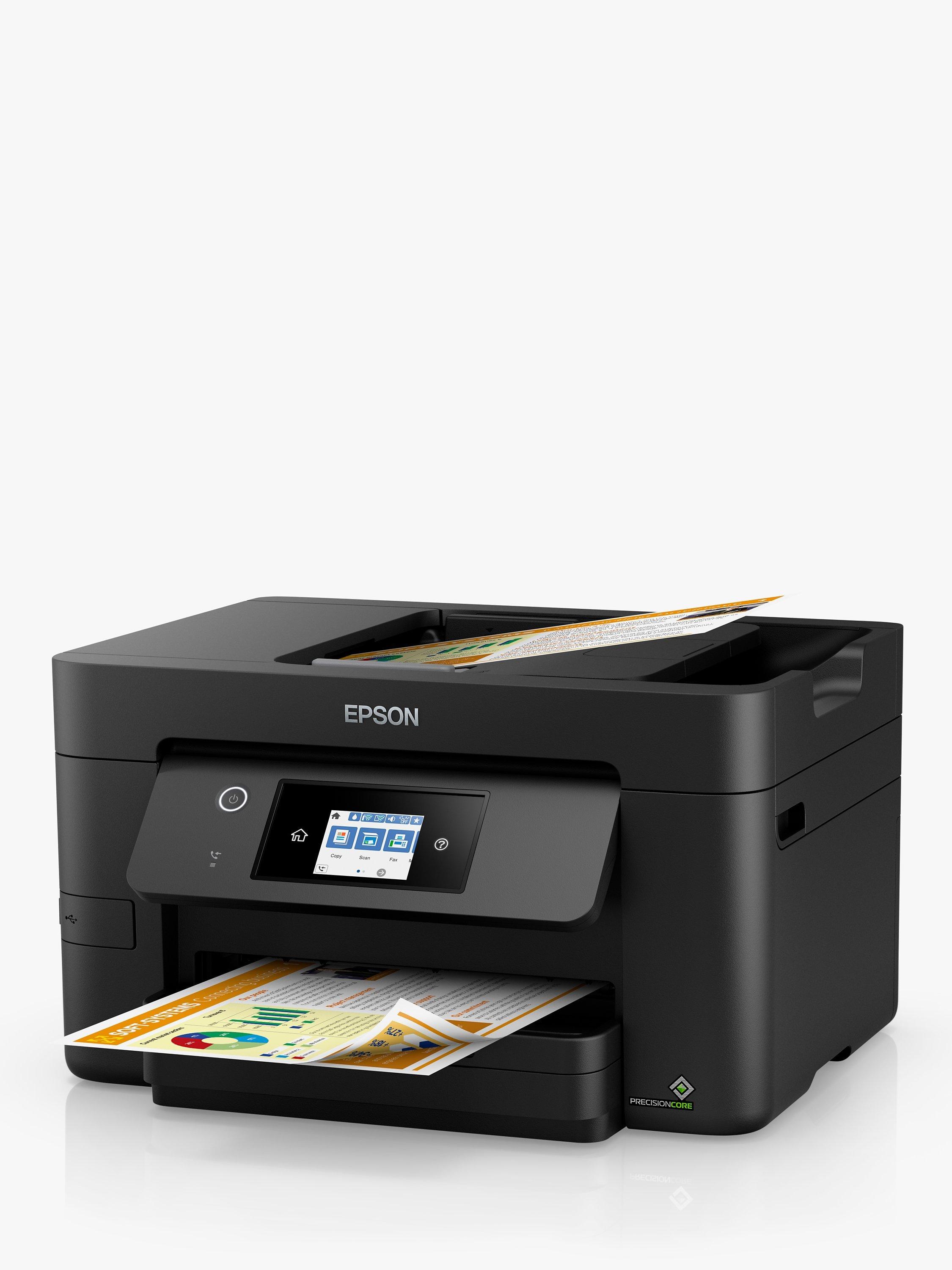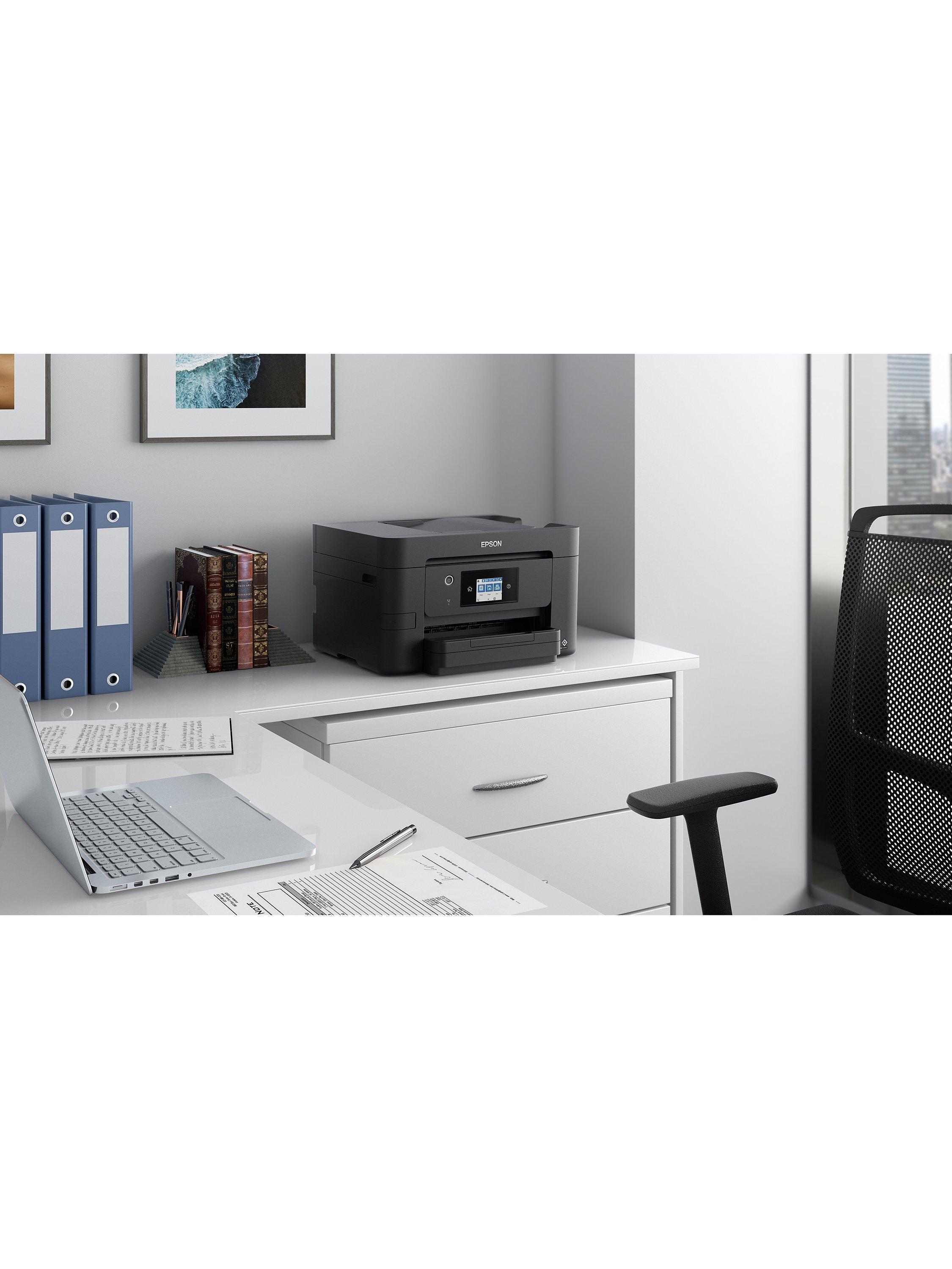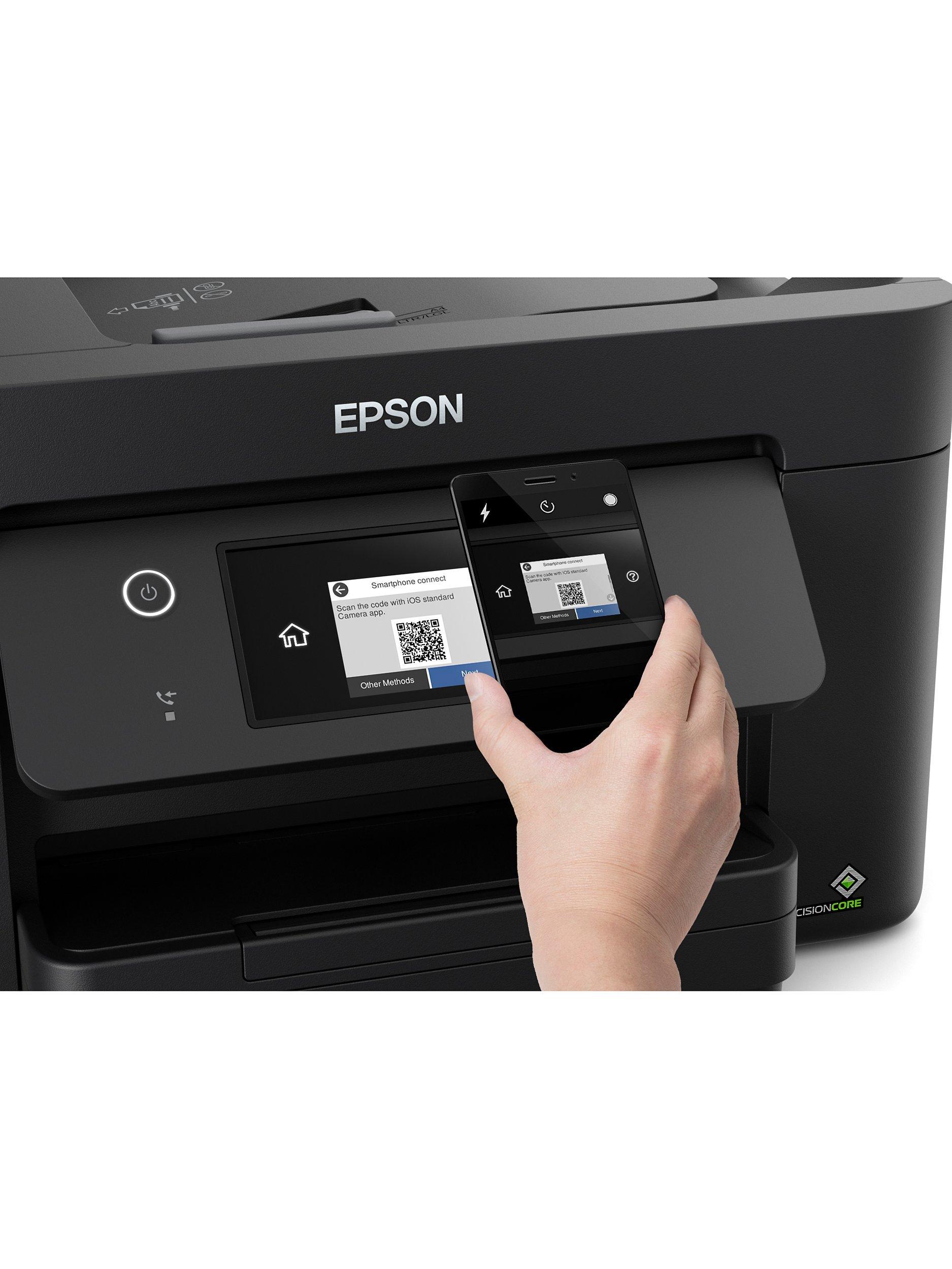 Epson's WF-3820DWF is a high-quality A4 multifunction printer with double-sided print and single-sided scan, as well as copy and fax functions. Print wirelessly with ease with built-in Wi-Fi, Epson's range of mobile printing apps for your smart devices, and the Scan-to-Cloud feature. It runs a cost-effective ink system, and, finished with a 6.8cm colour touch screen, this compact printer effortlessly handles all your home printing needs.
