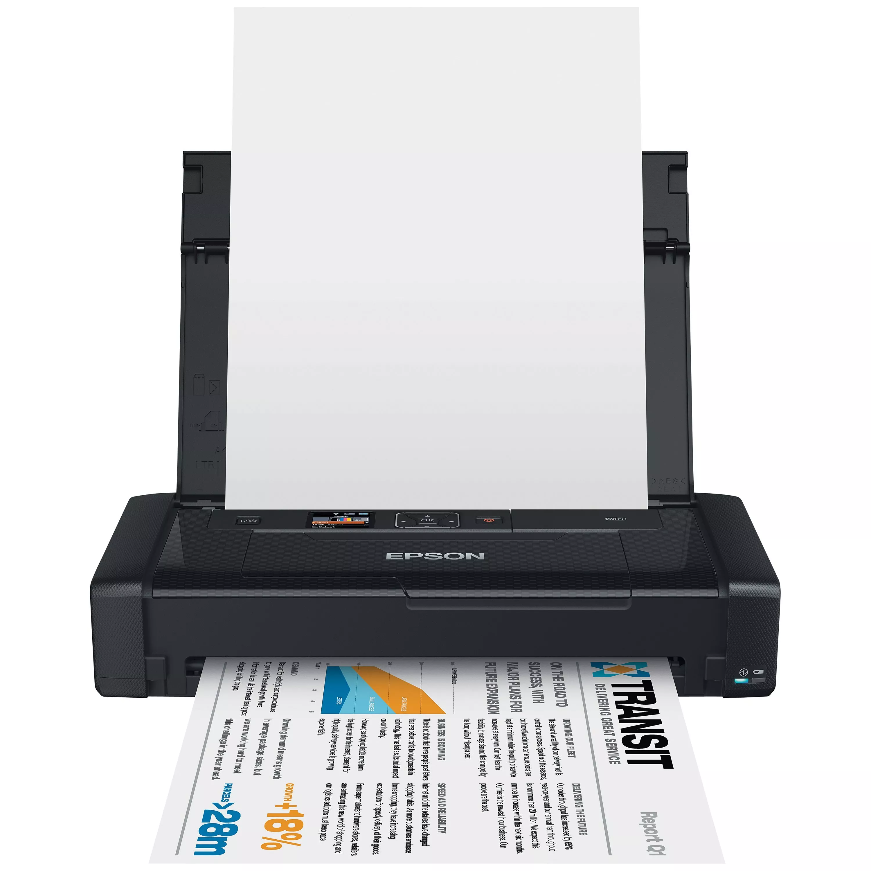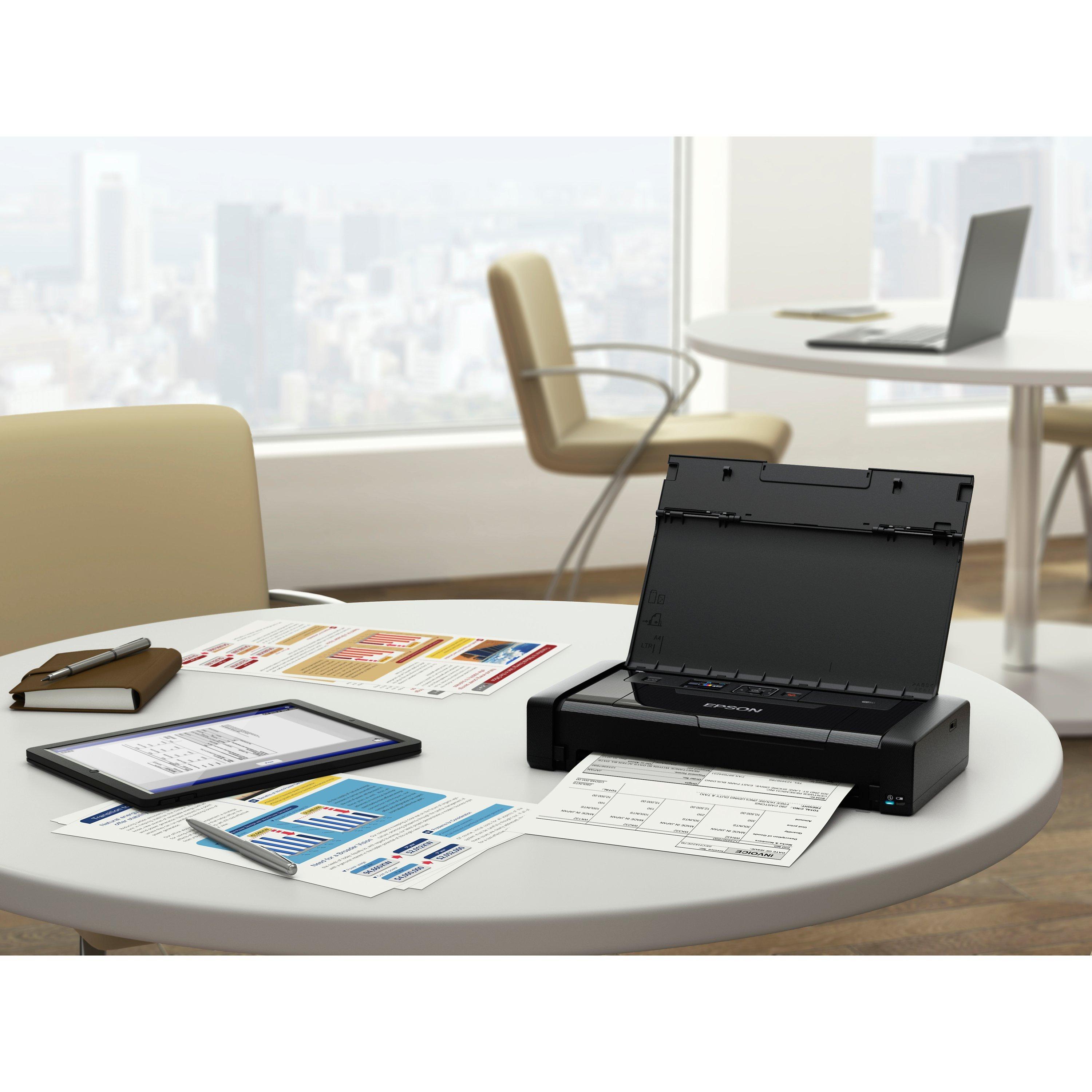 Epson’s WorkForce WF-100 is the perfect printer for people who need to print documents on the move. It’s small, lightweight, easily portable, prints up to A4 size, and can be used wirelessly. So if you need to print high quality reports, contracts, invoices, receipts or tickets while out on business, you can do so anywhere ...from your car ...or at a client’s address. An LCD screen makes it easy to set things up, and it features Wi-Fi and Wi-Fi Direct connectivity, plus support for Apple AirPrint and Google Cloud Print, for truly independent, on-the-go printing, wherever you are.
