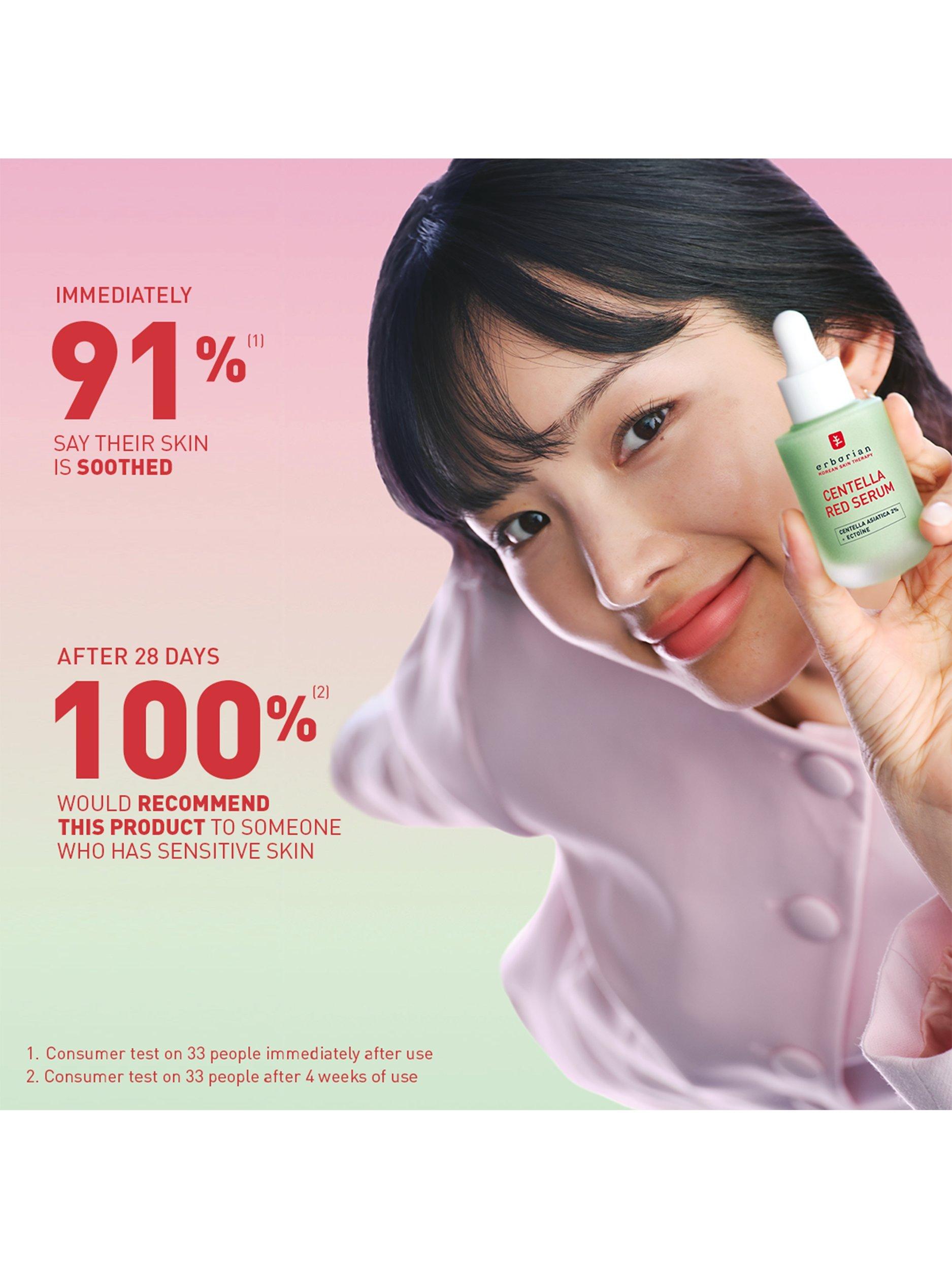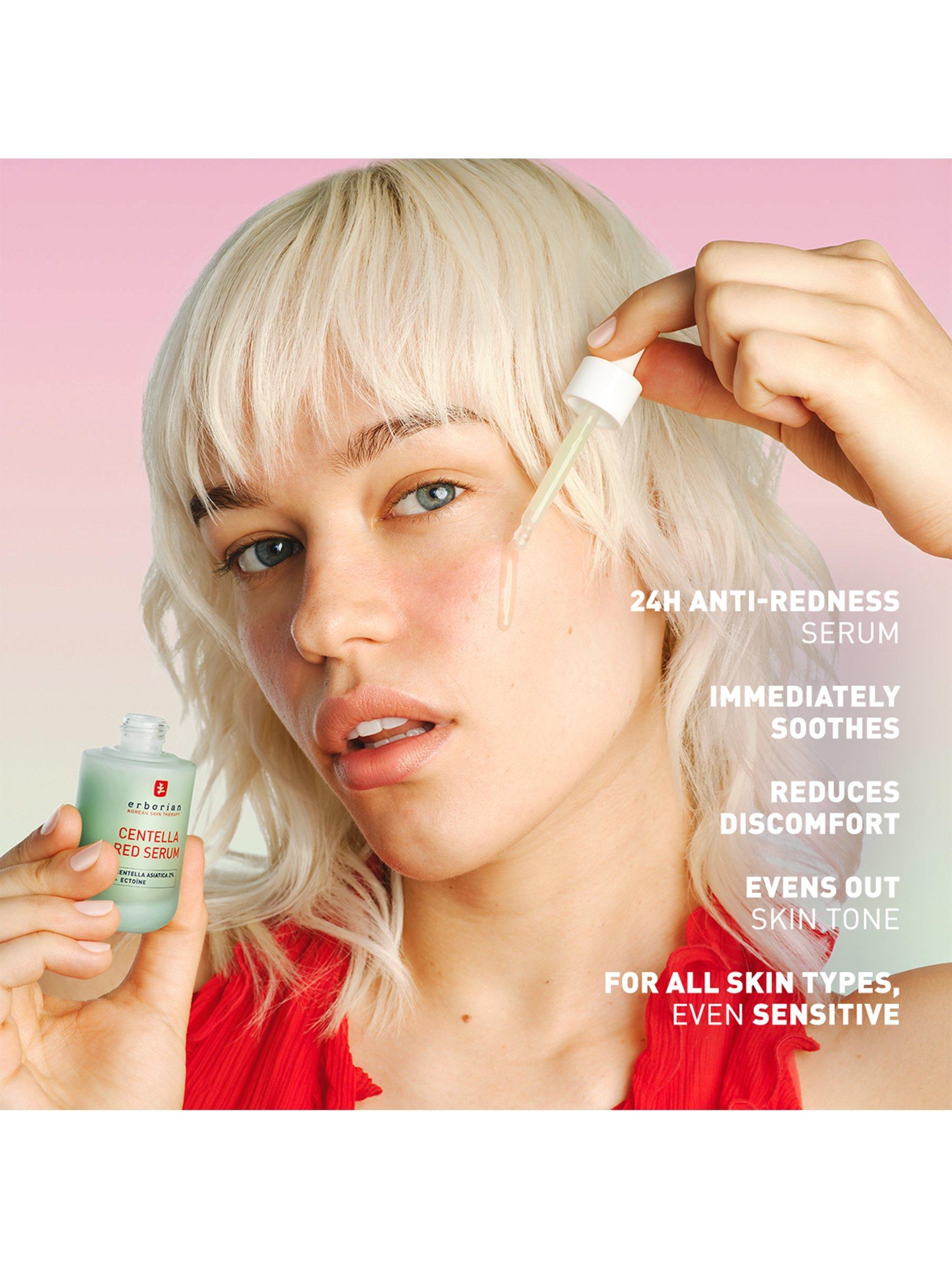 Centella Red Serum is a concentrated redness relief formula that visibly reduces the appearance of redness by 40% in 24 hours (1). With 2% Korean Centella Asiatica, it soothes irritation, calms redness, and boosts moisture. Skin is left calm, comfortable and moisturised, with a visibly more even skin tone.