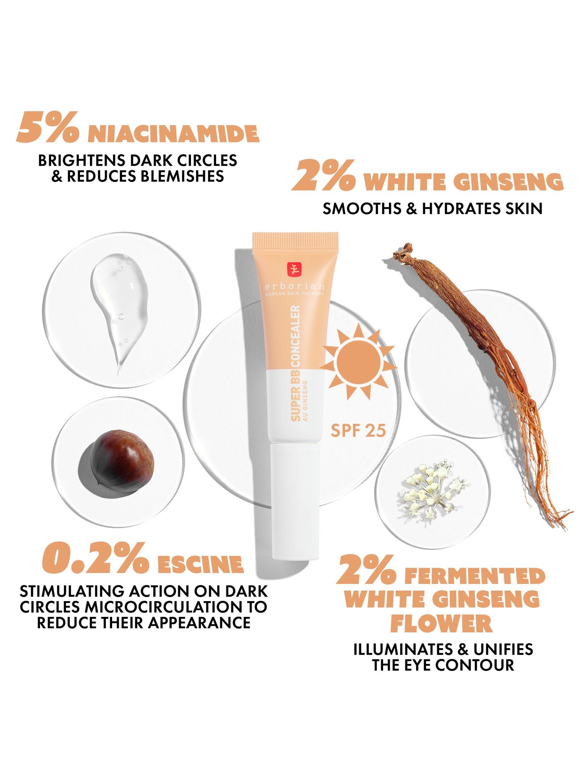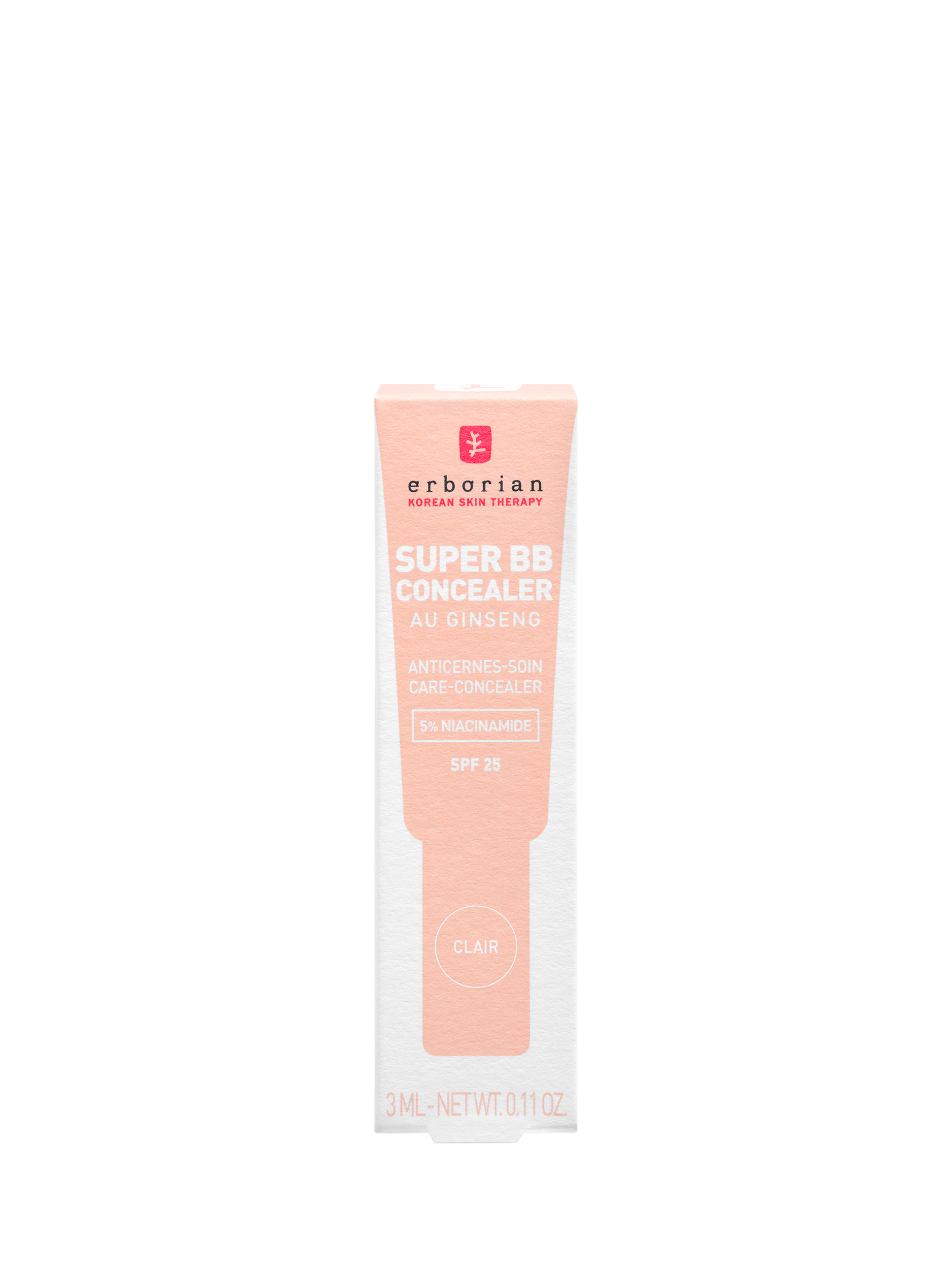 Super BB Concealer-Serum provides dark circle coverage and targeted care on blemishes. As concentrated as a serum, Super BB Concealer-Serum is enriched with 5% niacinamide, 2% white ginseng complex & SPF 25 to visibly brighten and smooth skin.