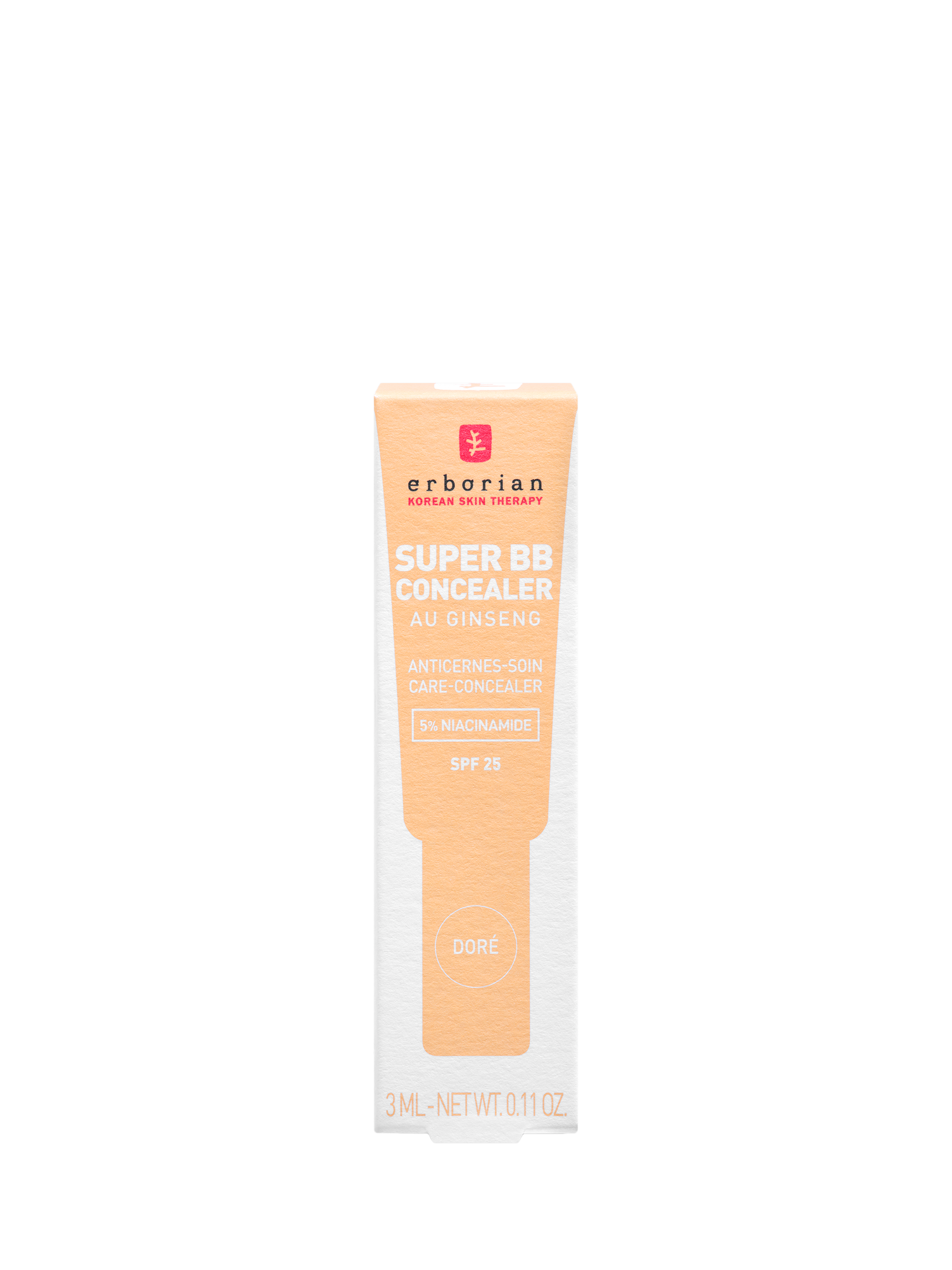 Super BB Concealer-Serum provides dark circle coverage and targeted care on blemishes. As concentrated as a serum, Super BB Concealer-Serum is enriched with 5% niacinamide, 2% white ginseng complex & SPF 25 to visibly brighten and smooth skin.