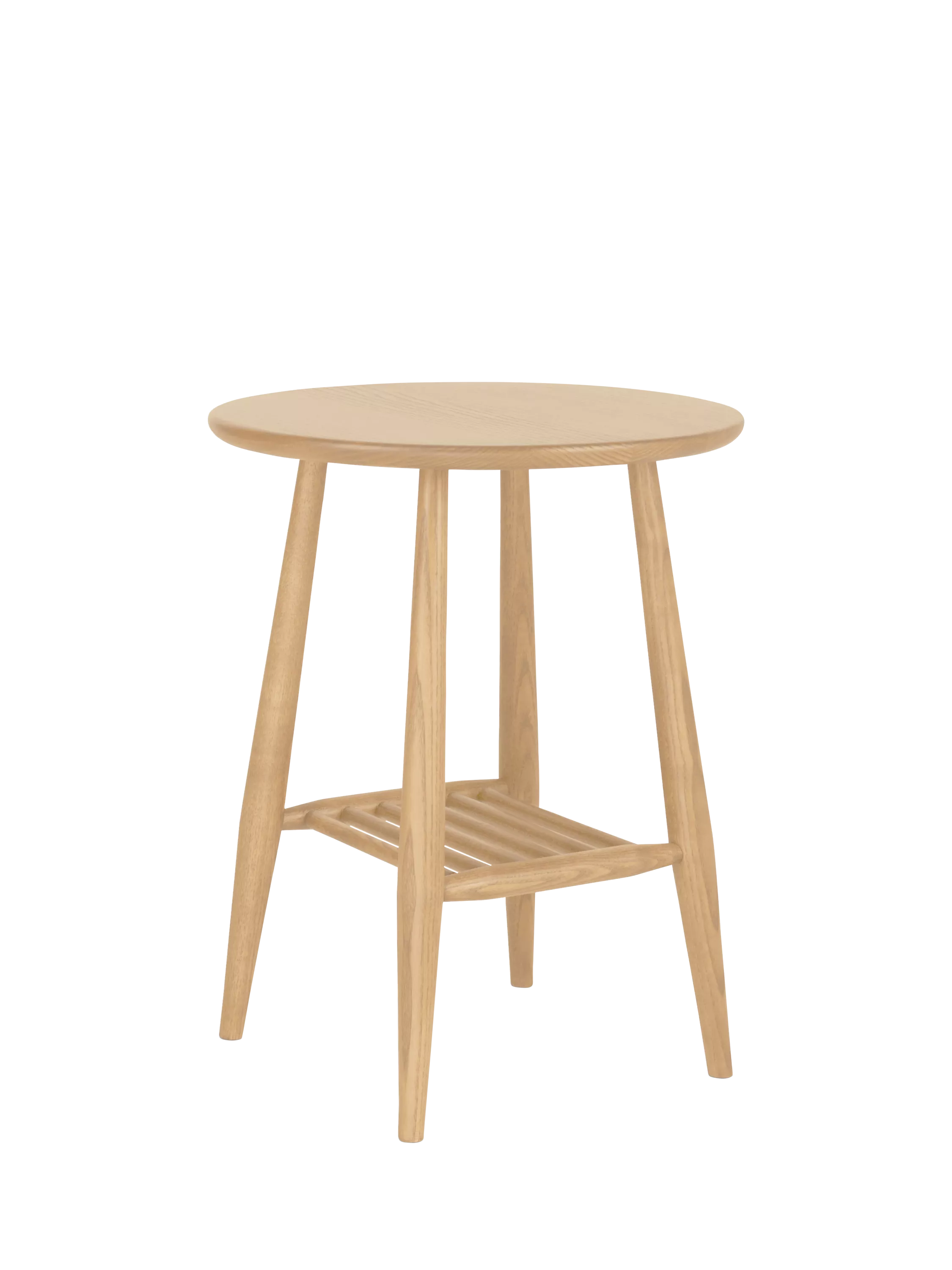 This practical table has a handy spindle shelf. Made of solid ash in ercol's Buckinghamshire factory by their skilled crafts-people.