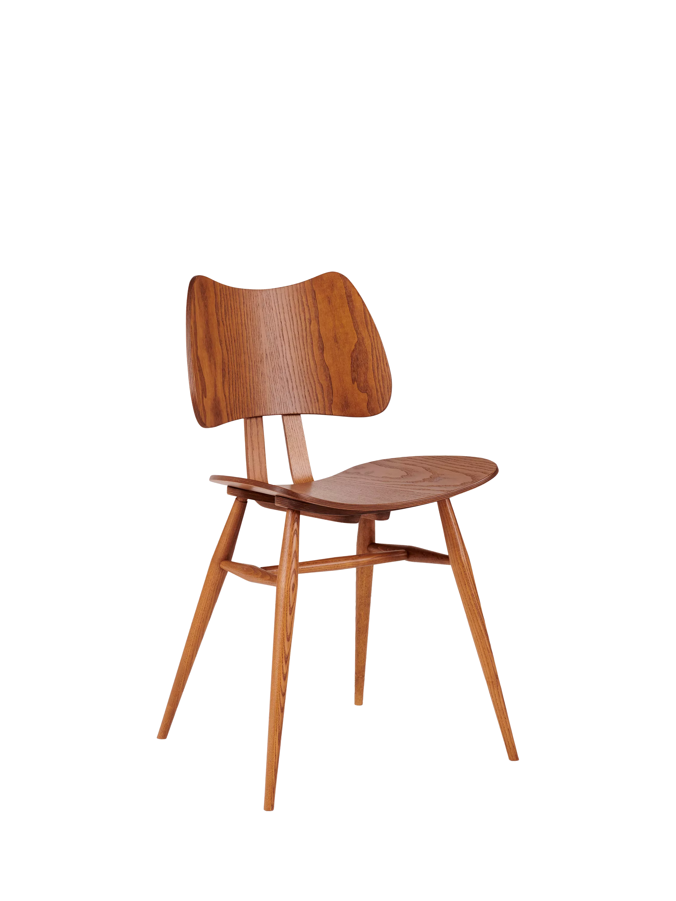 The Butterfly Chair designed by Lucian Ercolani, and launched in 1956, features the traditional Windsor wedge and tenon joinery, a technique in which the chair’s legs are extended through the seat and secured with a wedge. These joints are then sanded until they lie flush with the seat to create a strong and durable base, built to withstand the demands of daily life.