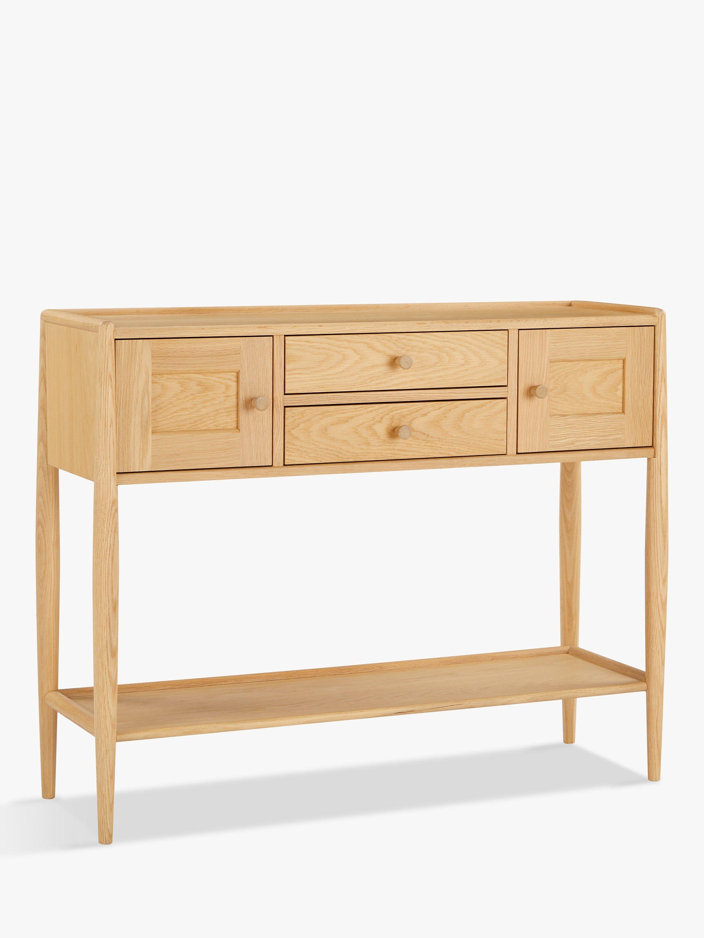 The shape and features of the ercol Shalstone living and dining collection echo ercol’s desirable original furniture designs, reinterpreted exclusively for John Lewis. Focusing on this heritage, the brand has created a range with elegant tapering legs, oak spindles and deep functional storage. This pared-down aesthetic has been brought up to date by constructing each piece in contemporary pale oak, with a modern matt finish.