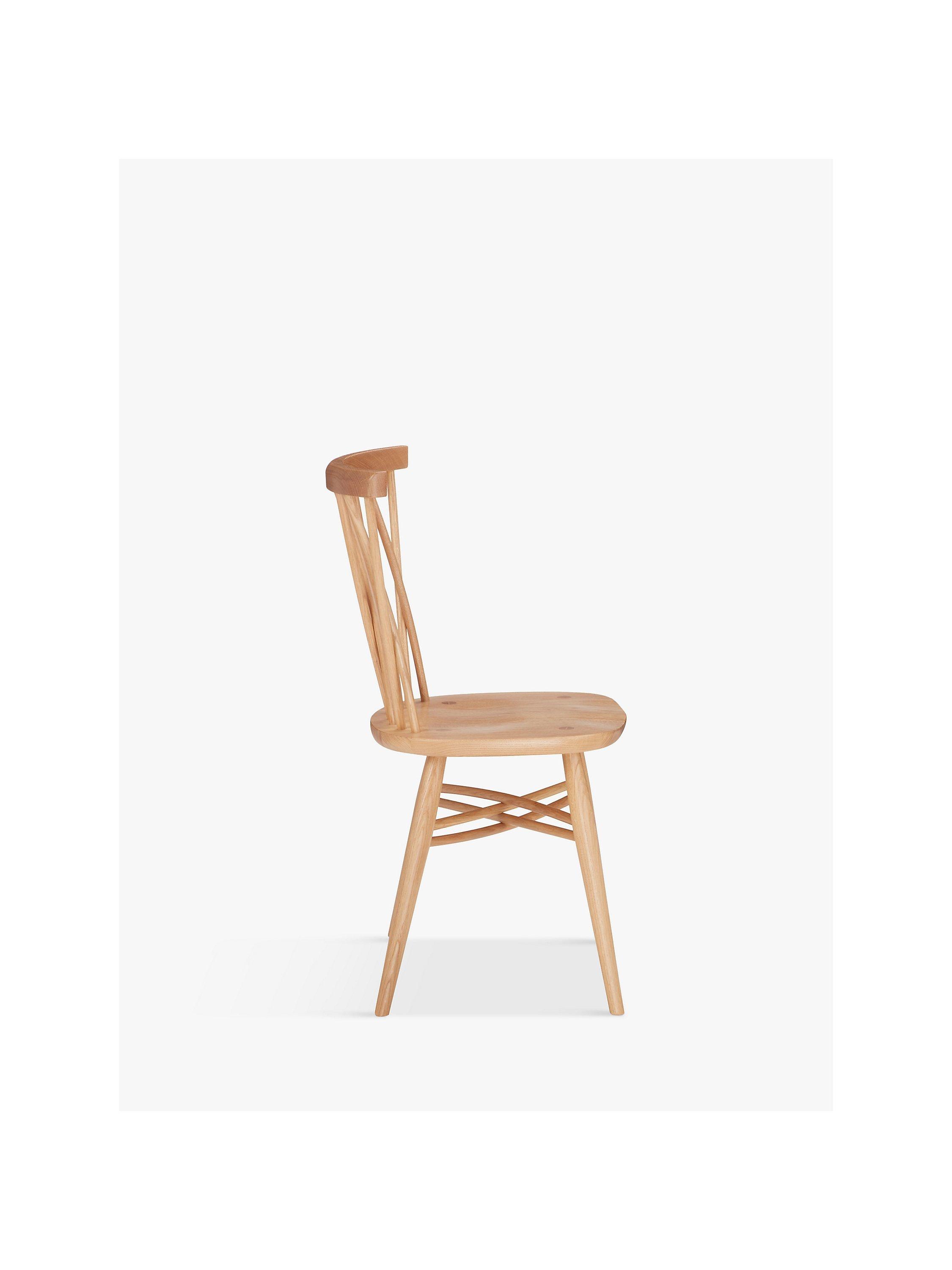 Drawn from original 1950s designs found in ercol's archives, this dining chair is an expression of exquisite craftsmanship and quality. It's built using the dovetail and box joint method for durability and it's been coated in a protective matt lacquer. Subtly curved, with spindle rods forming the backrest and strong turned legs, this chair offers Scandi simplicity and a decorative look at your dining table.