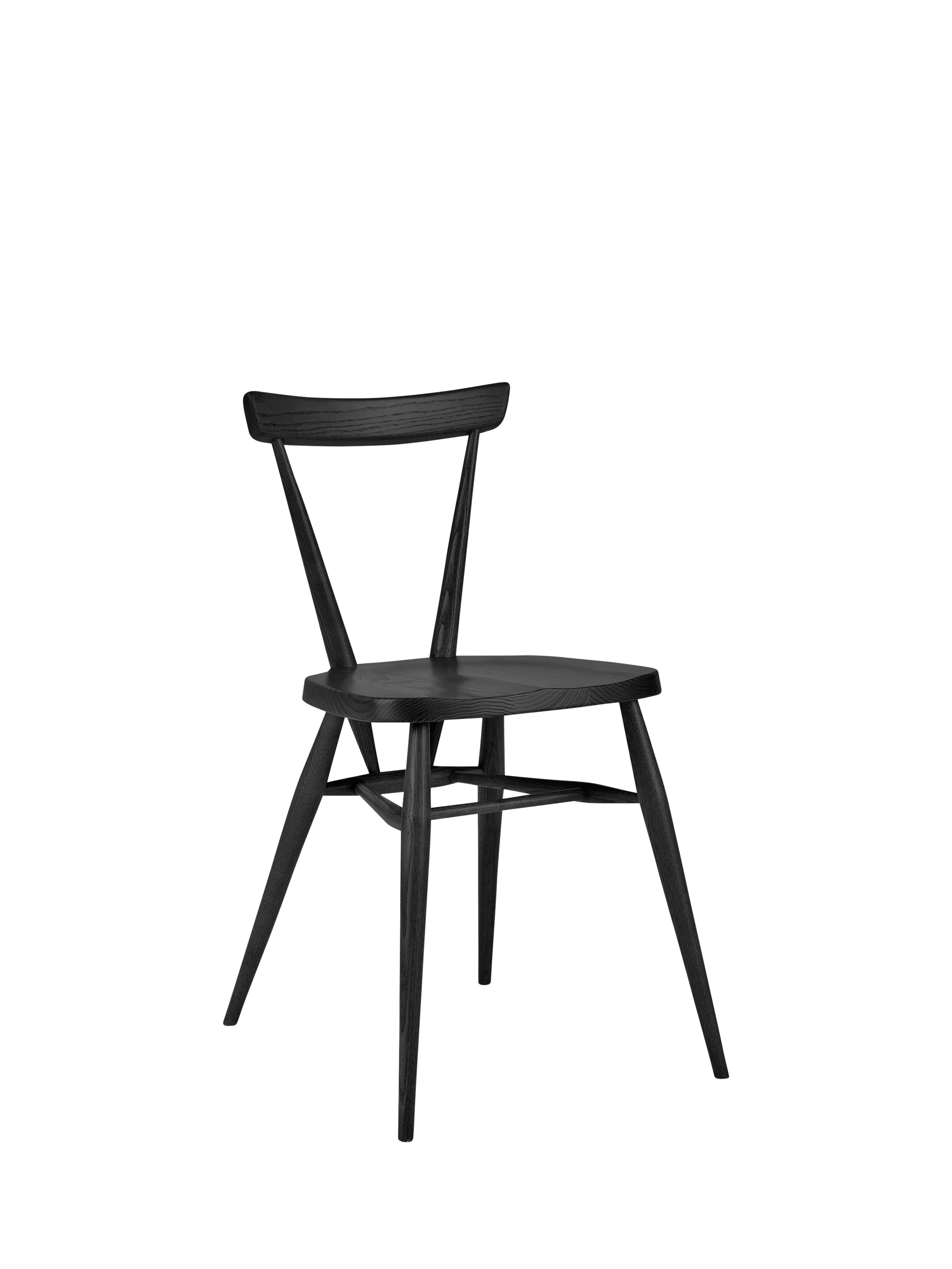 Purpose-built for convenience and constructed of solid ash timber, the outward-facing legs allow the chairs to be stacked vertically when not in use.