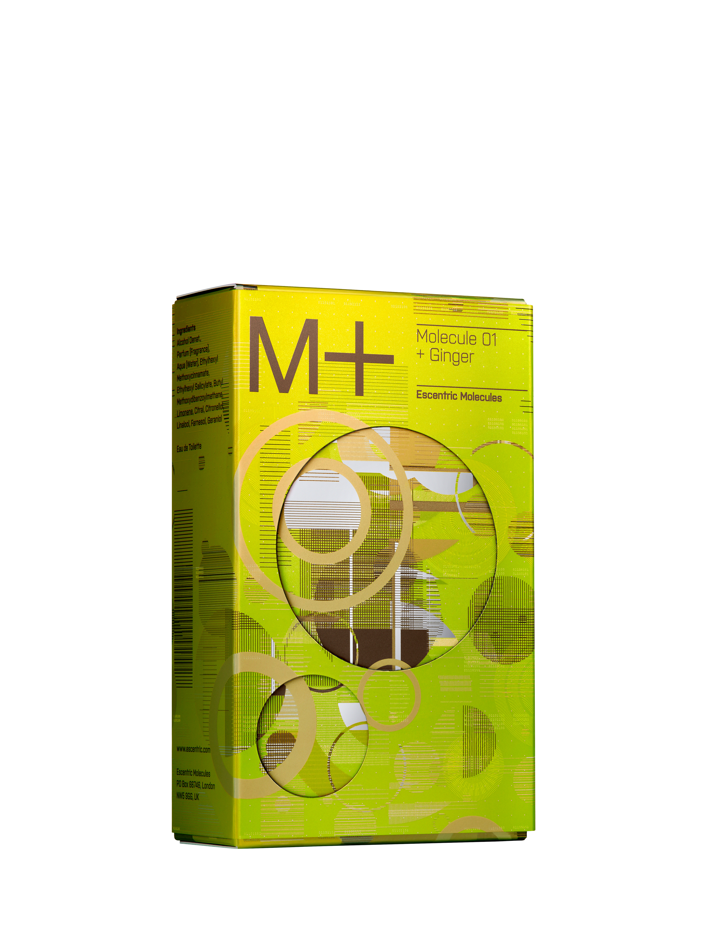 Molecule 01 + Ginger consists of Iso E Super + Ginger. Iso E Super is an abstract synthetic molecule with a cedarwood tonality and a warm, velvety cocooning sensation. Ginger is extracted from the rhizome of the ginger plant with a fresh and spicy scent profile. M+ Ginger stands out with its contrasting nuances that are as surprising as they are addictive.