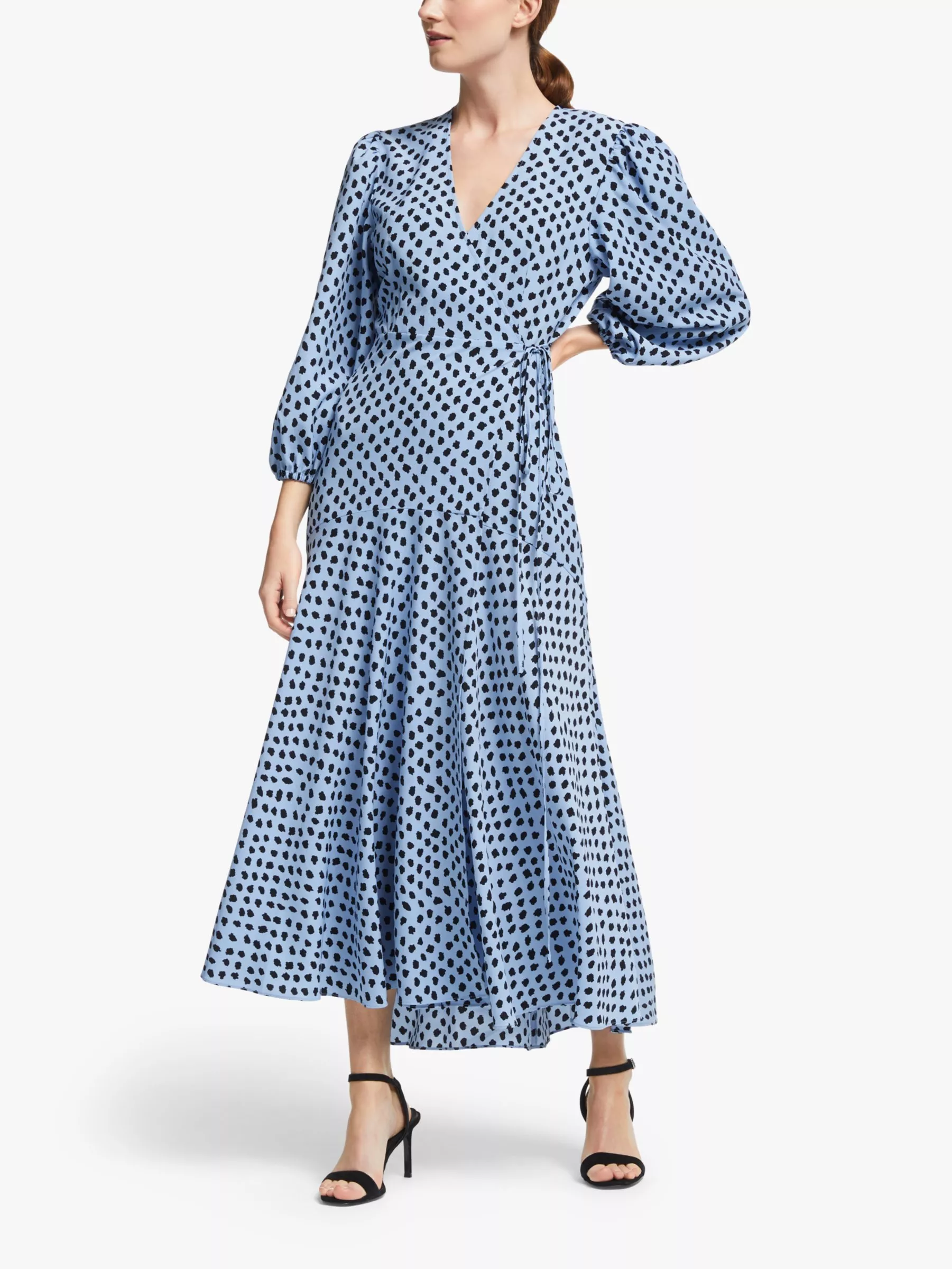 Bringing the fun back to fashion, this billowy wrap dress from Essentiel Antwerp features an etched spot design that plays into the animal print trend. Made from a soft, floaty fabric, it flatters the figure with a wrap style front, gently blouson sleeves and a full floaty hem. Try adding some flat boots and teaming with a leather jacket to toughen up the soft feminine silhouette.