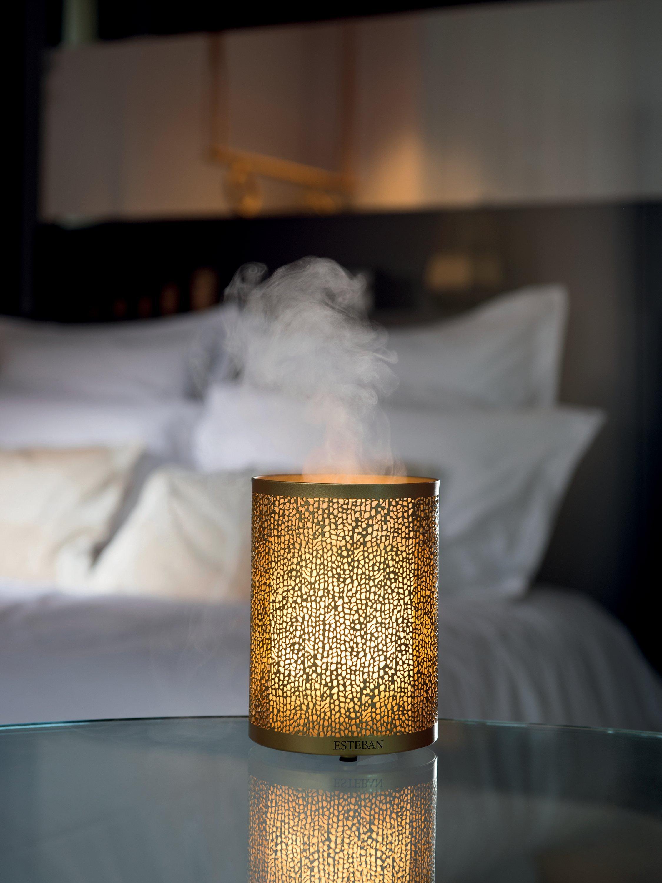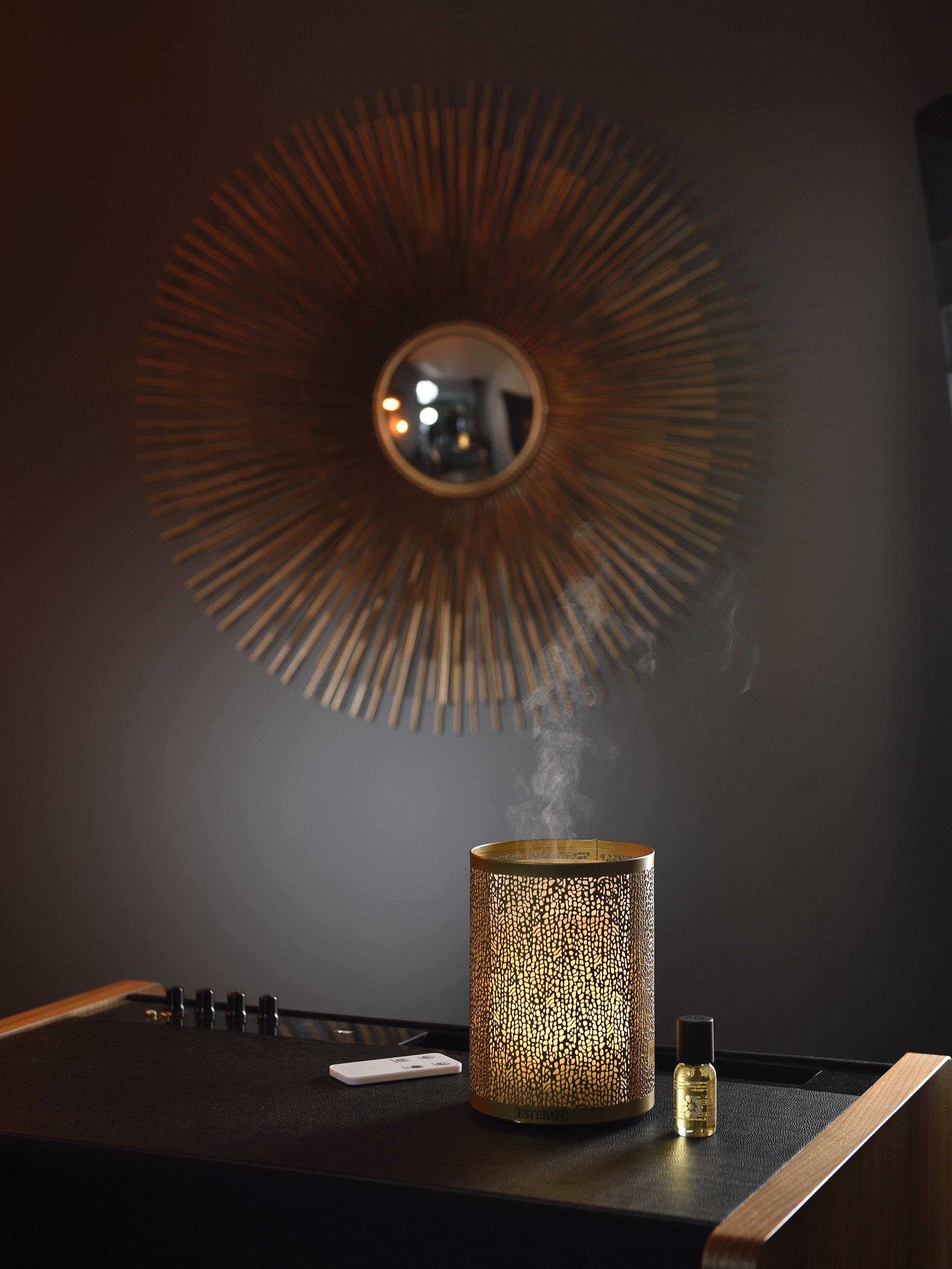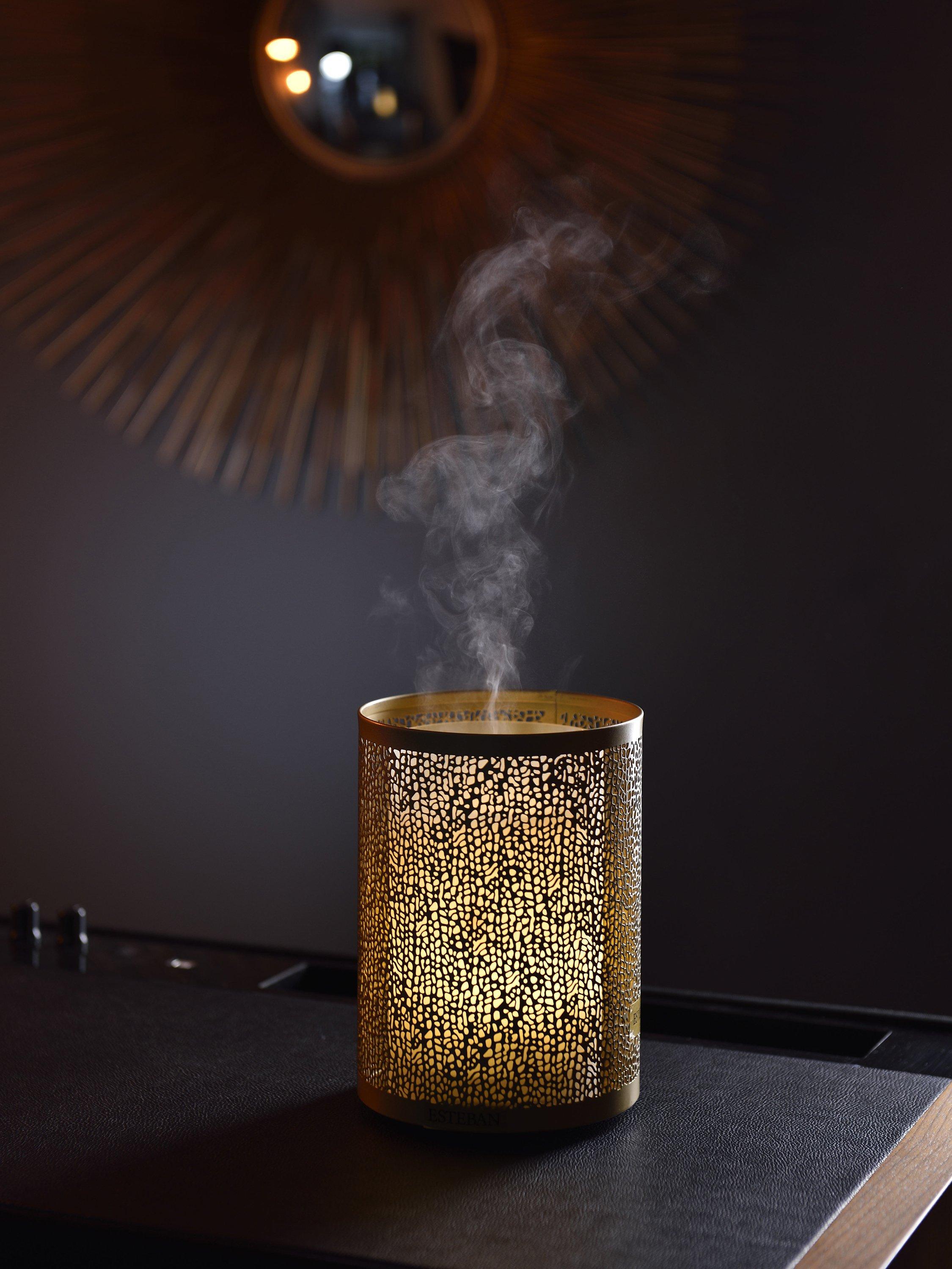 Thanks to this diffuser, Estéban combines a high quality of perfume with a humid mist and a luminous atmosphere. This diffuser enables you to create a custom scented & elegant atmosphere. Its gold decoration and captivating light will brighten up your home.