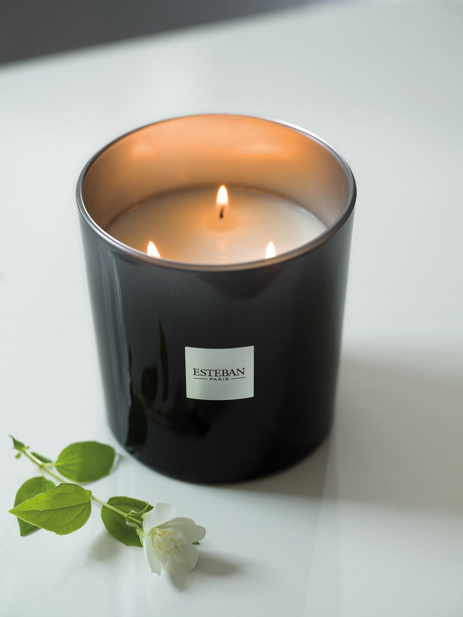 The new Esteban large-format candle, with its generous size and modern lacquer finish, will lend discreet sparkle to any room. Cast in refillable glass, this 100% vegetable wax candle offers 3 cotton wicks to ensure style. A luxurious decorative item to perfume & grace larger rooms for hours on end.