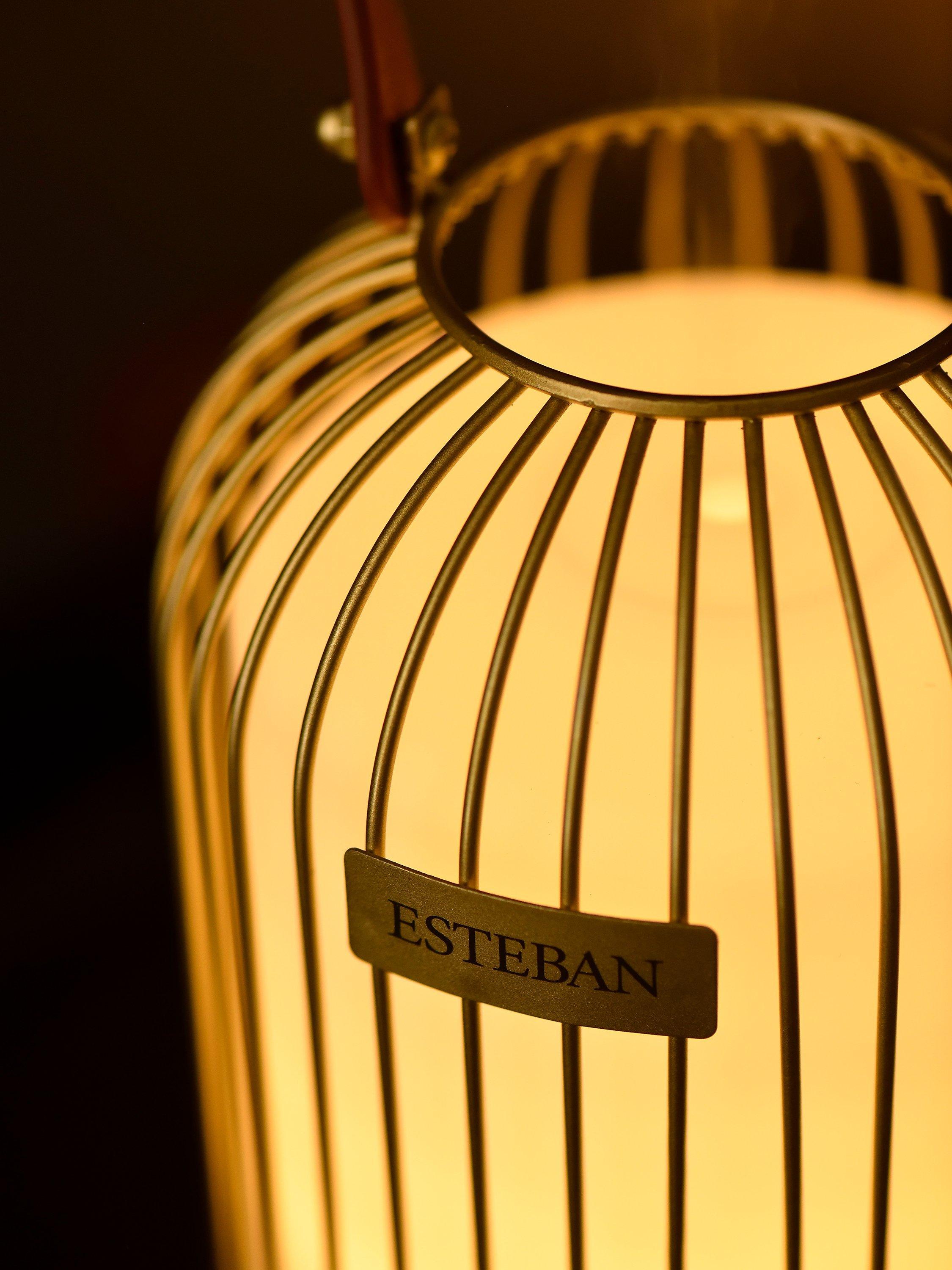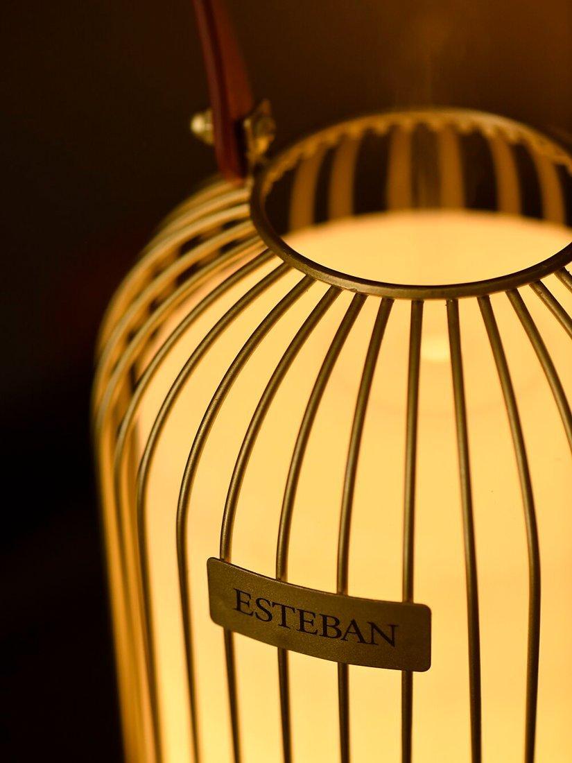 Its golden aviary-like appearance turns this diffuser into a showcase of light. Its handle and its wireless system (4-5 hour battery life) make it completely mobile so you can place it anywhere in your home or in a covered terrace.