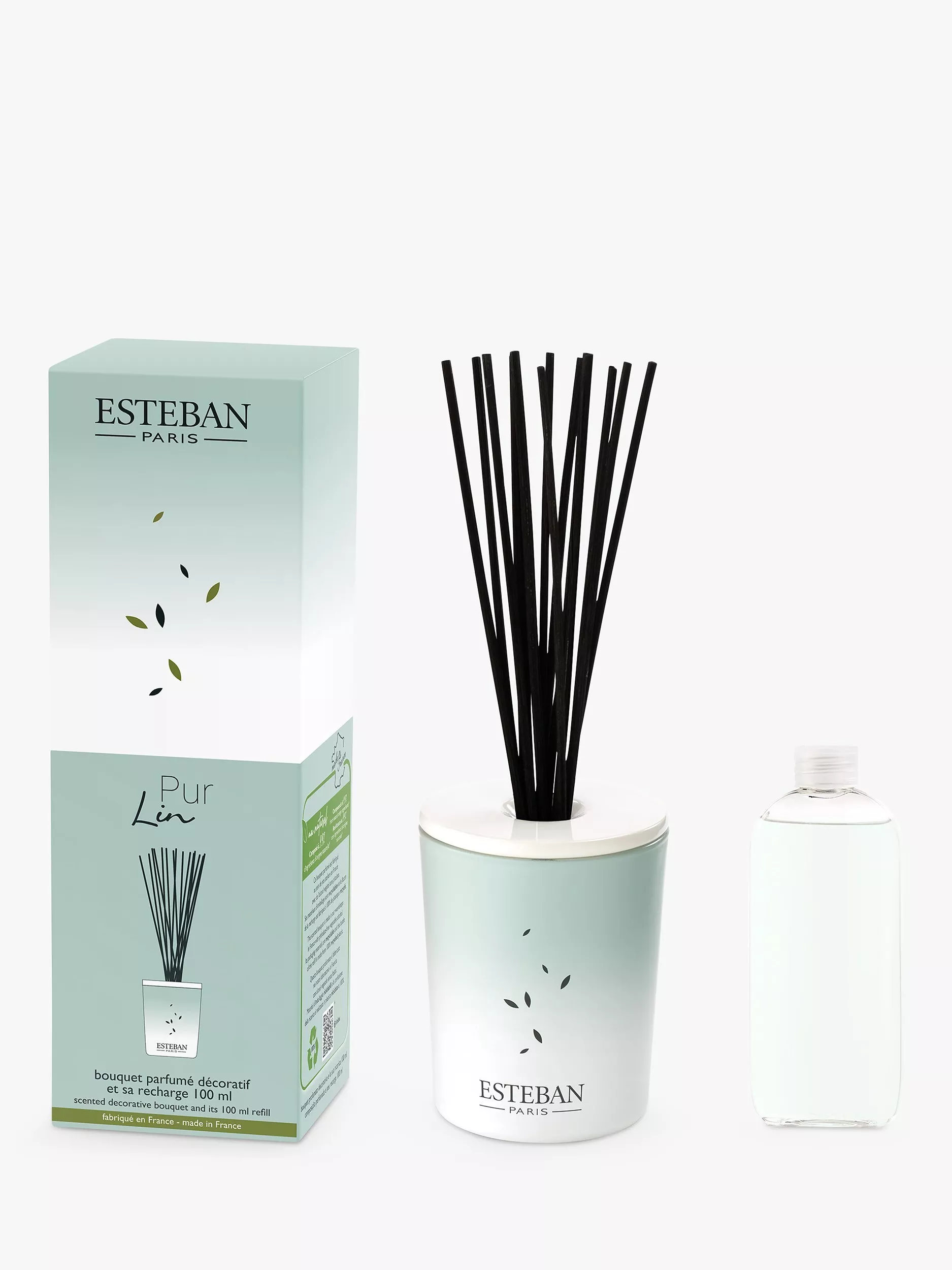 "his scented bouquet is made in Esteban workshops in France with phthalate-free vegetable alcohol. Its packaging materials are recyclable and the bottle of the refill is made from 100% recycled plastic.
