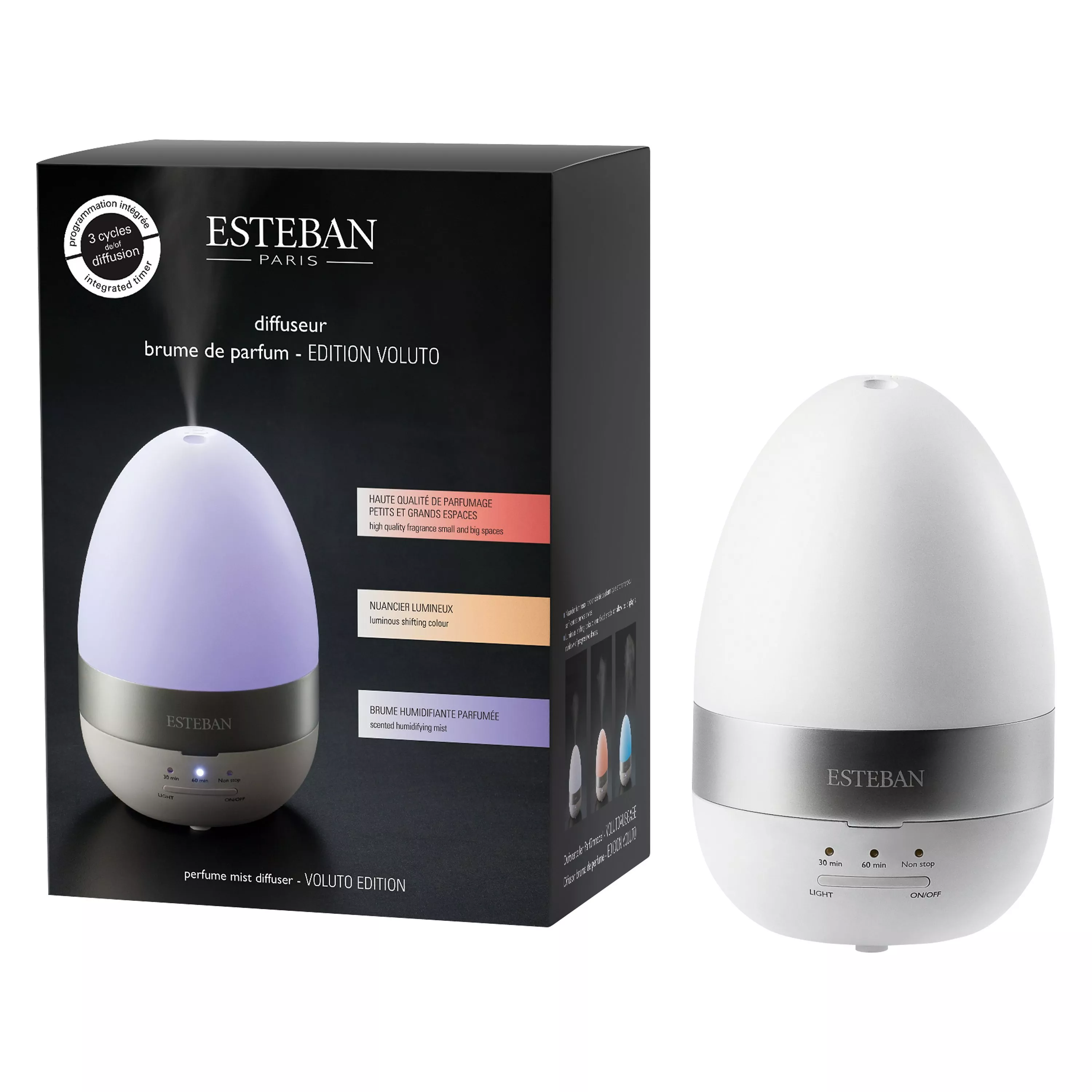 The Voluto edition diffuser from Esteban has powerful ultrasound technology in which water and scent mix to form a fresh and fragrant mist. The mist begins to diffuse as soon as the device is switched on.
