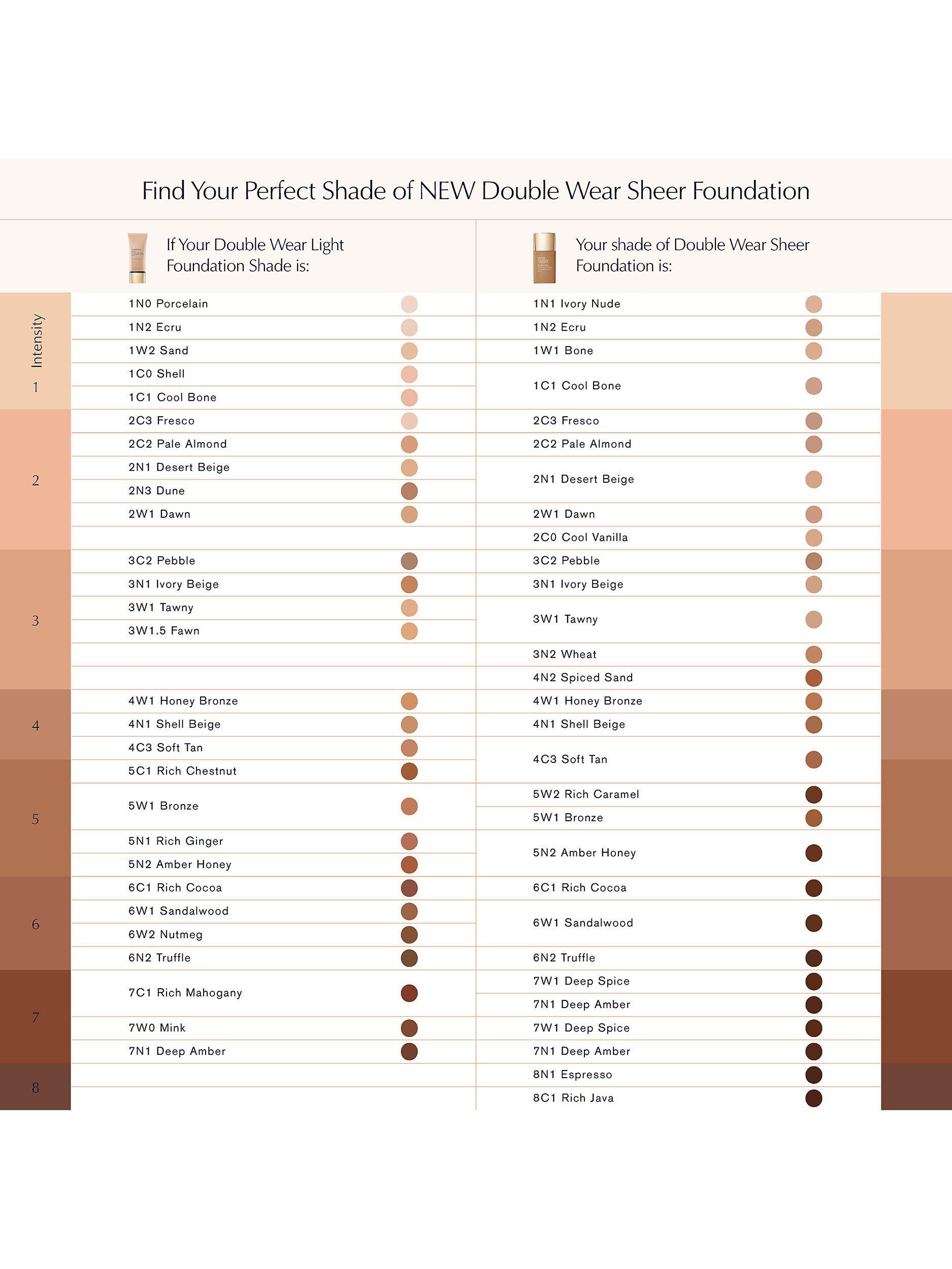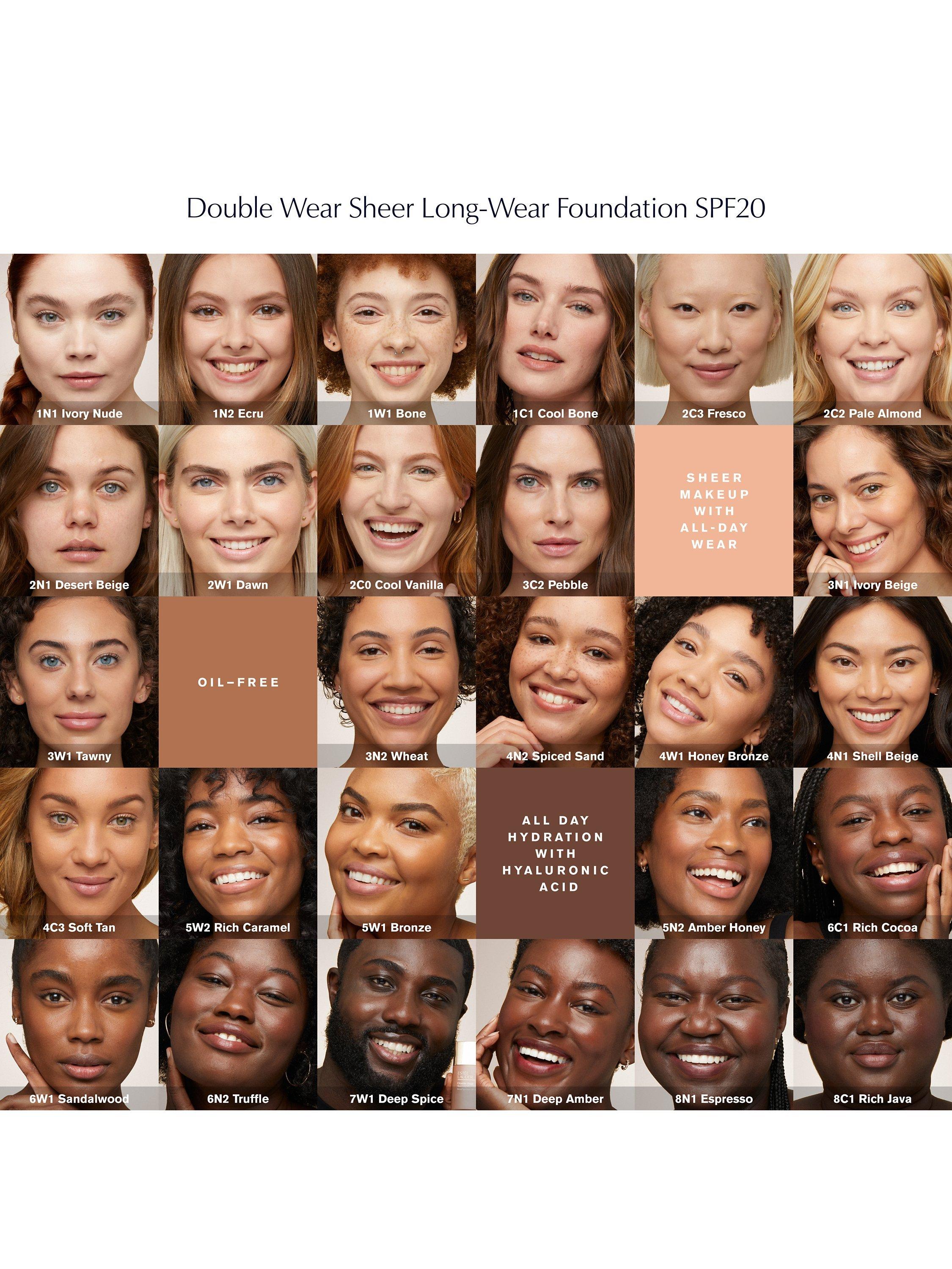 Double Wear Sheer is a softly blurring makeup with a seamless sheer matte finish and 12-hour long wear.