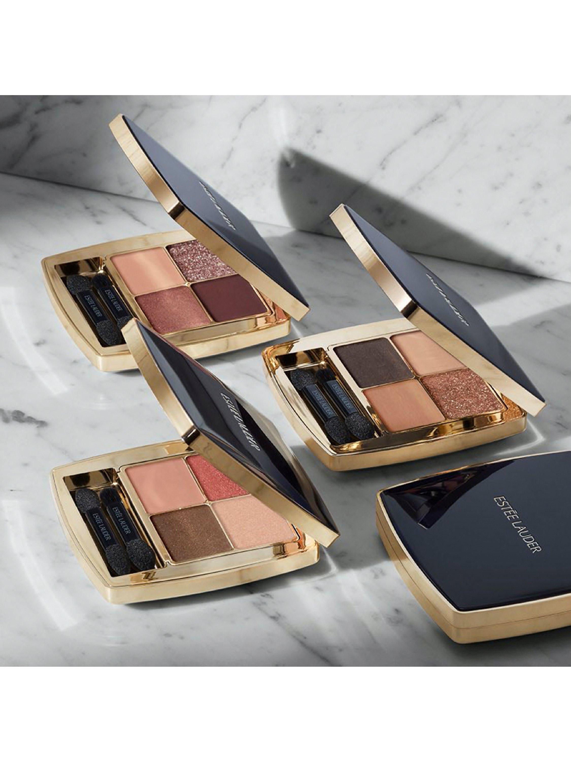 Each palette features four luxe powder shadows, rich in pigment and plush in texture. The expert colour pairings of flattering neutrals, unexpected accent shades and multi finishes — Sparkle, Satin and Matte in each compact — work beautifully together. The shades enhance your eye colour and your skin tone and build easily from a soft colour wash for the day to more emphasis for the night.