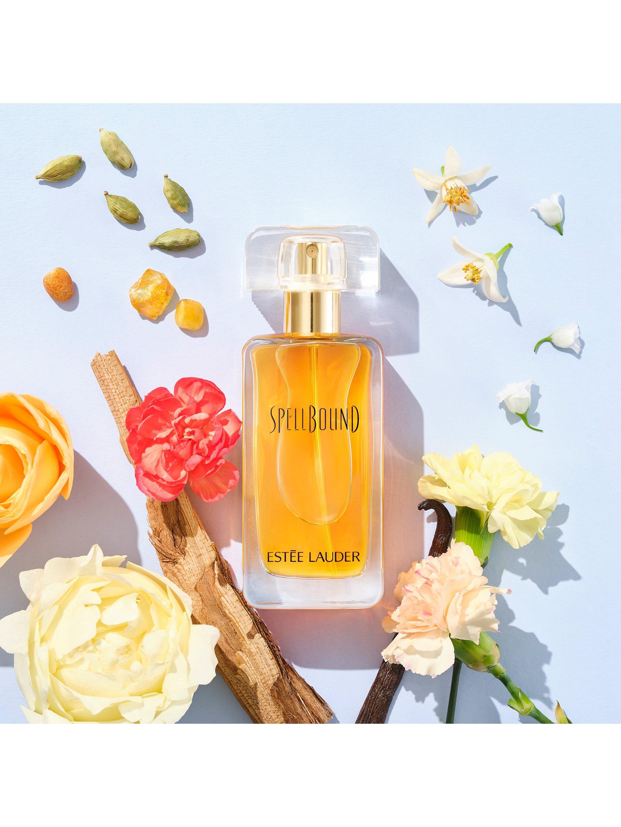 Introduced in 1991, Spellbound captures the intense magic of falling in love. Amber in inspiration, it conveys passion, sensuality and the essence of femininity."Spellbound redefines sensuality and romance," said Evelyn Lauder. "With so many difficulties confronting us every day, we seek romance and fantasy as a new priority. We all want to fall in love again. SpellBound opens the doors."