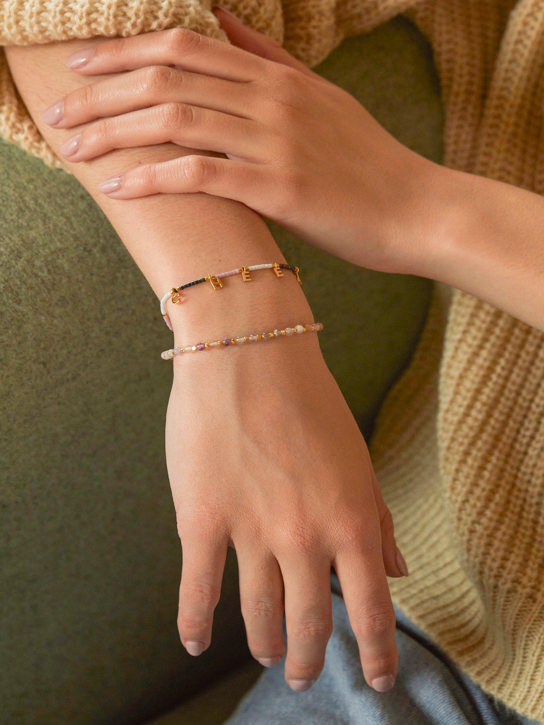 Designed with multiple beads, this bracelet from Estella Bartlett is punctuated with amethyst, the stone of calm, patience protection.