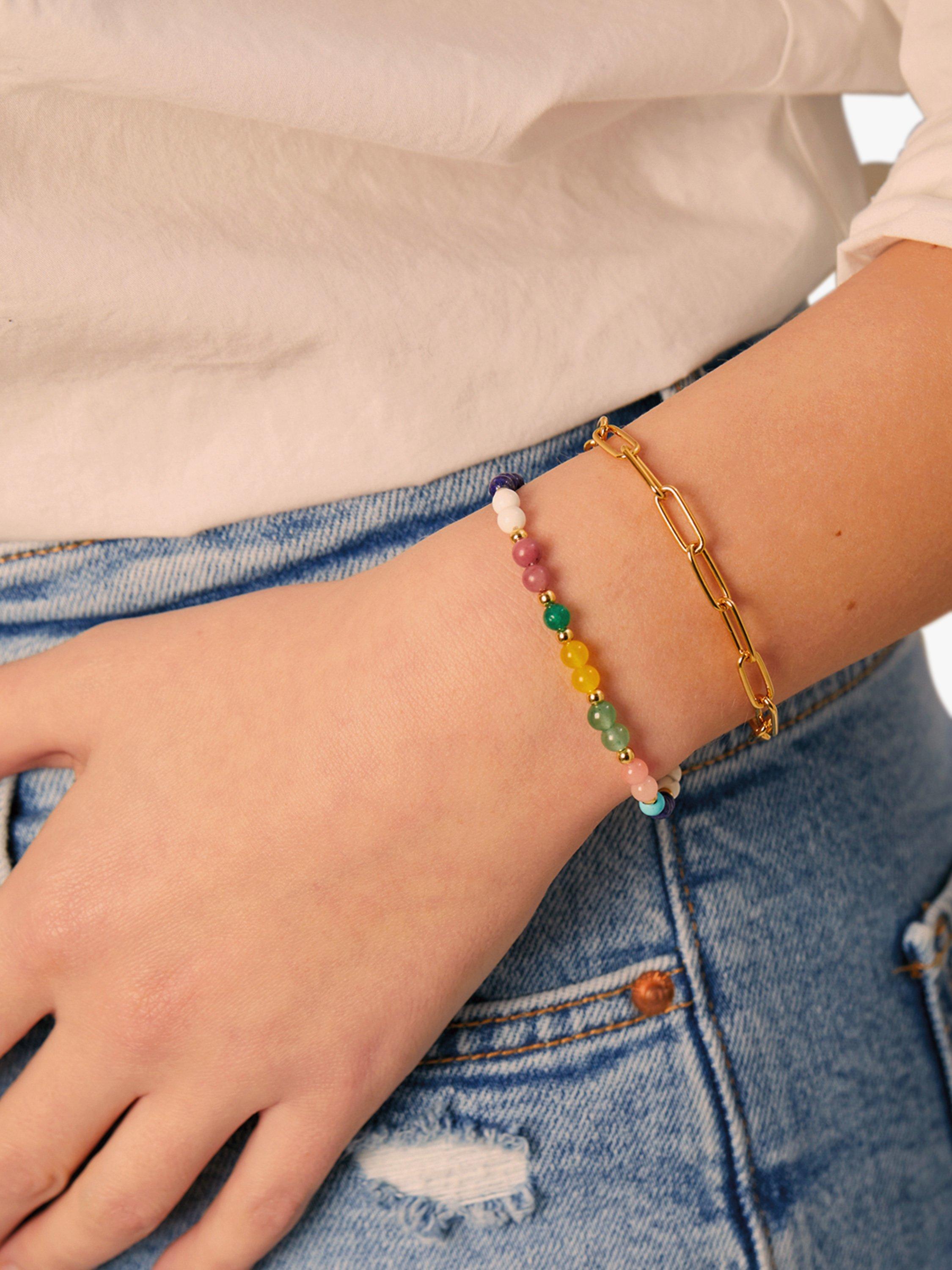 A colourful update to any outfit, this bracelet comes in a vibrant gemstone design with adjustable, lobster clasp fastening.
