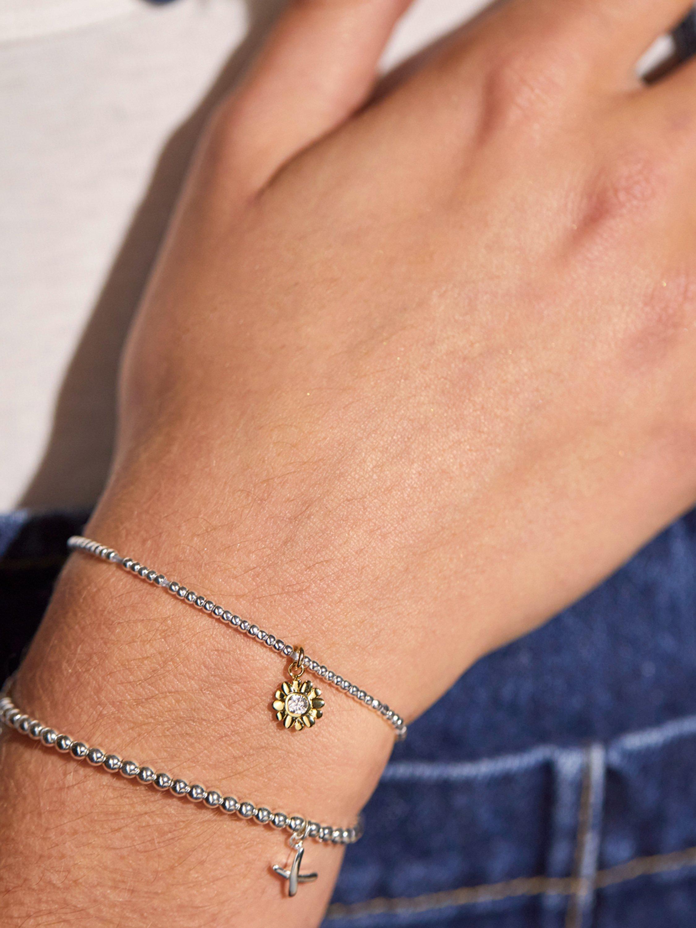 Strung with beads and with a bit of stretch, this single kiss charm bracelet from Estella Bartlett lends your jewellery trinket a refresh.