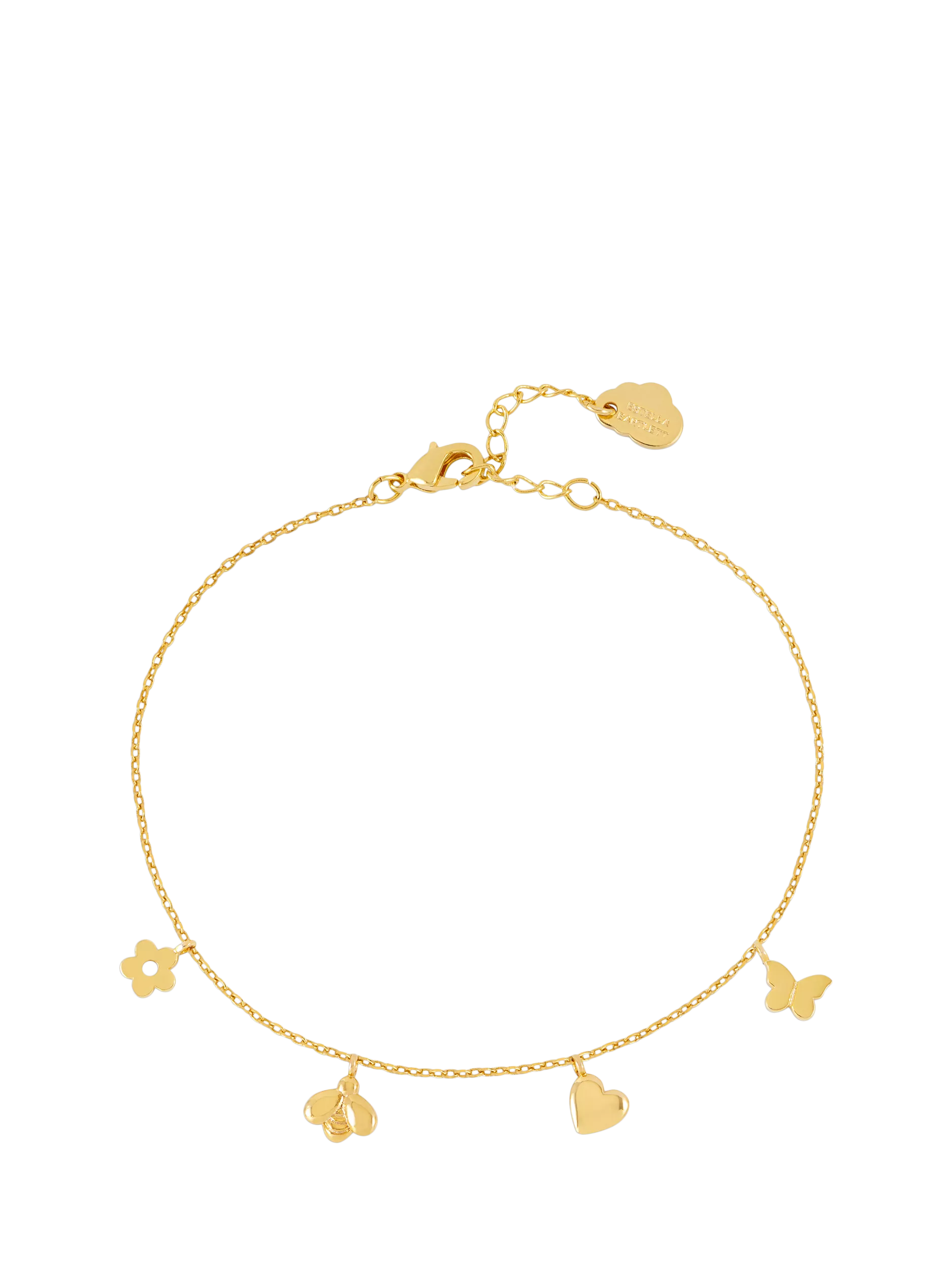 Suspended from an adjustable chain, this charm bracelet features delicate bee, flower, butterfly and heart charms, crafted in gold-plated brass.