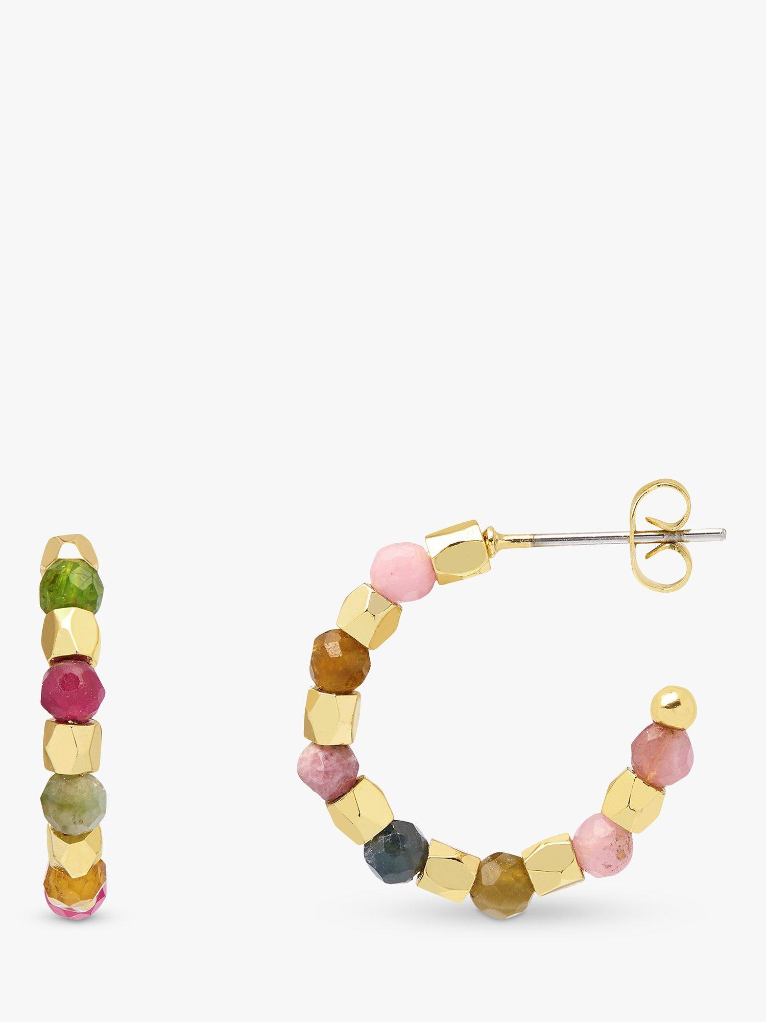 Featuring with multiple beads and tourmaline, these hoop earrings add a touch of colour to your look. Secured with post fittings, they are for pierced ears only.