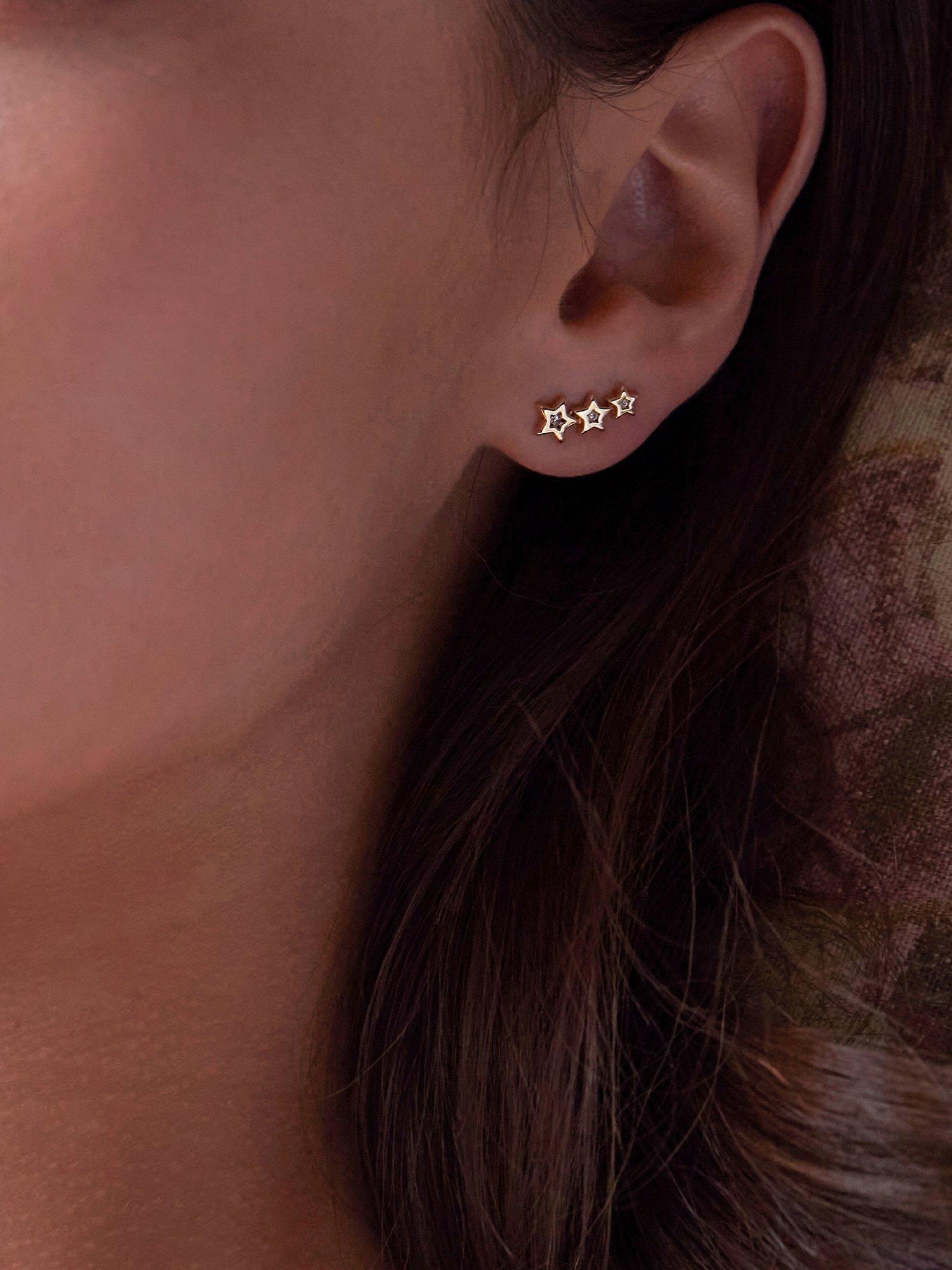 Impeccably designed by Estella Bartlett, these triple star stud crawler earrings are great for everyday wear thanks to their impactful design. Sitting on post fittings, they are suitable for pierced ears only.