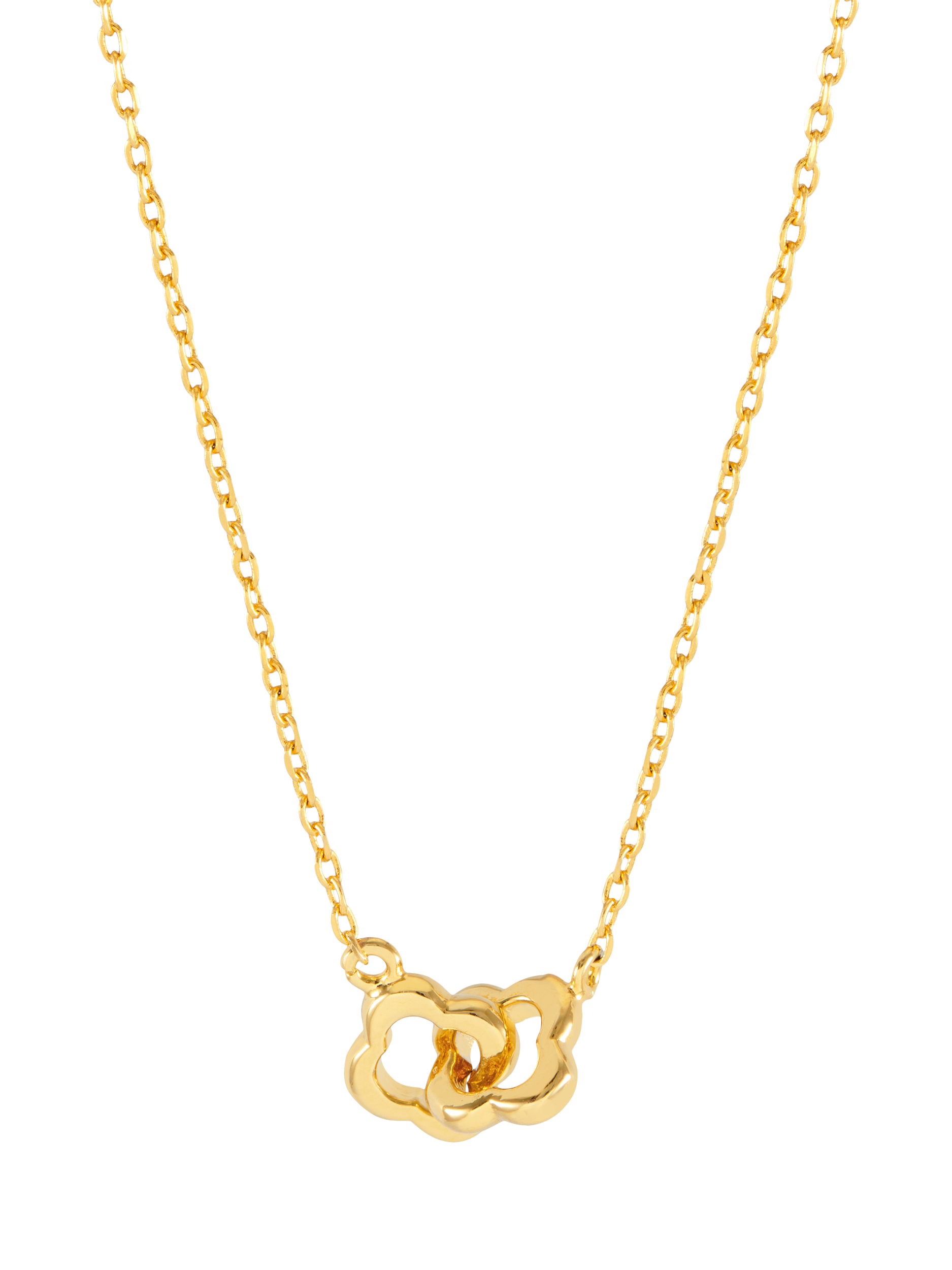 Add the finishing to your style with the Double Linked Flower Necklace, crafted form plated brass. Designed with double-linked flower charms suspended from a delicate, adjustable chain.
