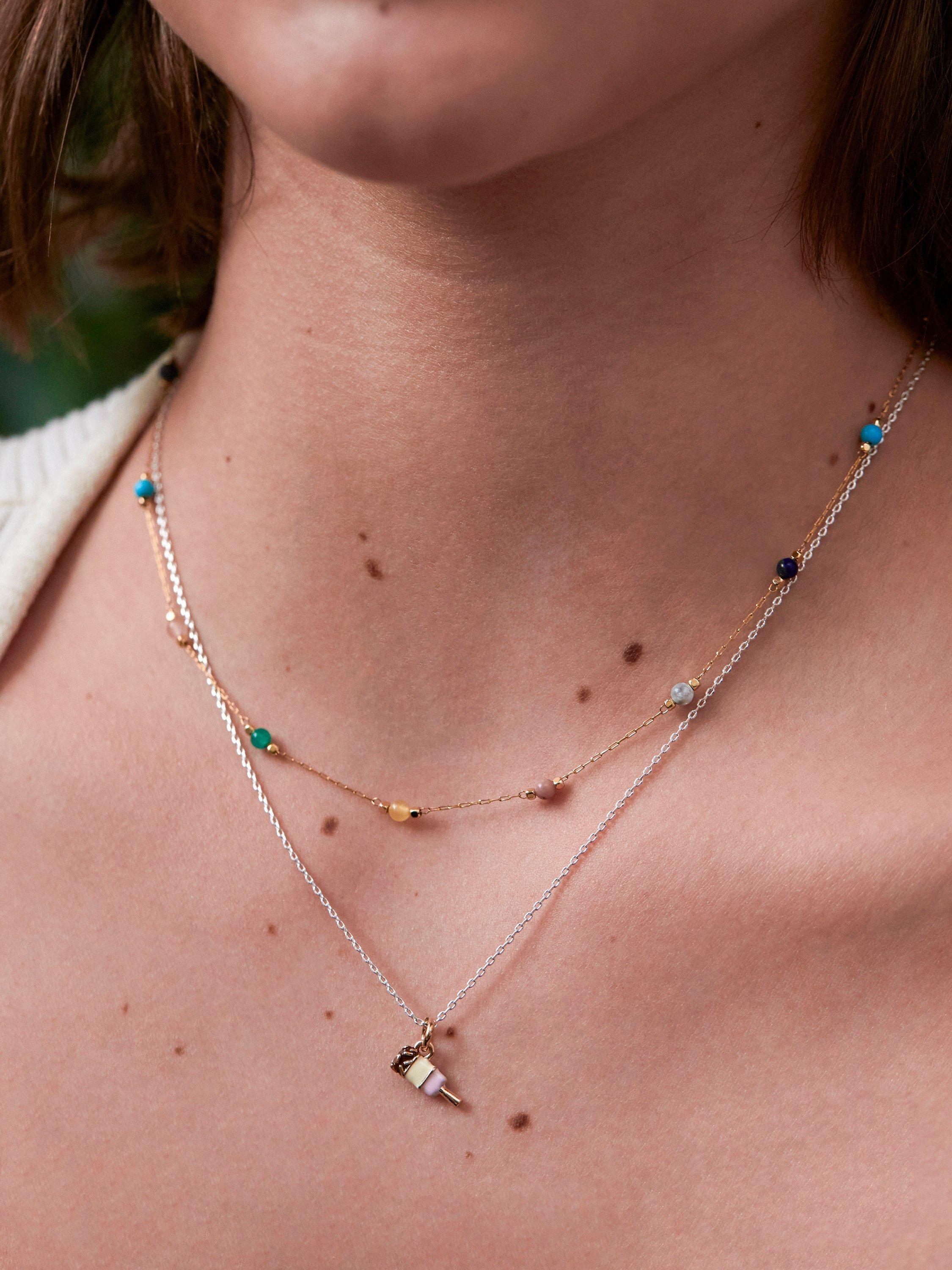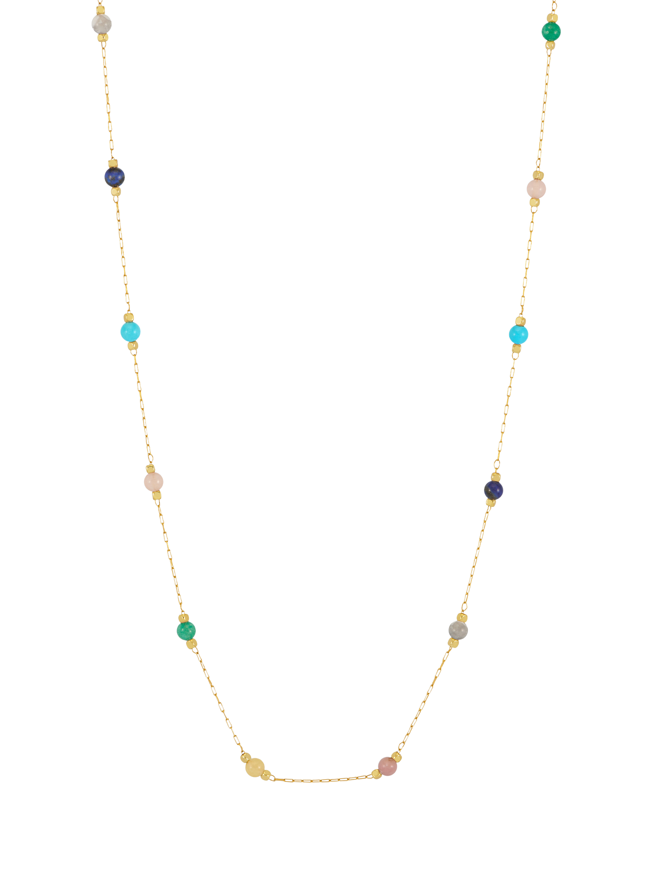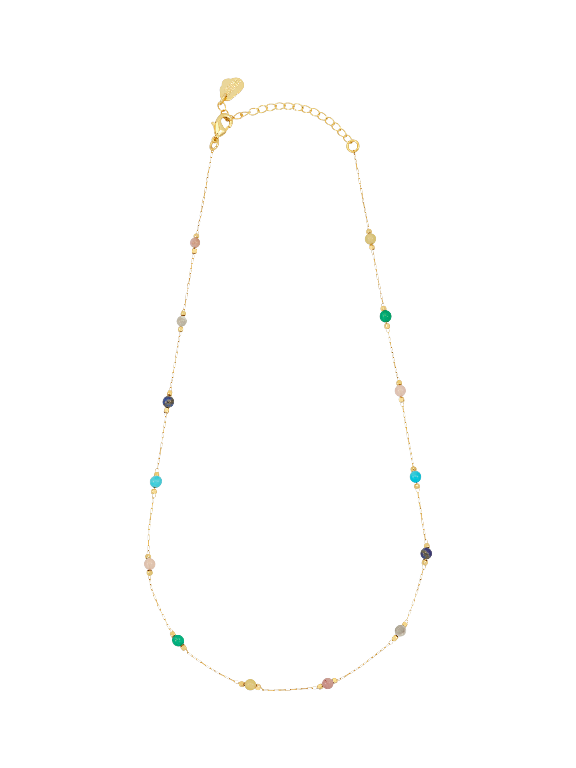 This station necklace features a mix of gemstones set amongst paperclip chain links. The style is adjustable in length for the perfect fit.