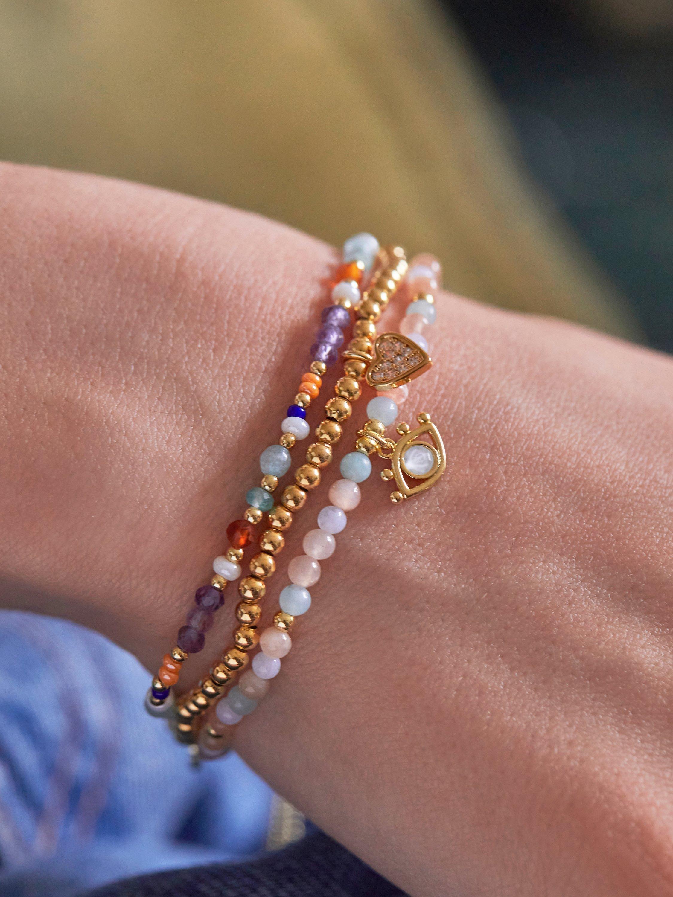 Feel the Goddess energy with the beaded bracelet from Estella Bartlett. The bracelet boasts a mix of moonstone and aventurine semi-precious gemstones.