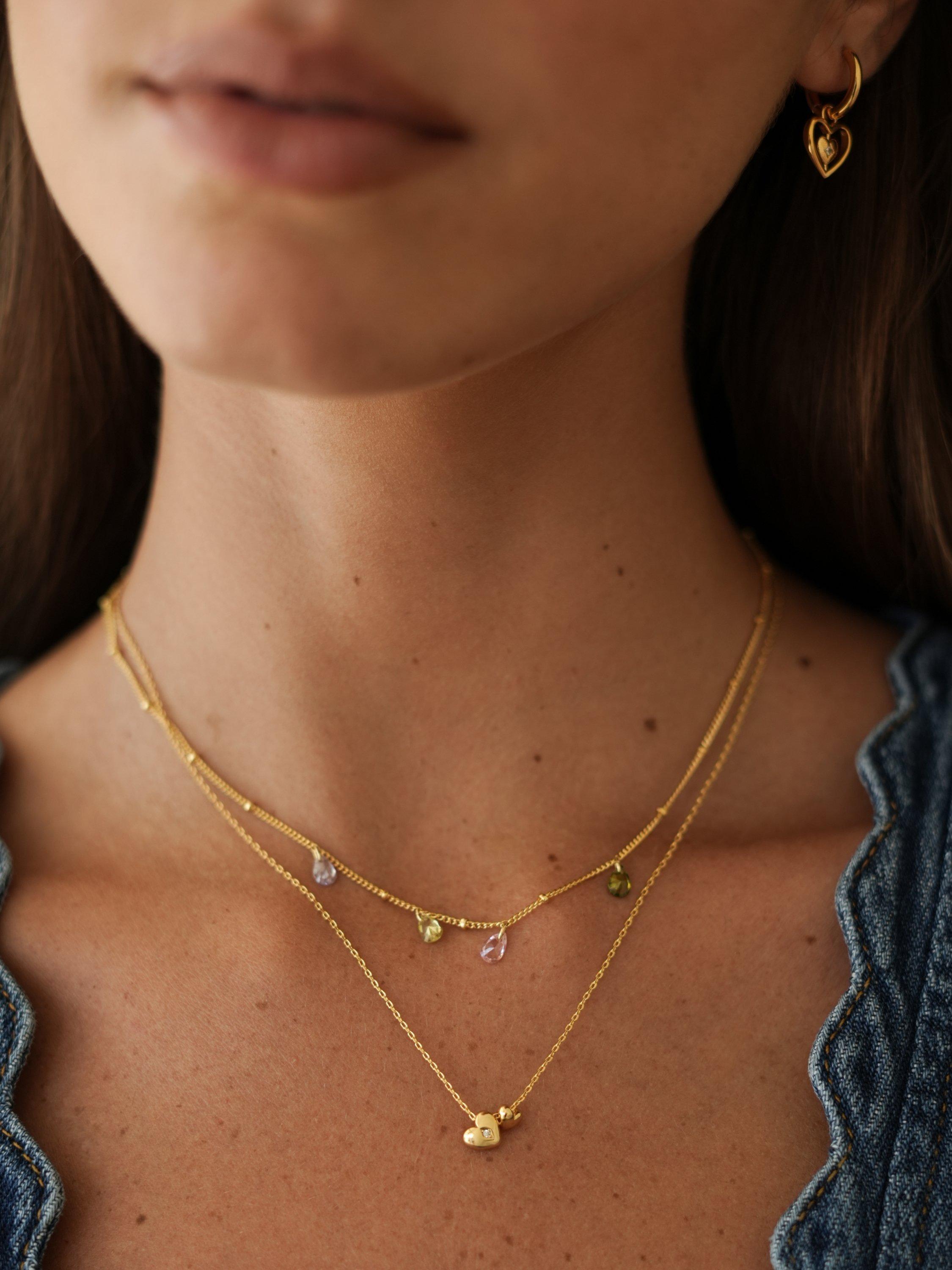 Estella BartlettLove Double Heart and Cubic Zirconia Necklace, Gold
