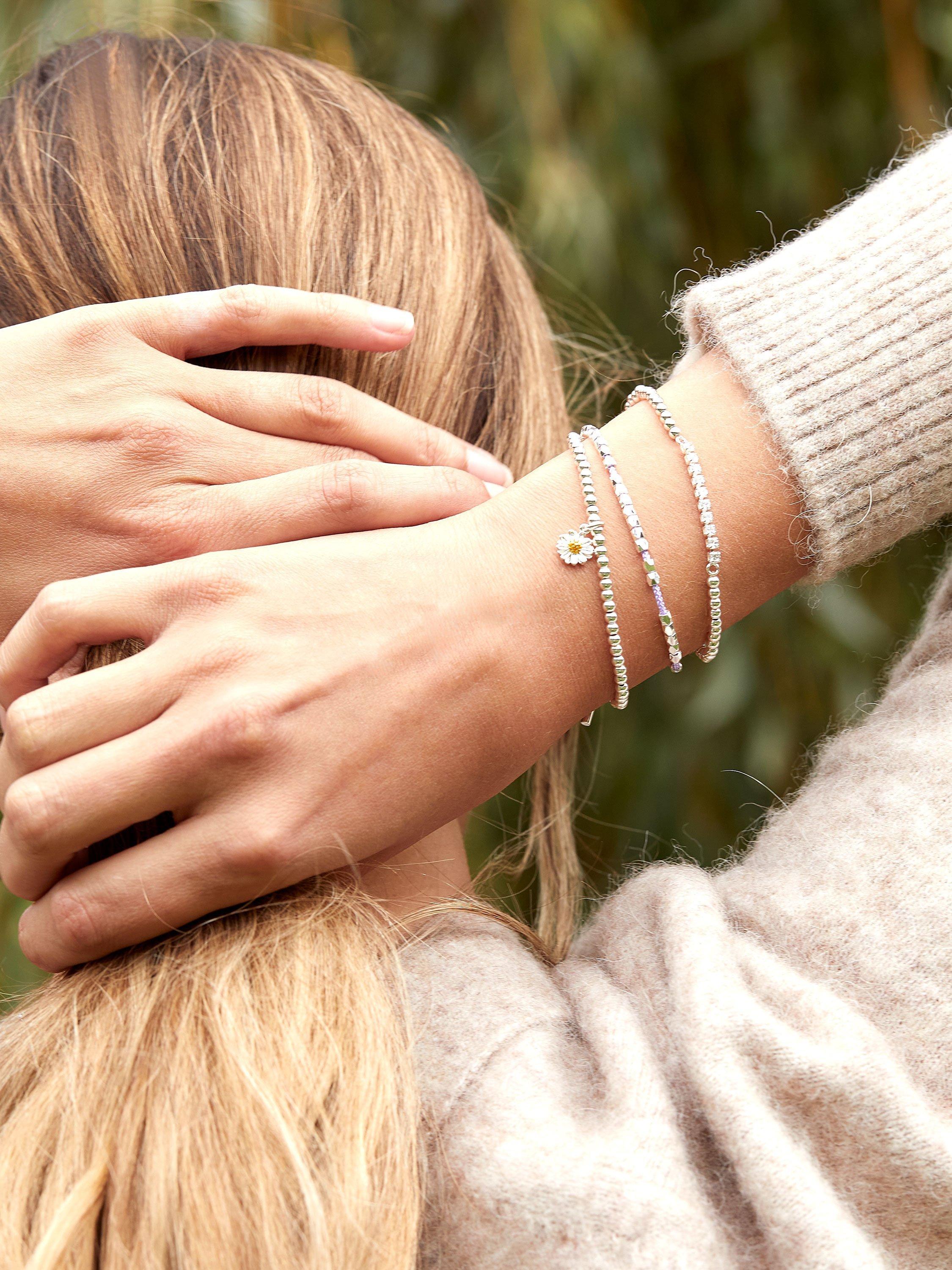 The versatile design comes with a beaded stretch fit that will suit most wrists. The bracelet suspends a pretty detailed flower charm to add interest to the wrist.