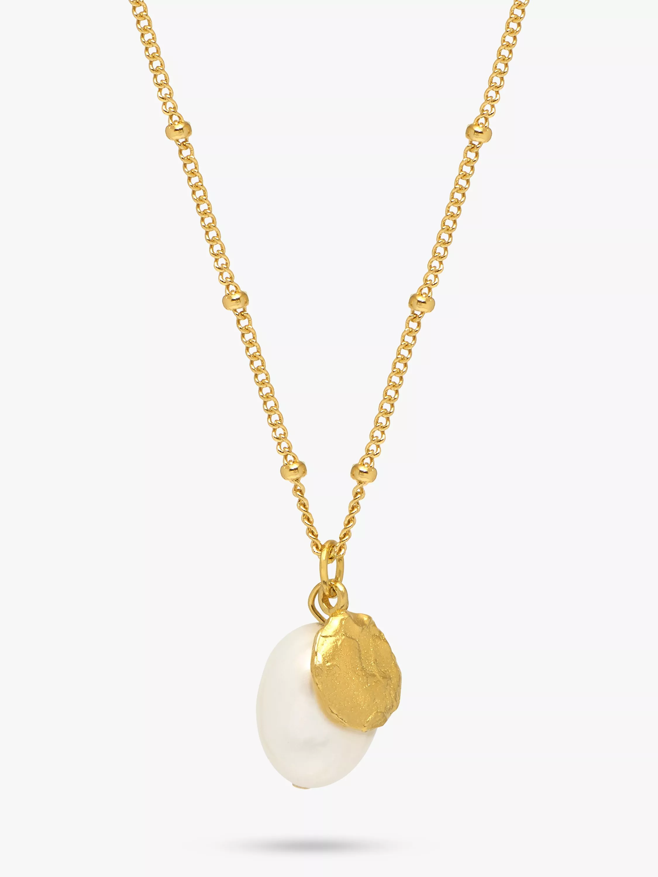 A classic pearl necklace is a style essential and our this chic pendant necklace is no exception. Featuring a delicate textured coin pendant and natural pearl hung from a fine, gold plated chain. Style solo or pair with minimalist gold chains for even more elegance.