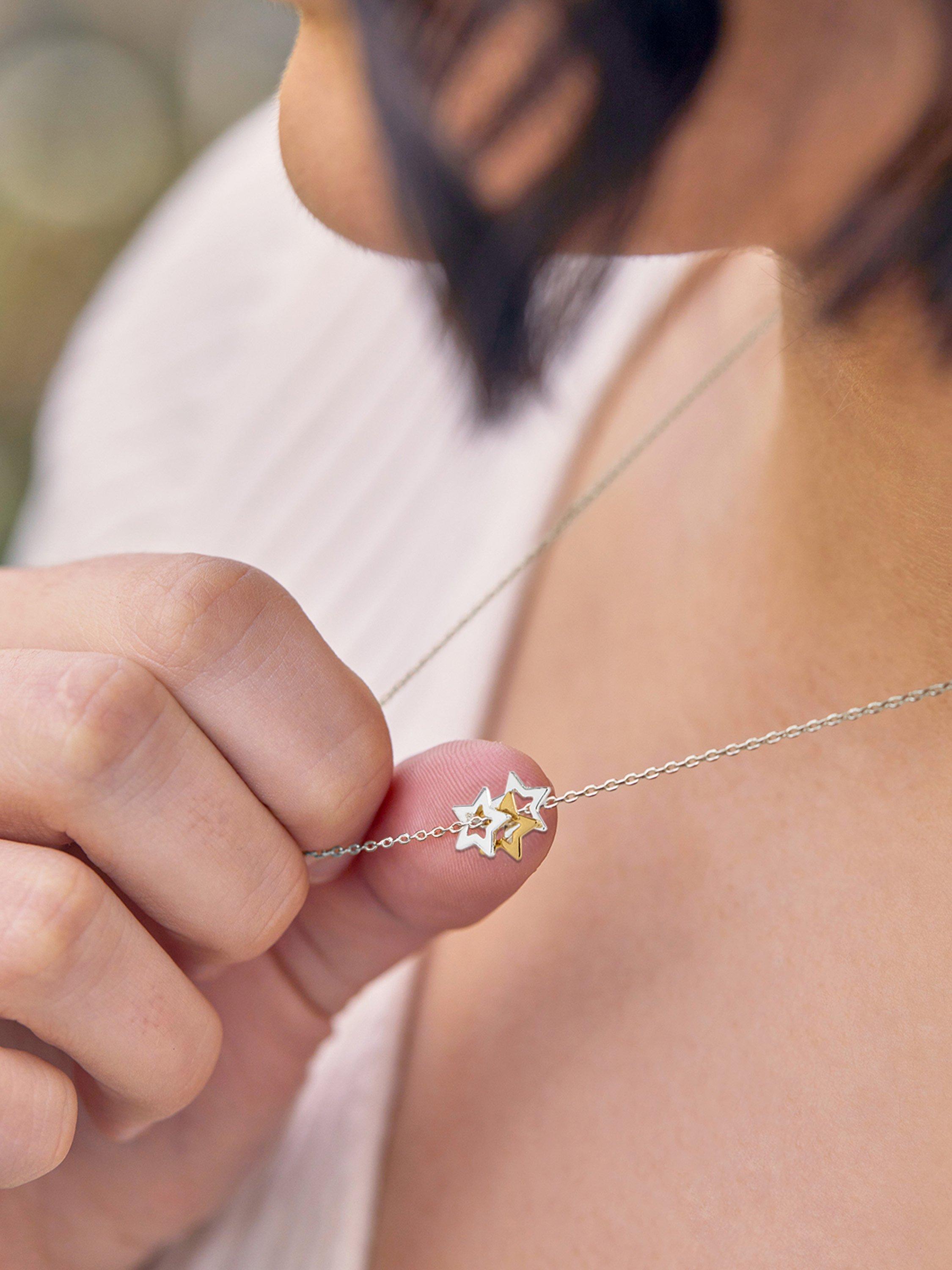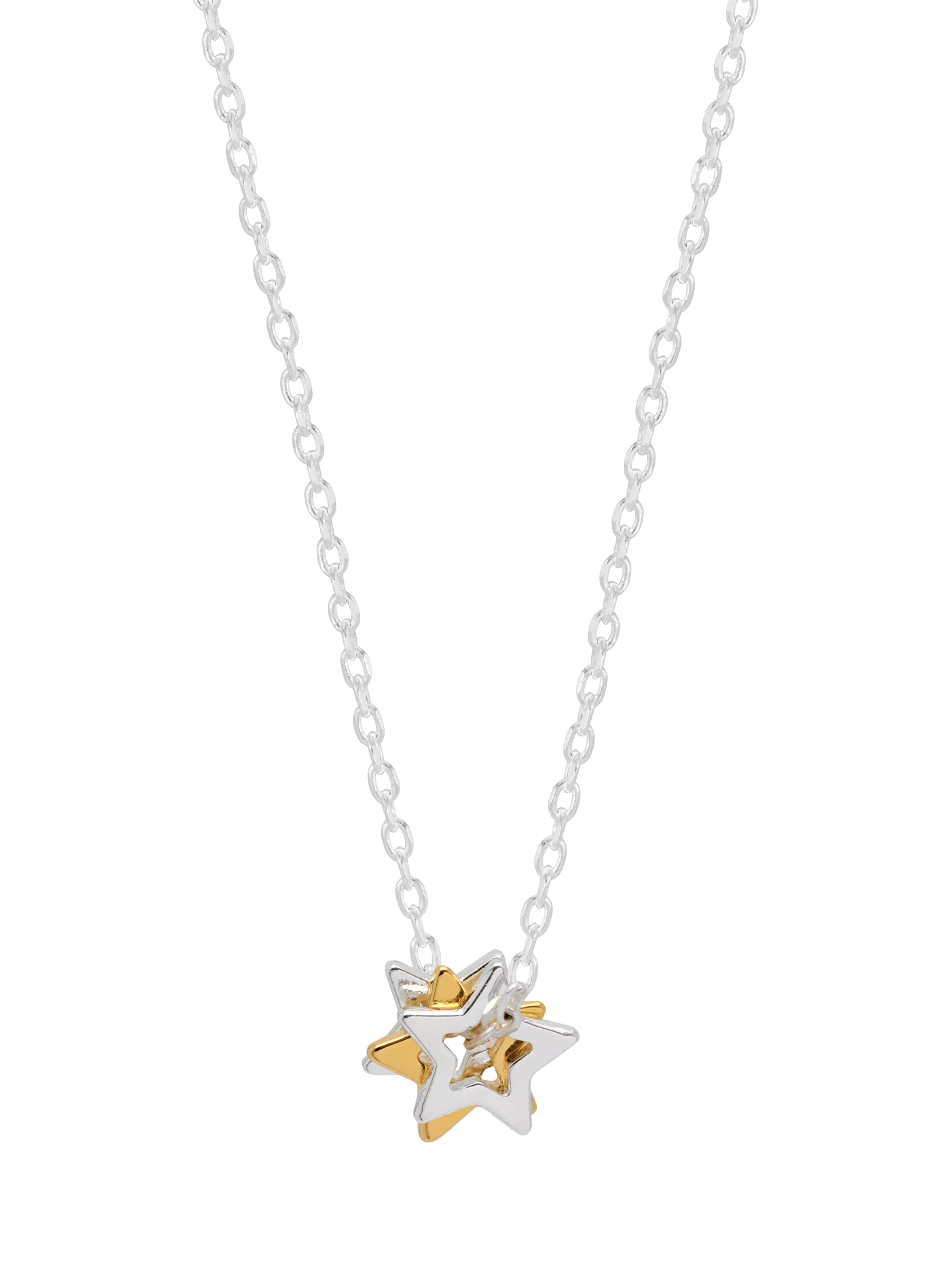 This fine chain necklace is hung with a trio of delicate stars in gold and silver finishes.