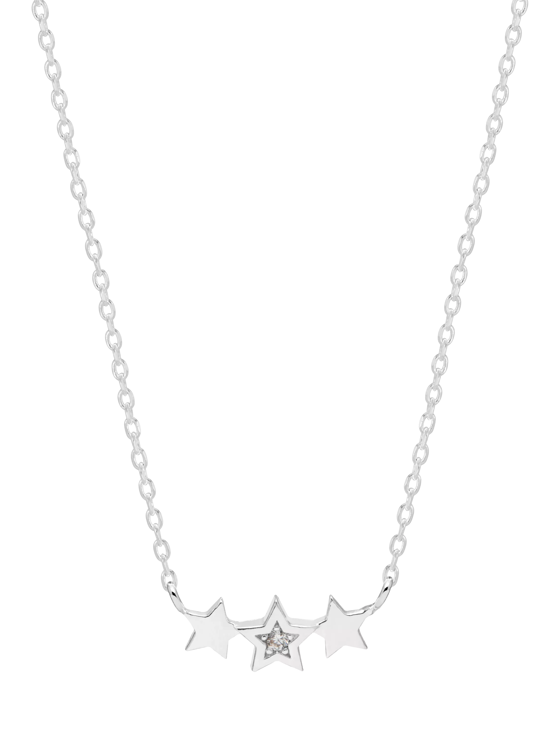 This necklace features a trio of stars suspended by a fine chain necklace. The central star is set with a cubic zirconia gemstone for a touch of sparkle.