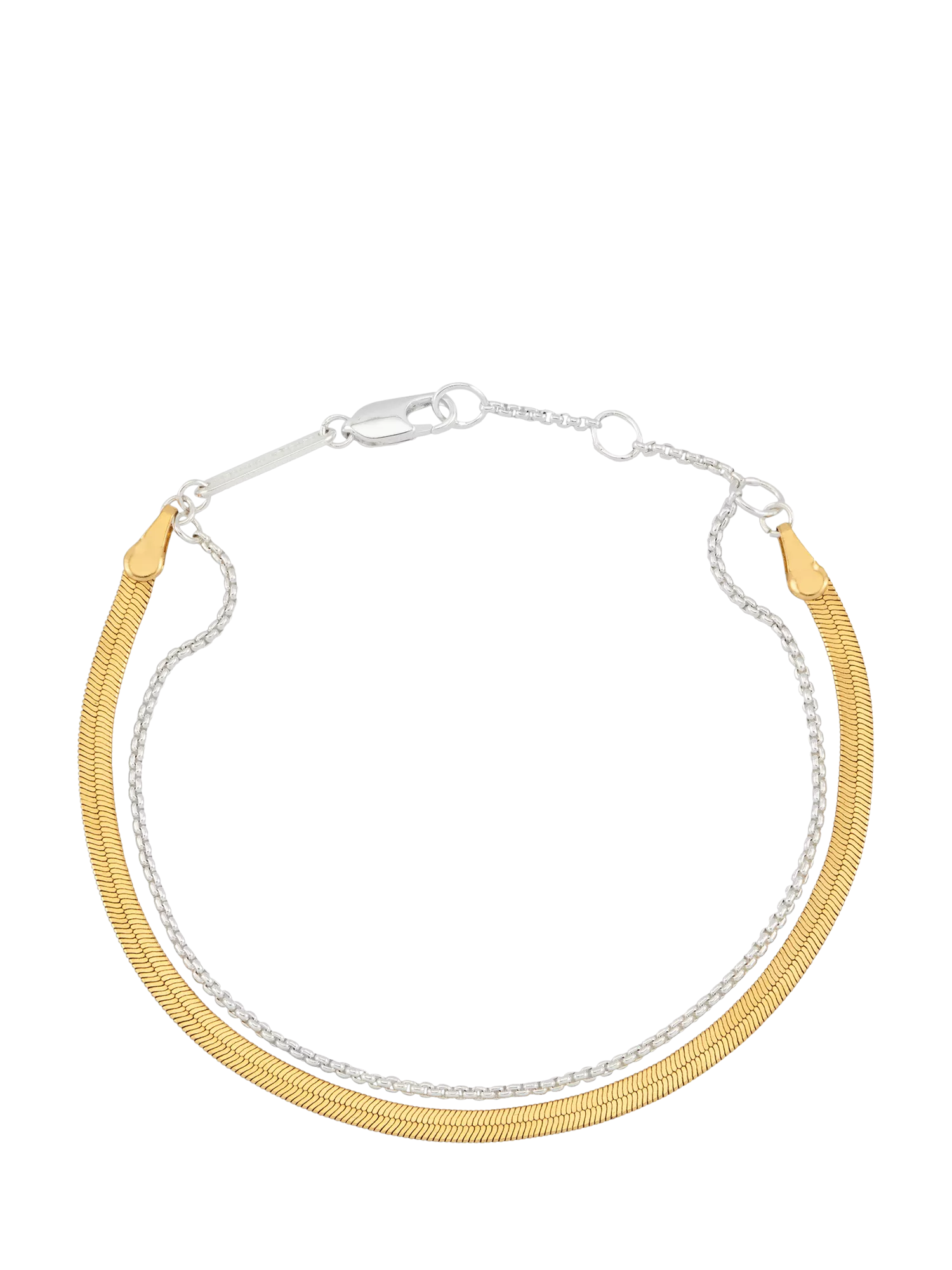 Designed with an additional silver-plated chain, this waterproof gold-plated Herringbone Chain Bracelet features an adjustable clasp fastening, ideal for everyday wear.