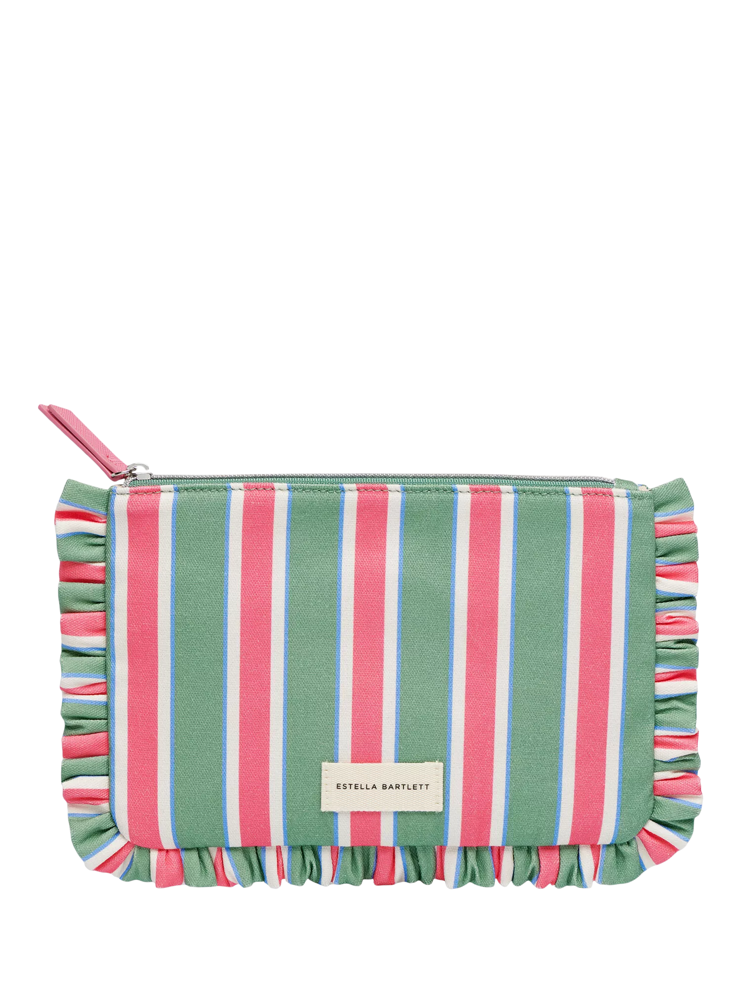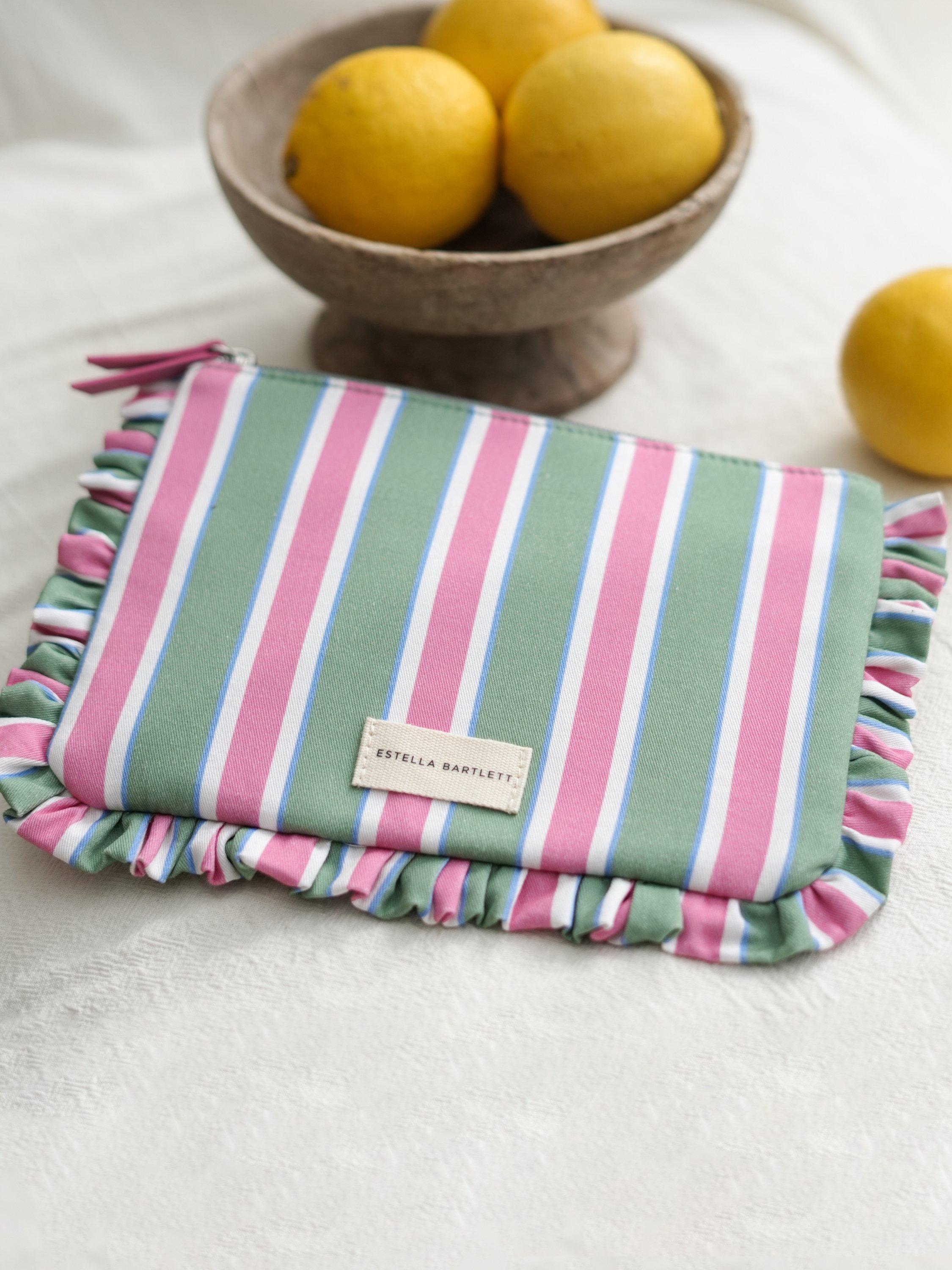 Estella BartlettZipped Ruffle Pouch, Green Multi Stripe