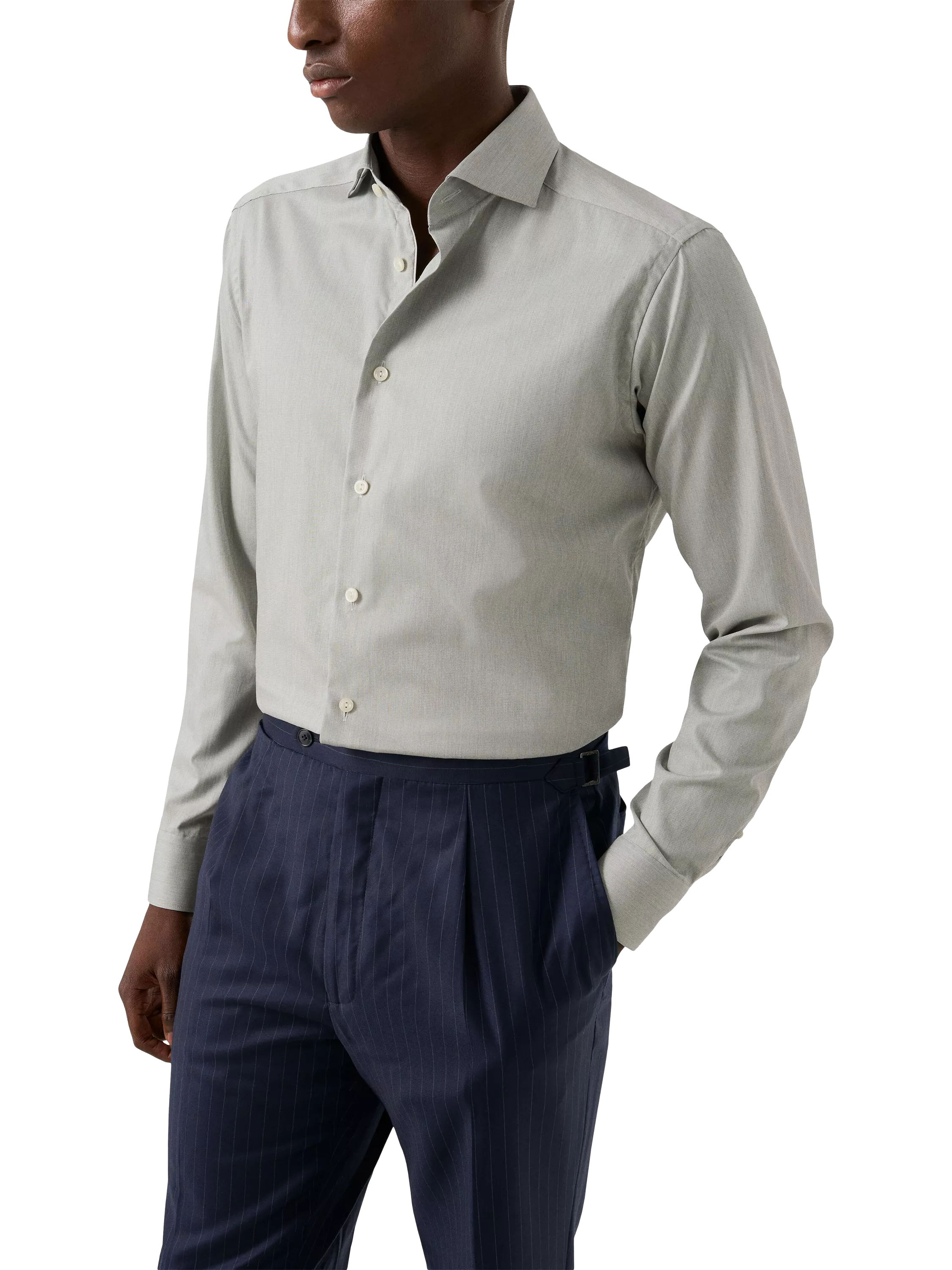 An elegant shirt cut from Eton’s Fine Twill, a beautiful fabric that offers a featherweight hand and an elegant, diagonal texture. The fabric is woven from 100% organic cotton yarn in solid colours, and the stylish detail of fabric piping on the placket overlap enhances the shirt with a sophisticated touch.