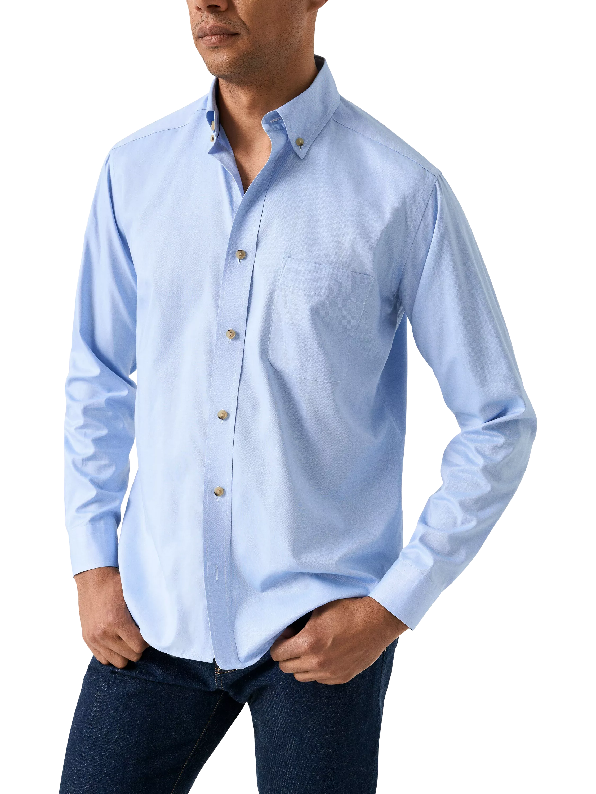 A casual classic made from 100% cotton for a more sustainable choice. Woven into Eton's Signature Oxford fabric by combining solid and mélange yarns to create beautiful depth and texture, the fabric is enhanced with a wrinkle-resistant finish to ensure a smart look that lasts all-day.