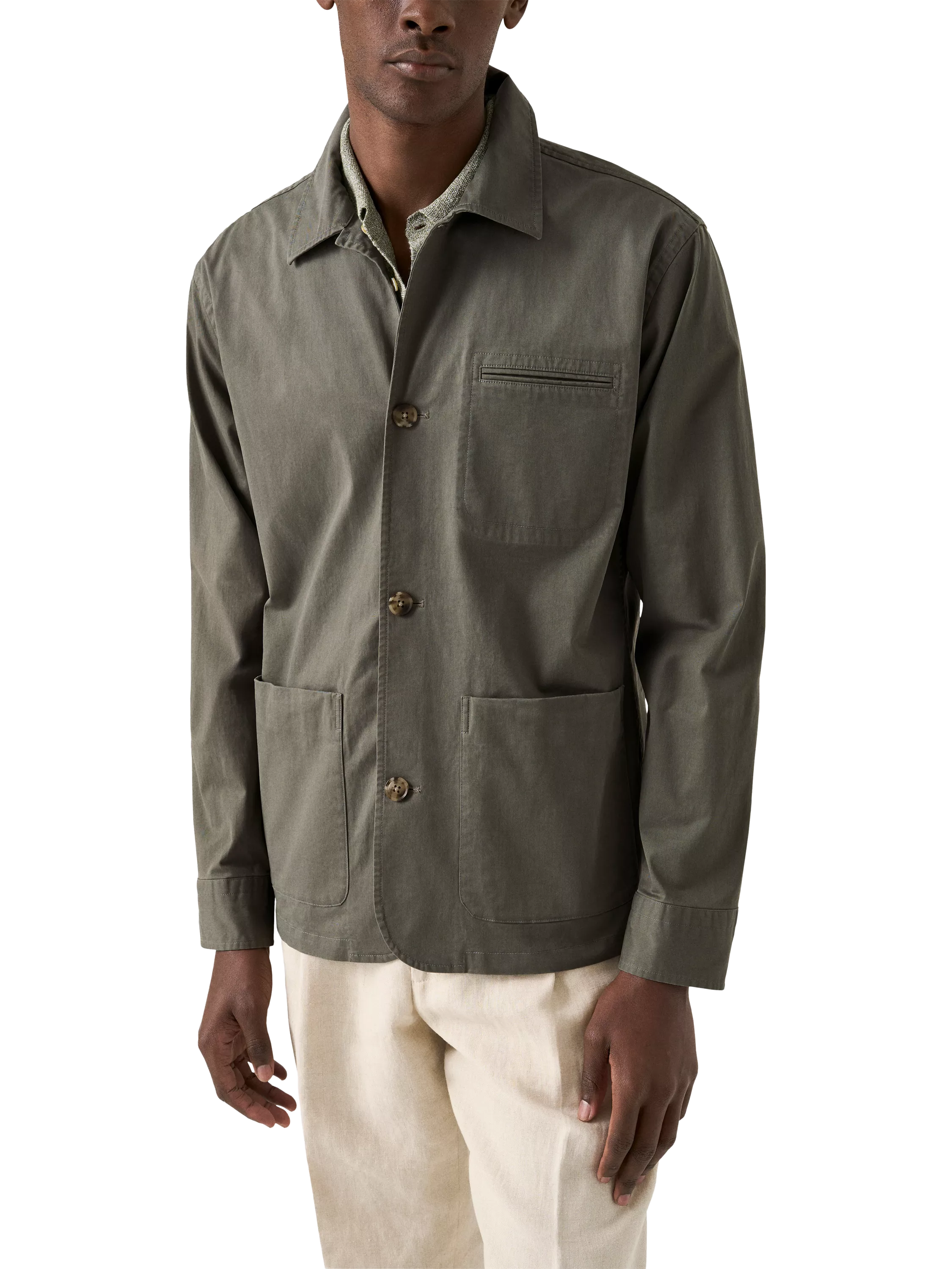 Featuring a button front, chest pocket, and two side patch pockets, this unlined overshirt is designed for a regular fit, offering both style and comfort.
