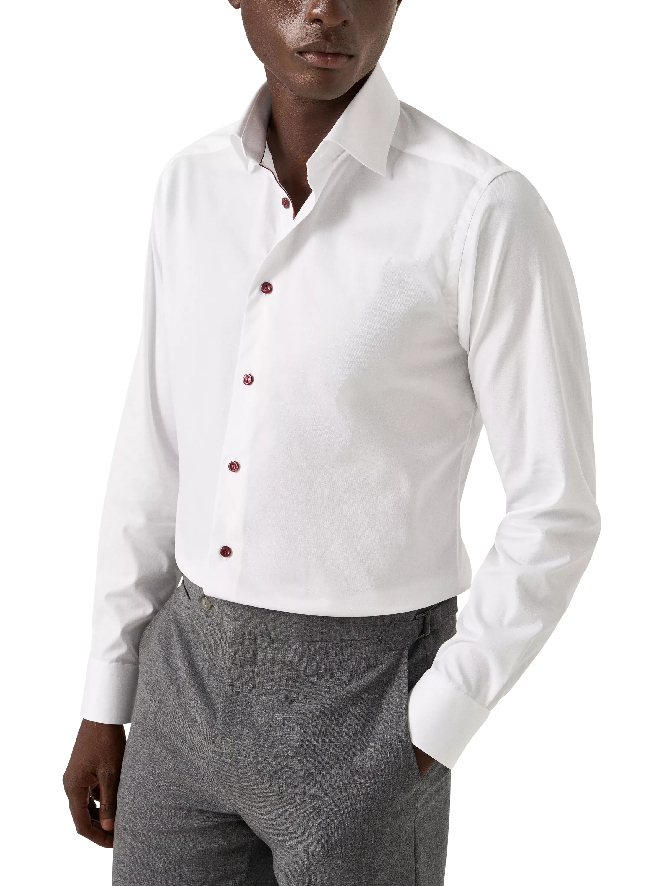 Crafted from Eton's most iconic wrinkle-free Signature Twill, this refined shirt combines timeless elegance with exceptional functionality. Made from 100% cotton, it features plum-coloured ribbon piping and matching buttons for discreet yet striking contrast. The fabric’s wrinkle-resistant and breathable qualities ensure superior drape and comfort throughout the day.