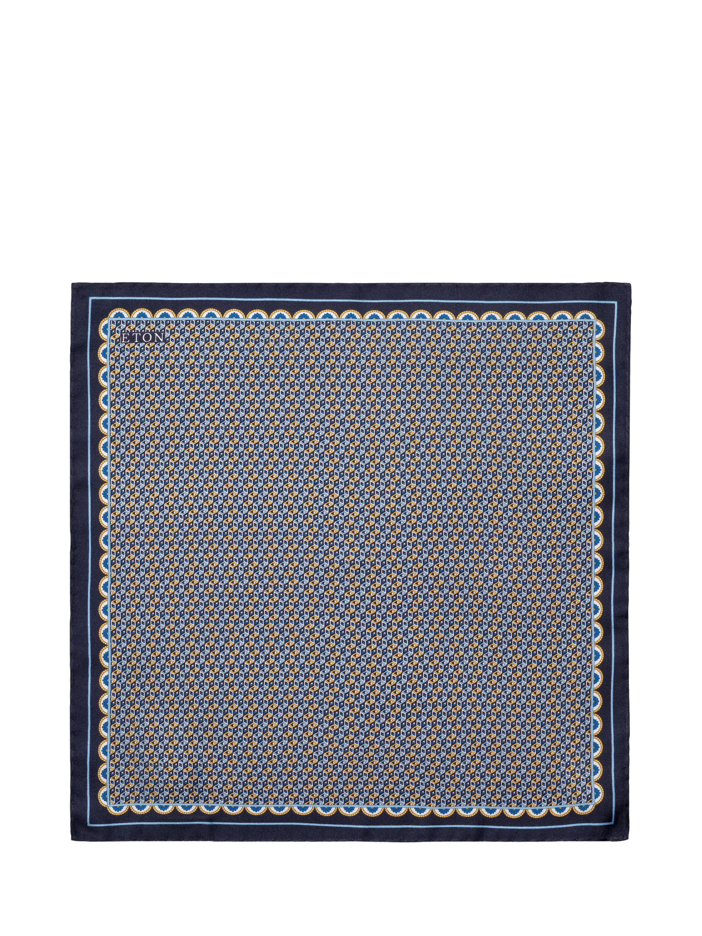 A geometric print pocket square in 100% silk twill, combining a smooth drape with a refined diagonal texture for a sharp fold. Finished with rolled edges. Made in Italy.