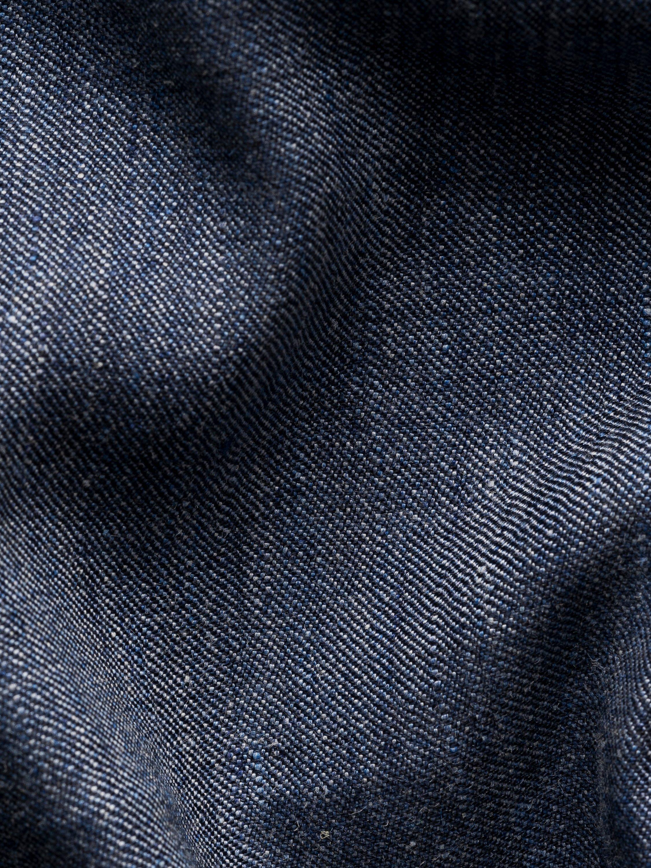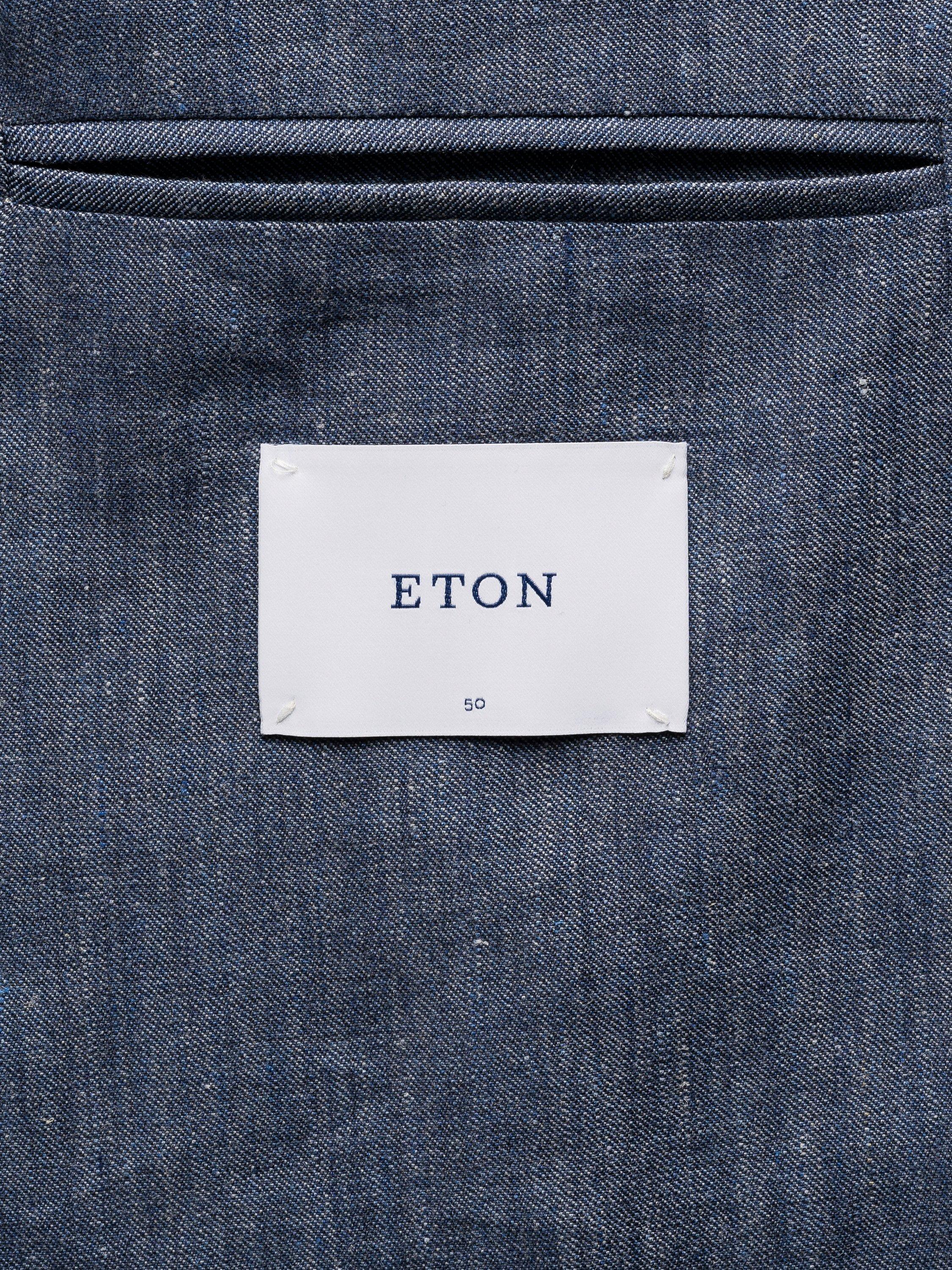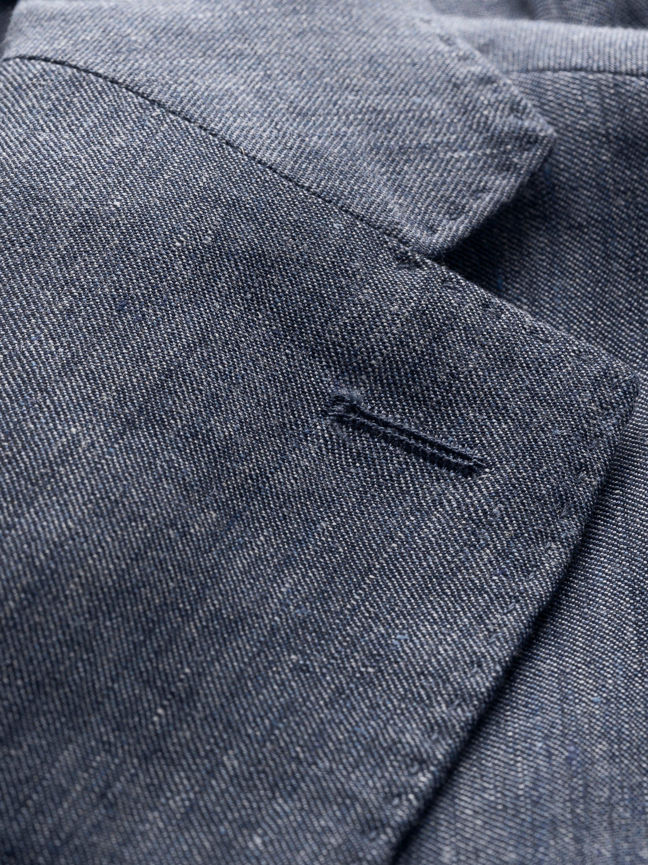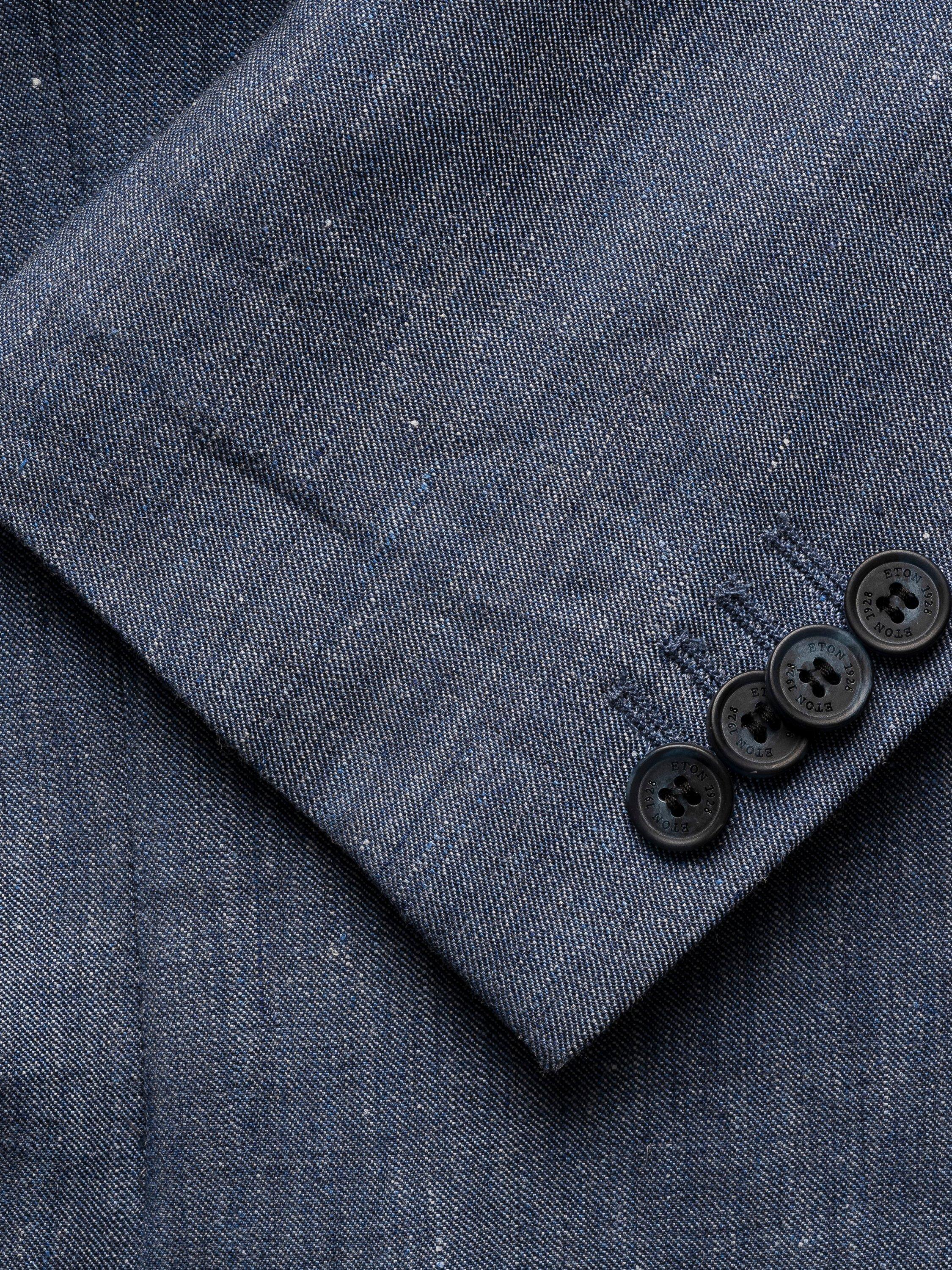 A deconstructed blazer crafted from a wool-linen blend fabric with a fine basketweave texture, ideal for the summer season. The unlined jacket drapes effortlessly with lining only in the sleeves.