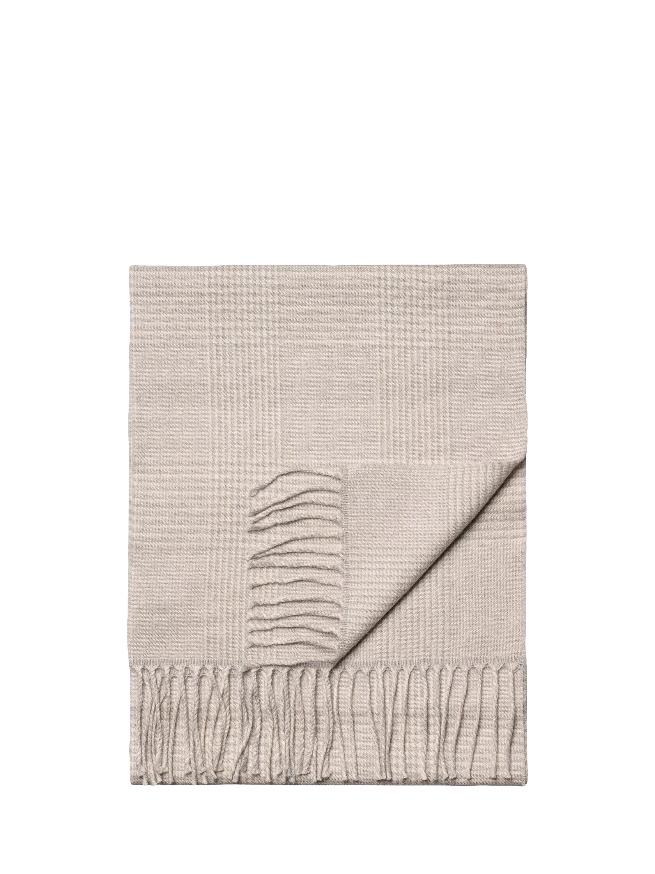 A cold weather merino wool scarf that elegantly combines an ultra-soft touch with excellent durability and warmth. Woven in Italy from 100% merino yarn, the stylish Prince of Wales check pattern adds a sophisticated touch to your outerwear on colder days while a dark brown leather label adds a considered detail.