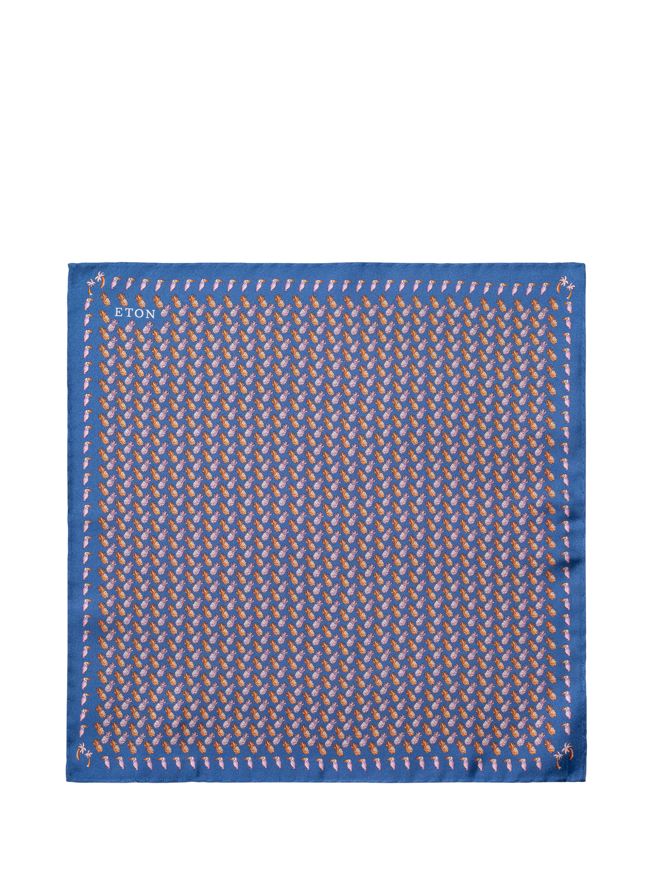 EtonPineapple Print Silk Pocket Square, Blue