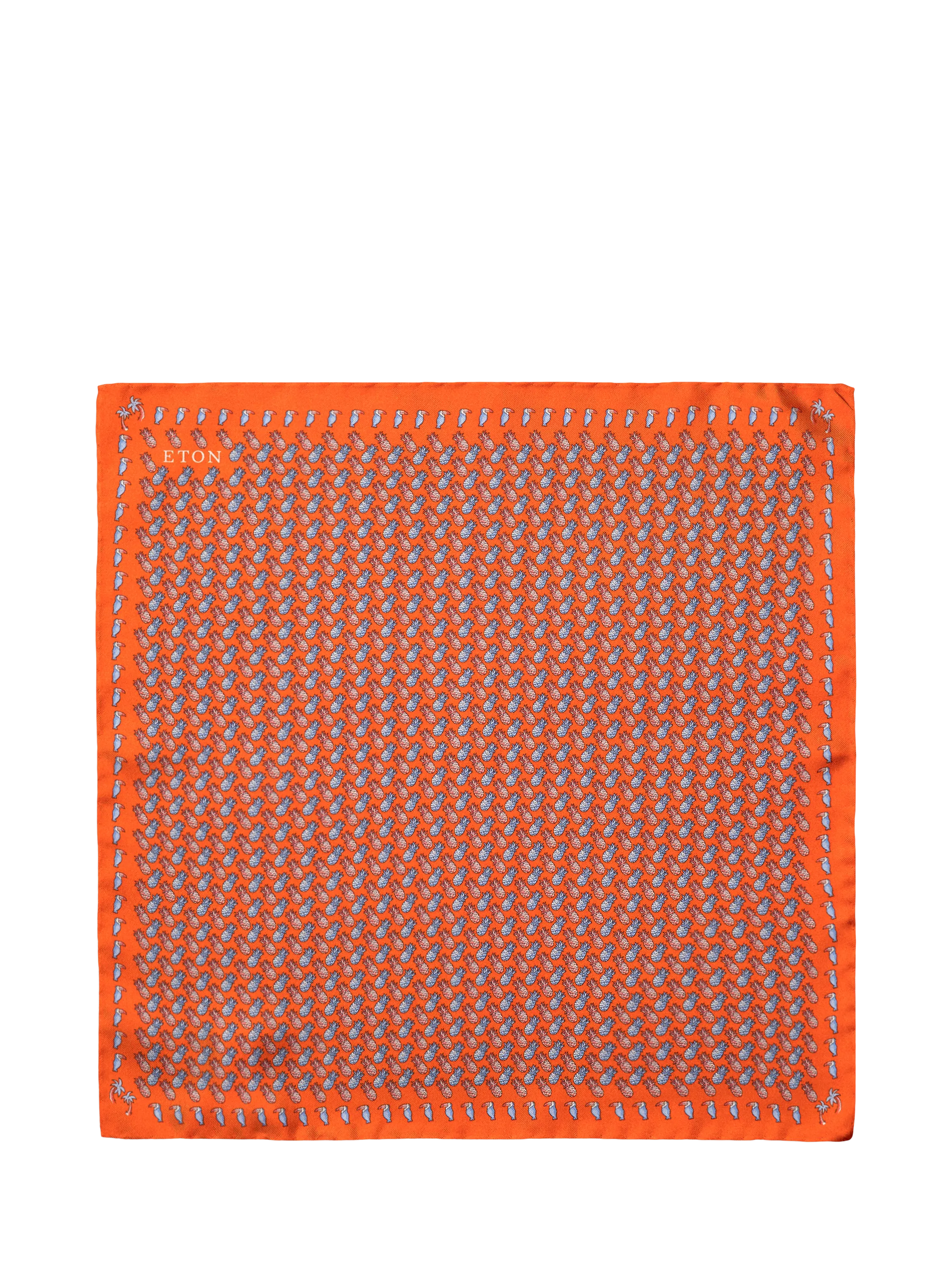 A silk twill pocket square printed with a pineapple motif, offering a soft drape and refined diagonal texture for an elegant fold. Finished with rolled edges. Made in Italy.