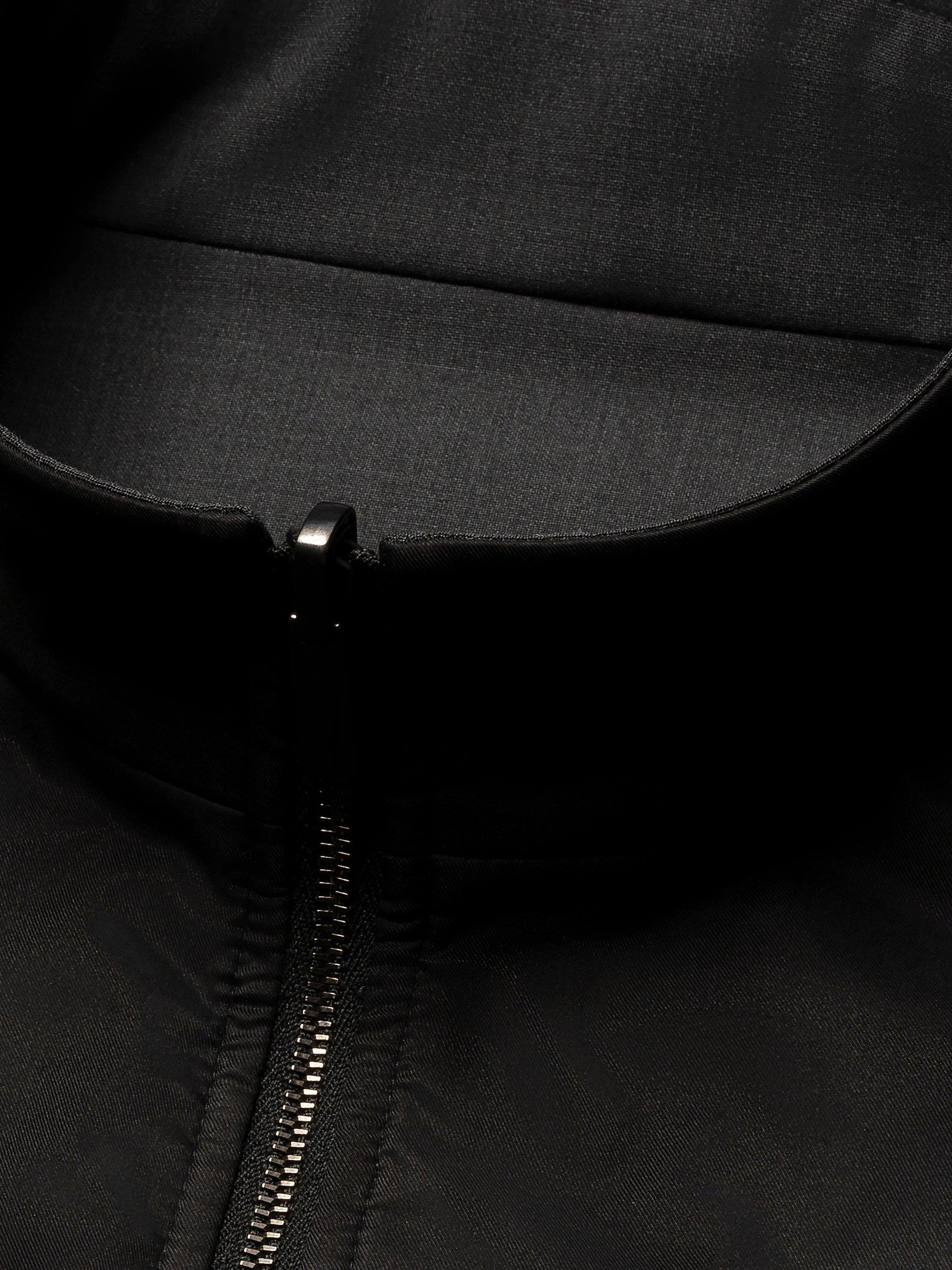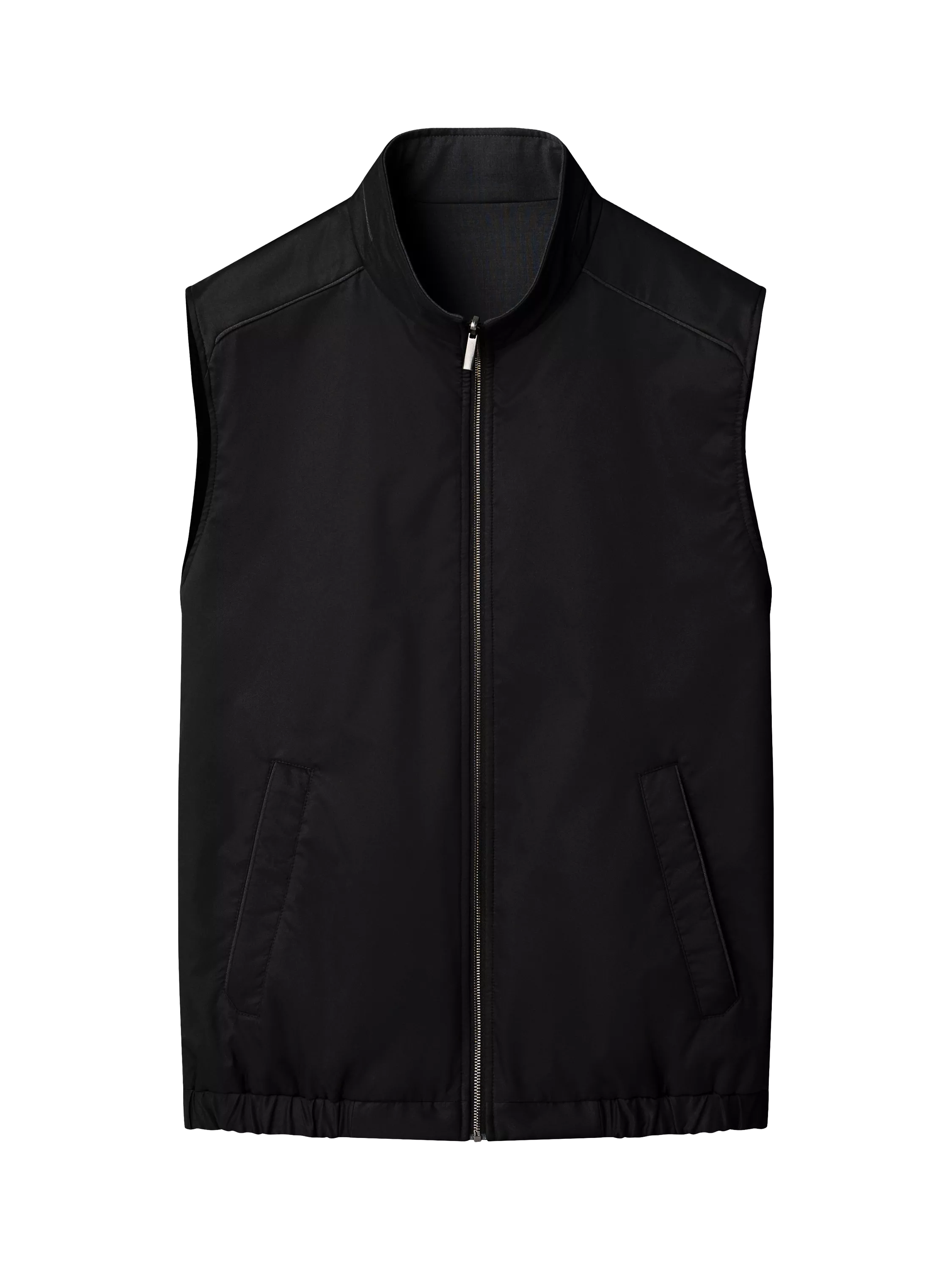 A versatile reversible vest offering a water-repellent micro-nylon nylon shell on one side and wool flannel on the other. Lightweight down-free padding makes it suitable as both an outer layer or a mid-layer under a jacket. Details include side-entry pockets, a two-way zip featuring the Eton logo, and elastic at the hem for a slim fit.