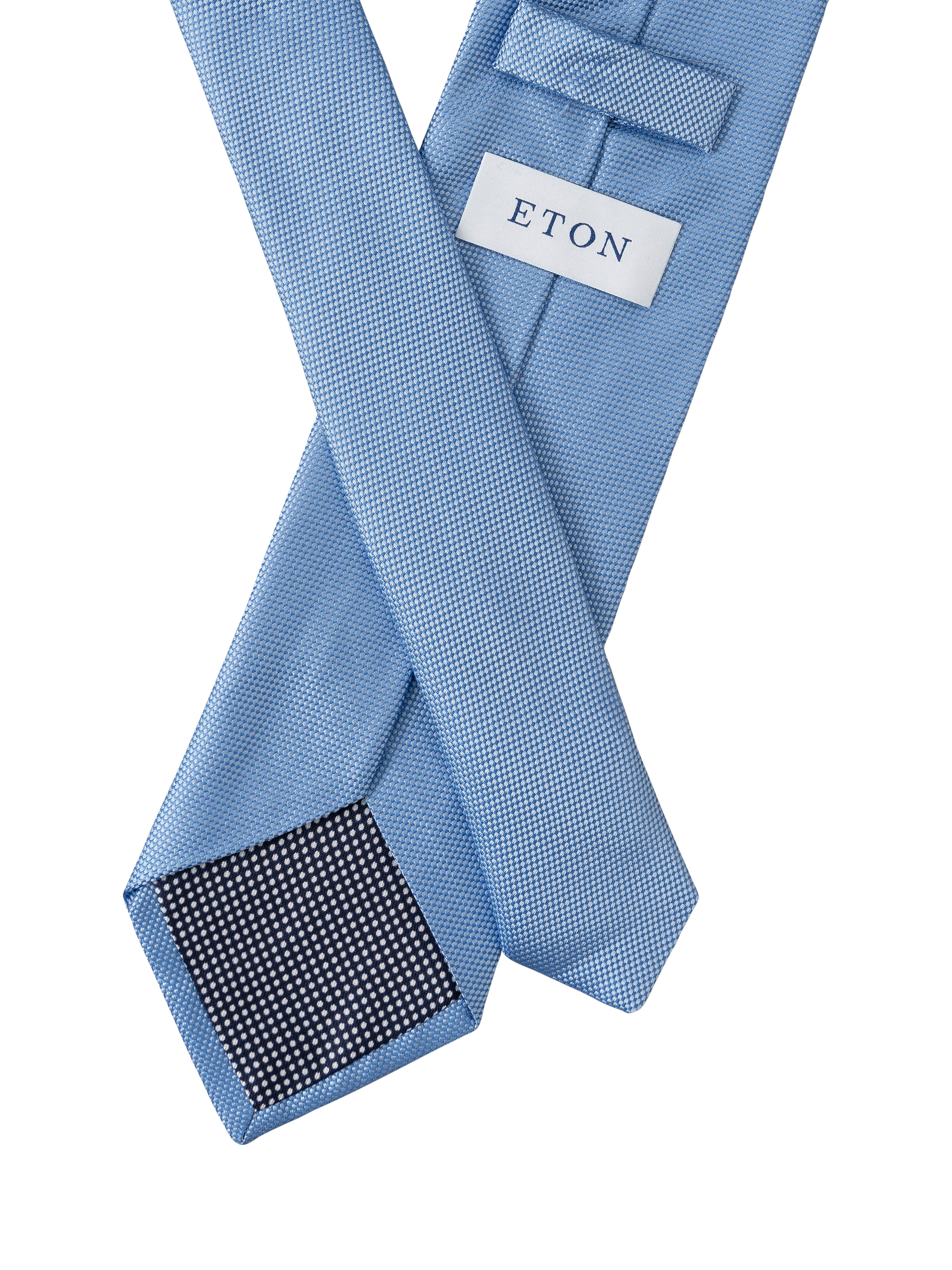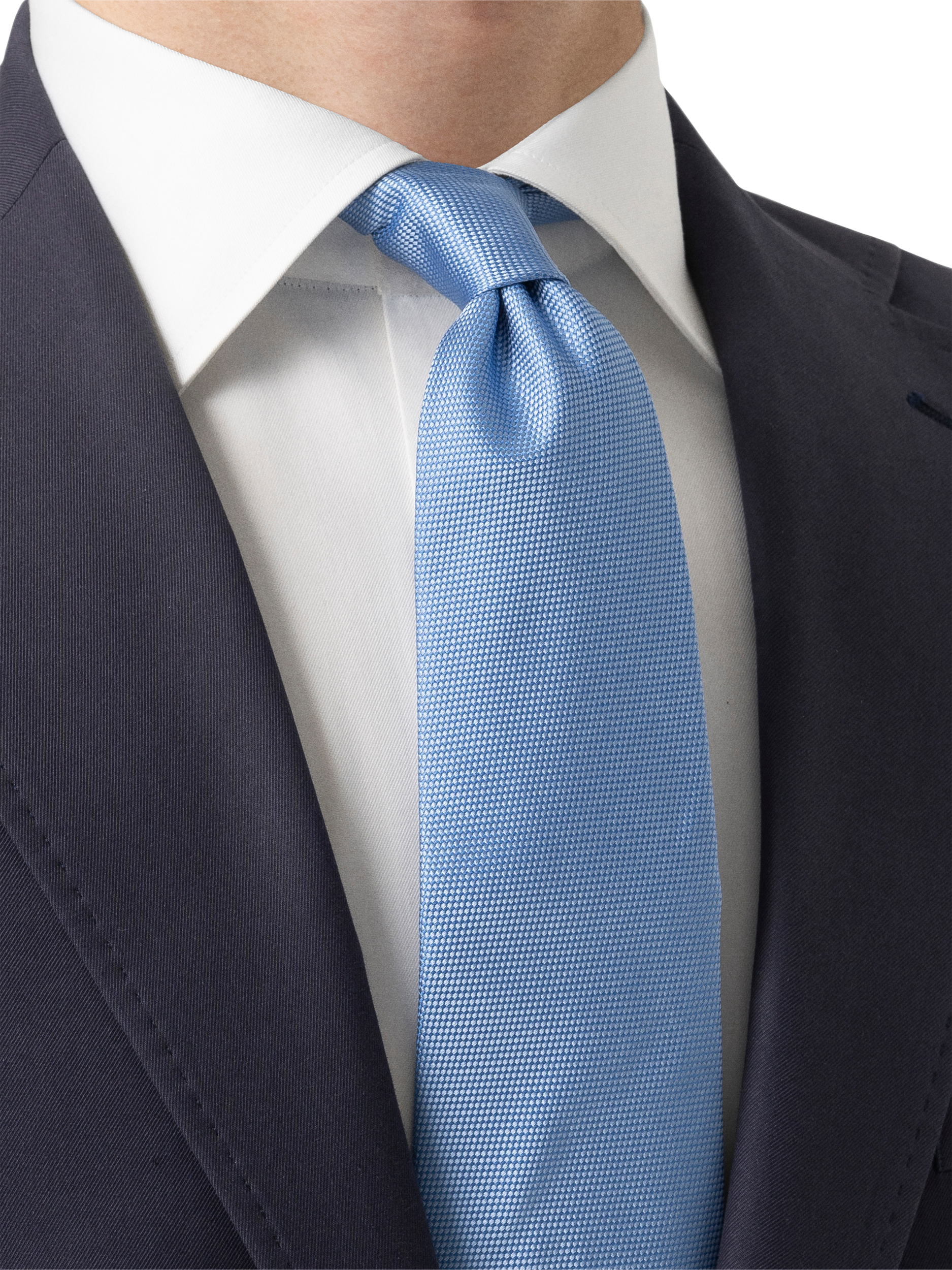 An elegant take on a classic silk tie, woven in a sophisticated basketweave. Its characteristic texture and elegant draping add to the classic look. Make your tie knot in any shape you prefer and try matching it with a patterned shirt, a tone-in-tone pocket square, and a trim suit.