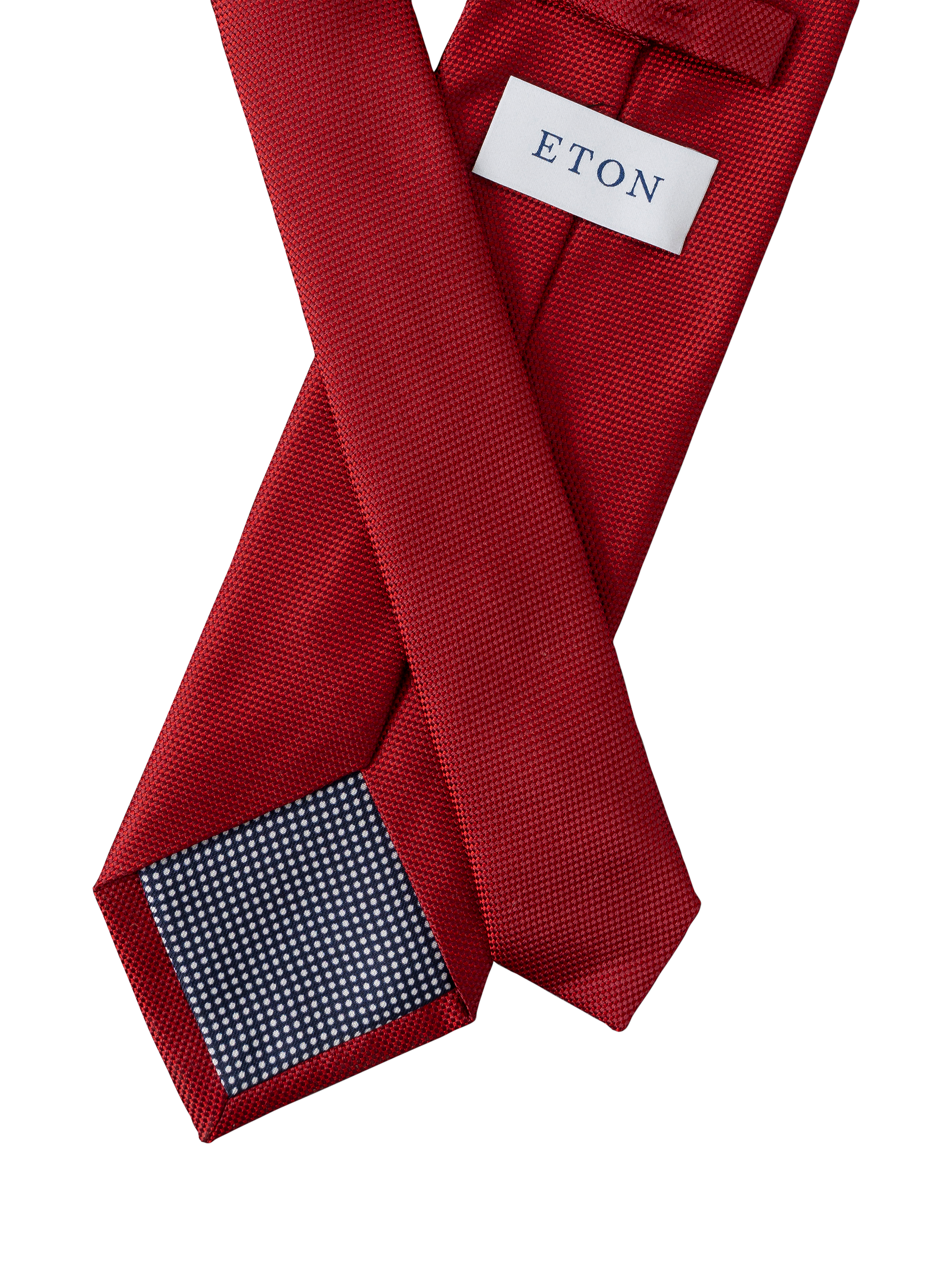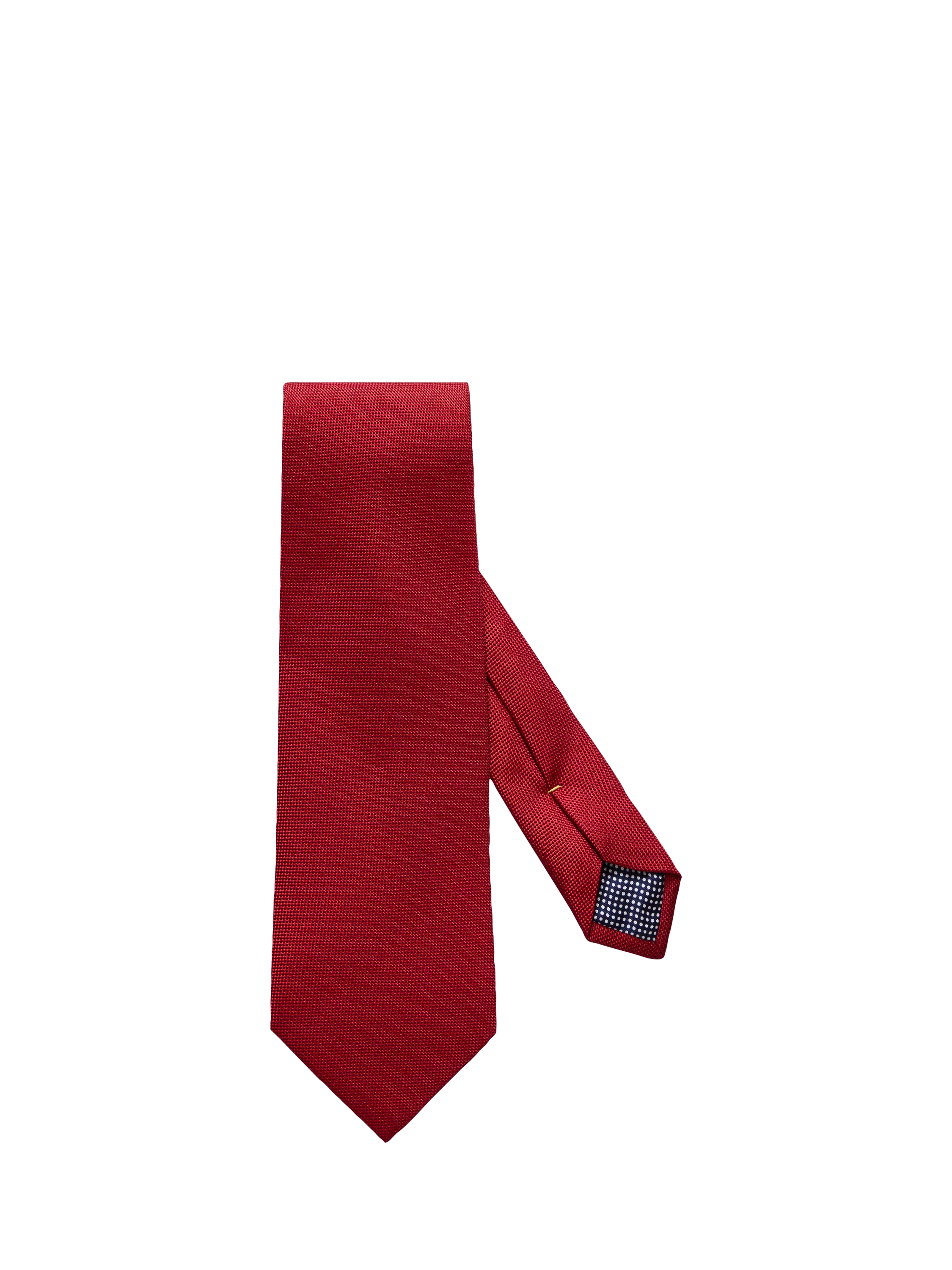 An elegant take on a classic silk tie, woven in a sophisticated basketweave. Its characteristic texture and elegant draping add to the classic look. Make your tie knot in any shape you prefer and try matching it with a patterned shirt, a tone-in-tone pocket square, and a trim suit.