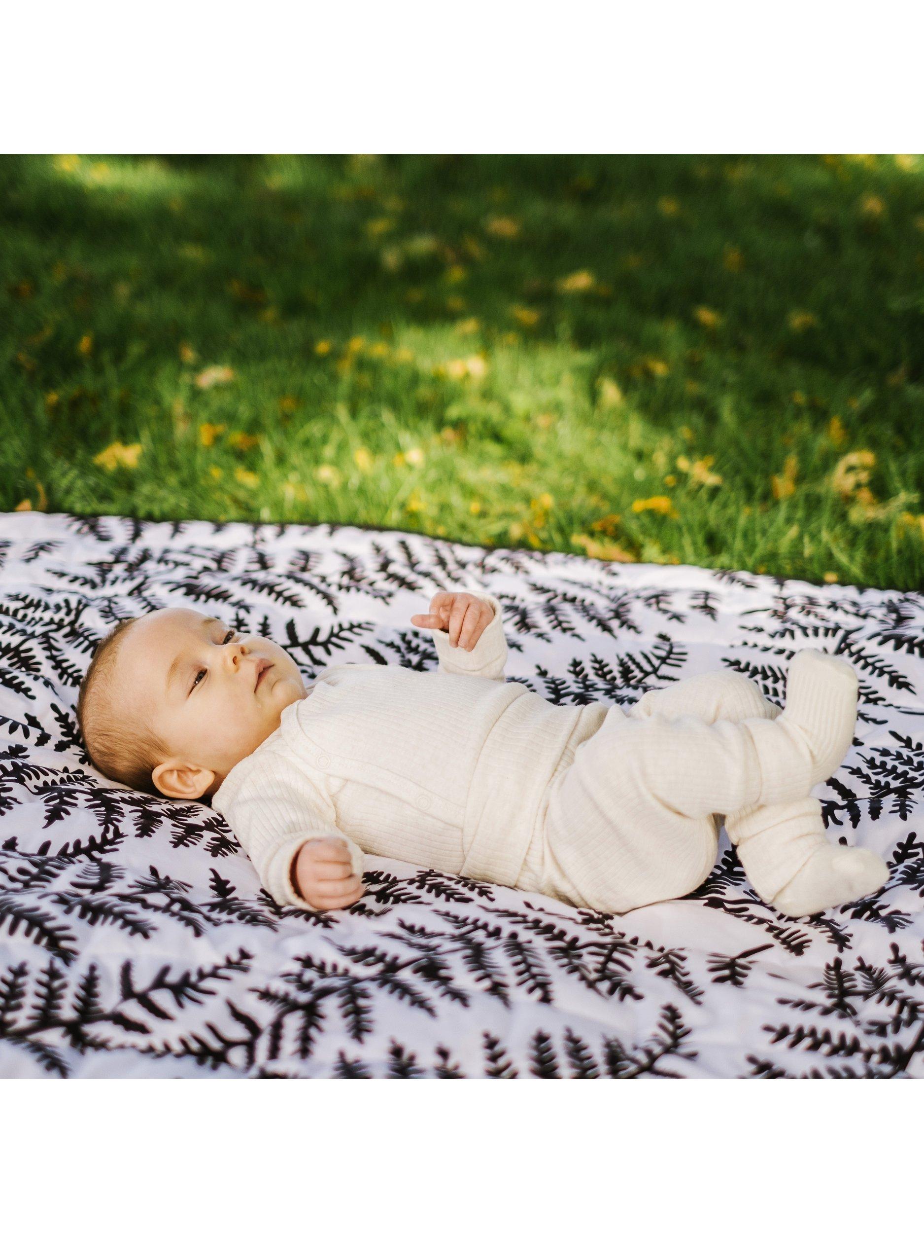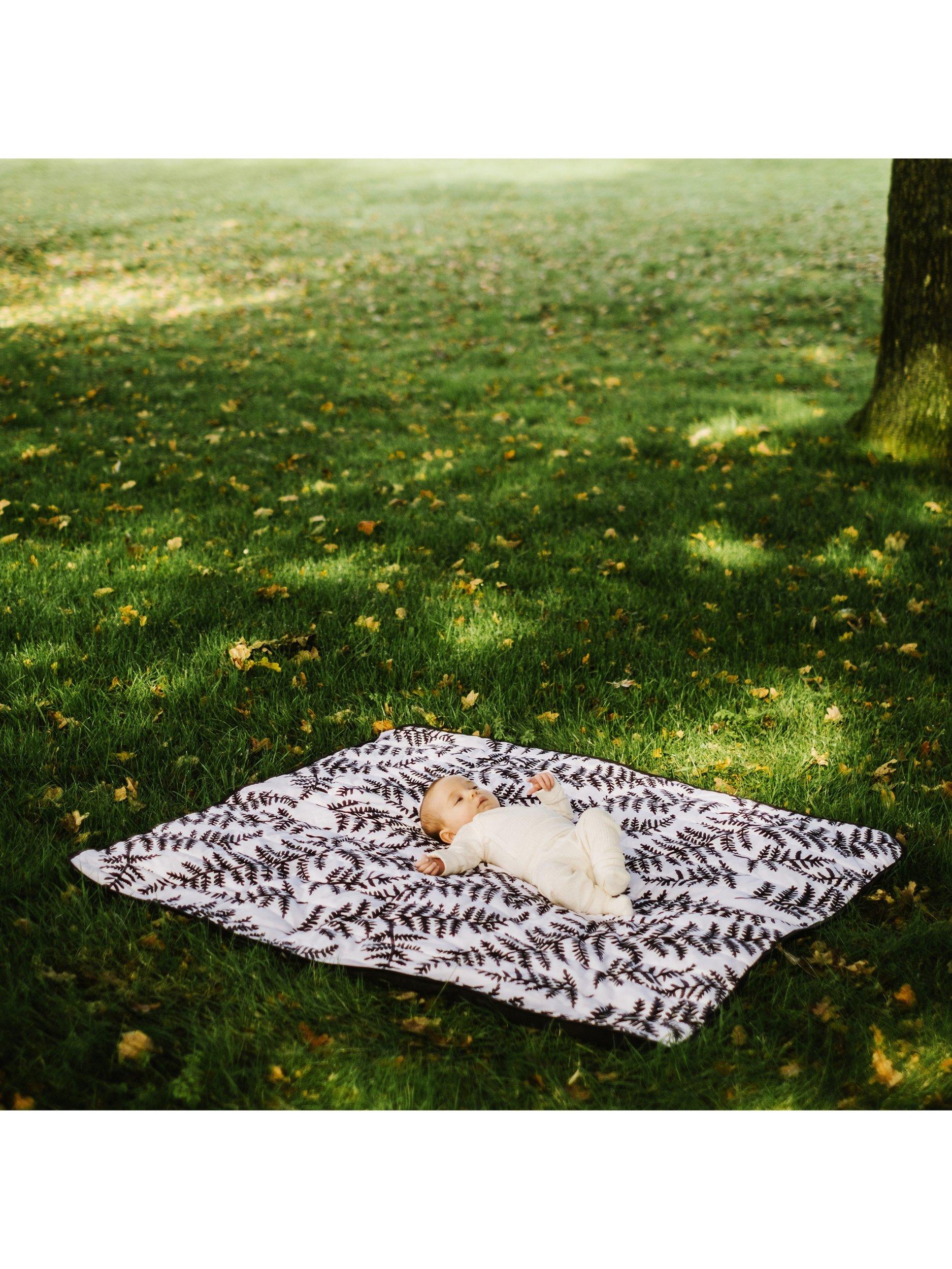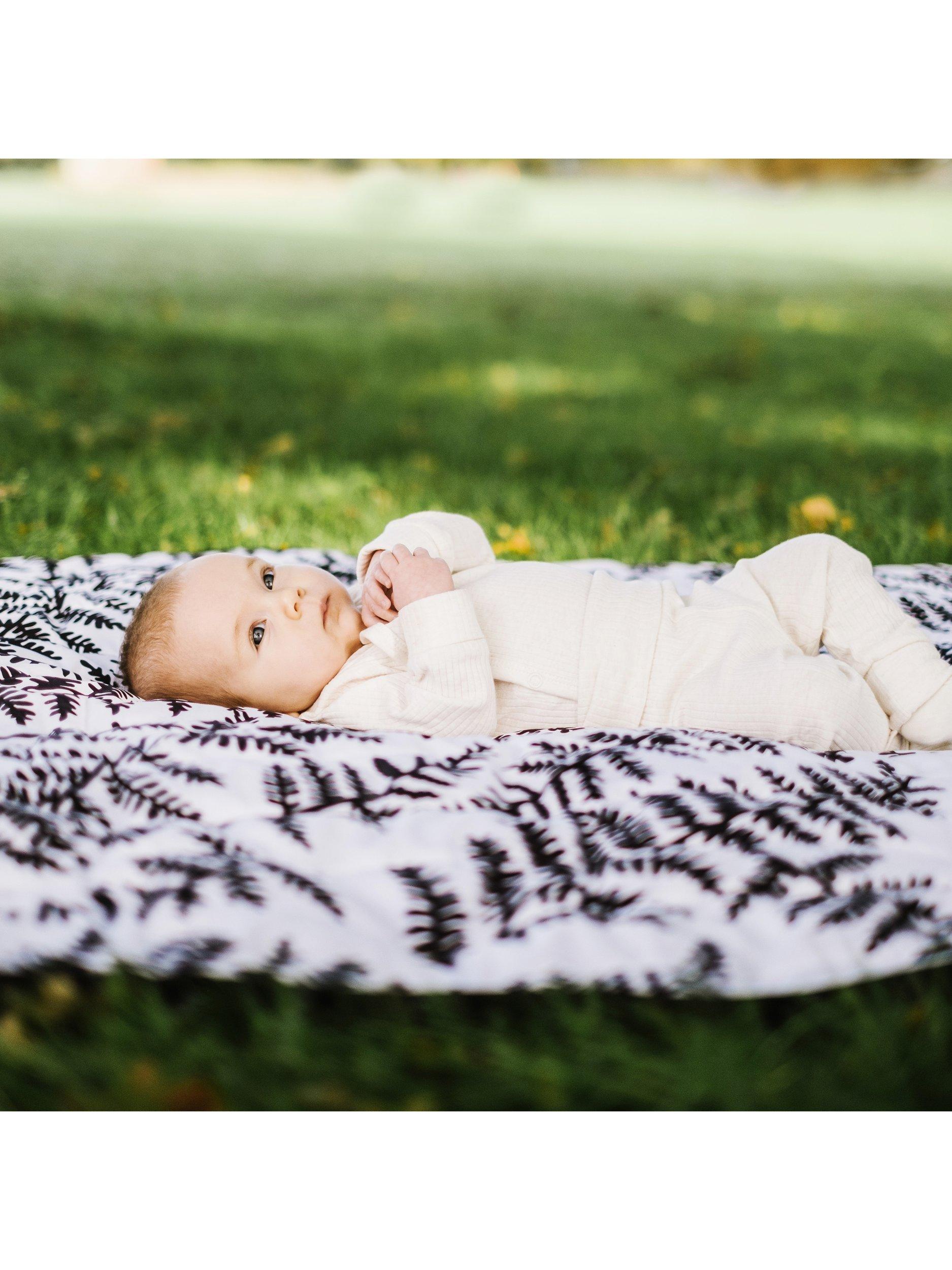 Padded for baby's (and your) comfort, with a waterproof base and featuring Etta's sensory fern print to captivate and support infant visual development from birth. It comes with a handy canvas bag for storage and taking out and about.
