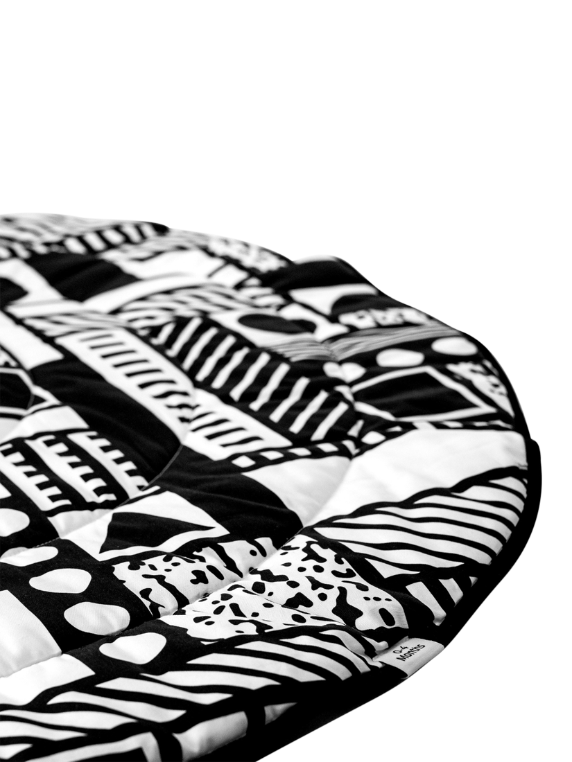 The scientifically scaled patterns encourage babies to use their back, neck and shoulder muscles (helping them prepare for rolling and crawling) as they'll want to push up to make more sense of the print in front of them.